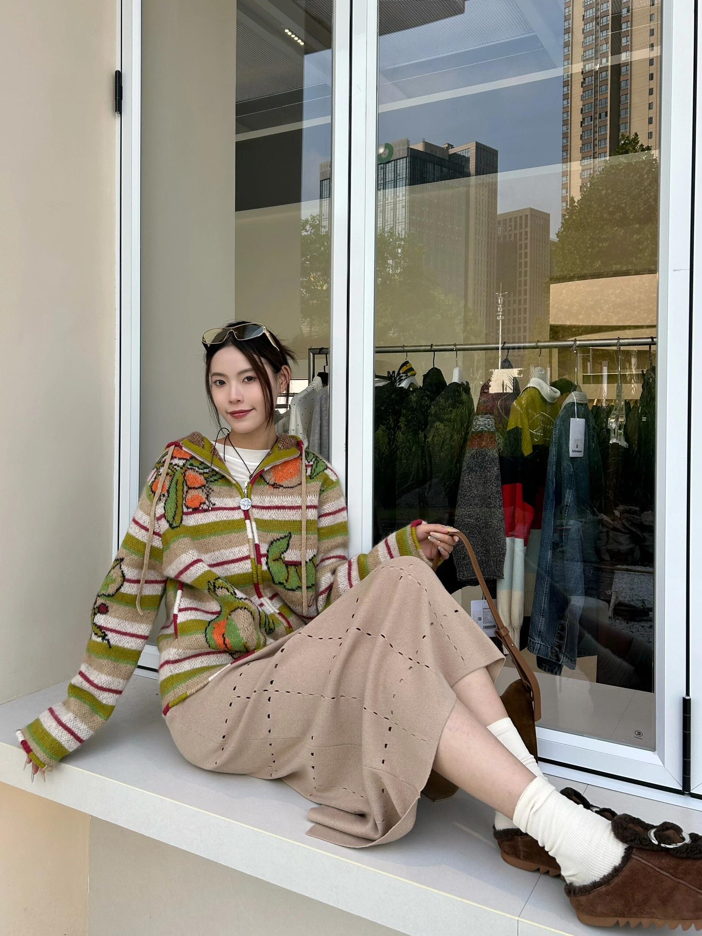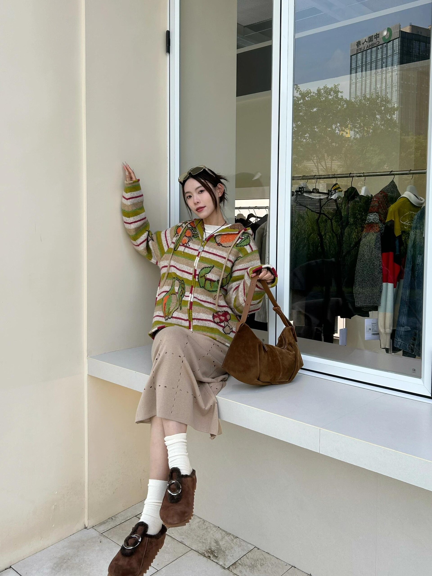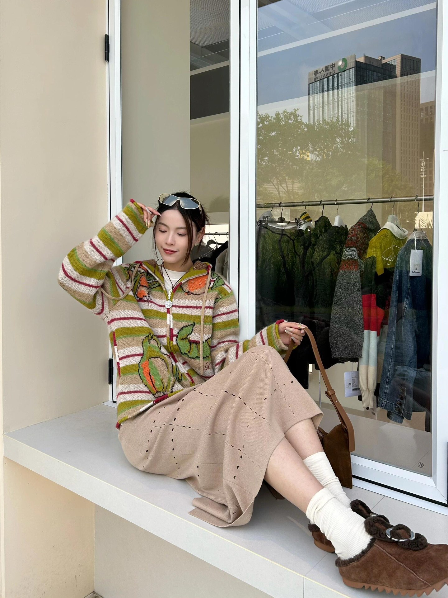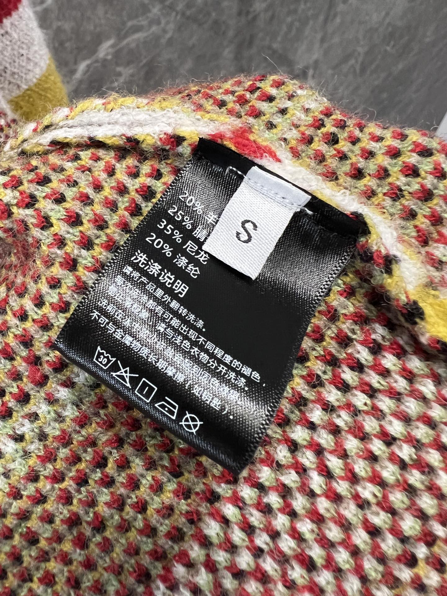精选羊毛混纺纱线,质地柔软触感舒适,芝麻点提花工艺,内里细节感强,标志性太阳徽章拉链,刺绣logo,细节感满满,所有衣服边缘纯手工包针,细节精细