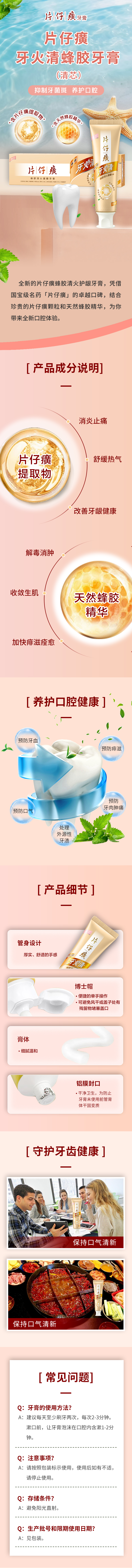 【保税仓】正品 片仔癀牙火清蜂胶牙膏清芯110G