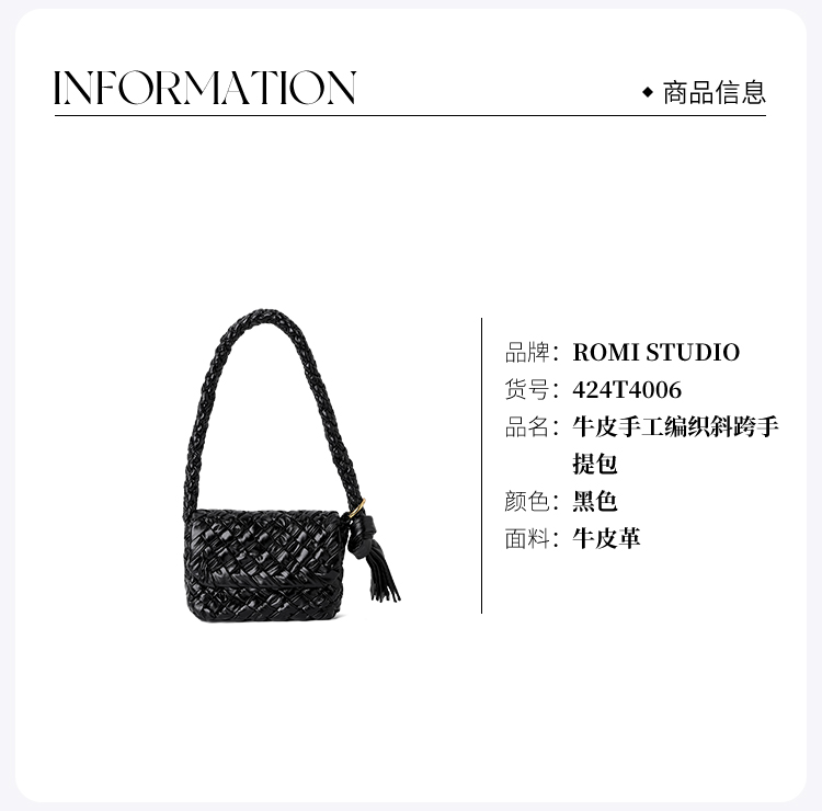 ROMI STUDIO“法式优雅”牛皮手工编织单肩斜跨手提包424T4006