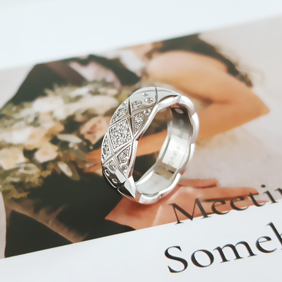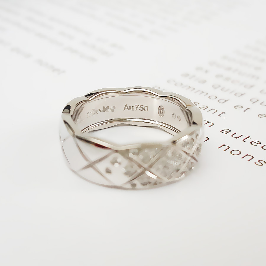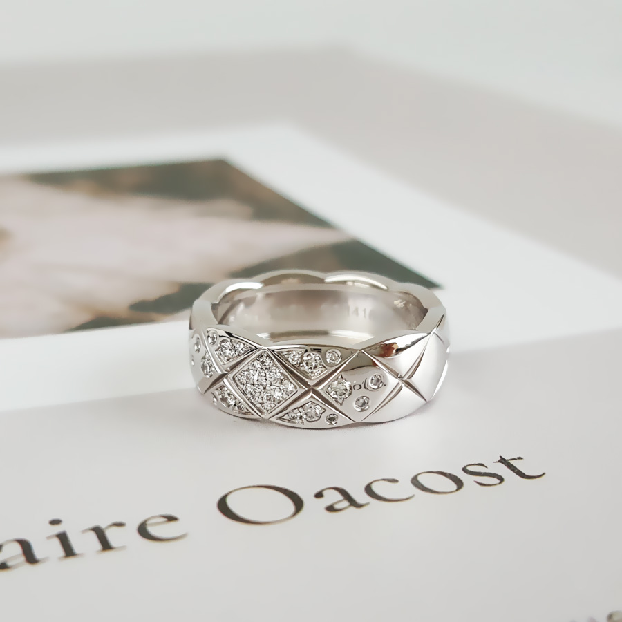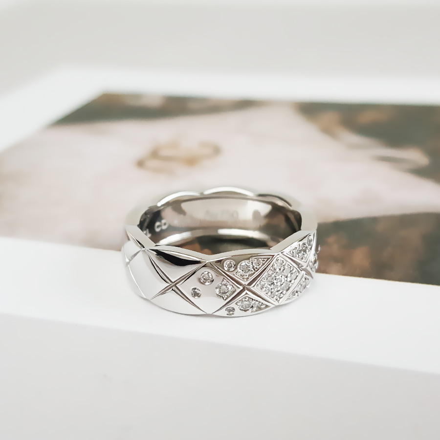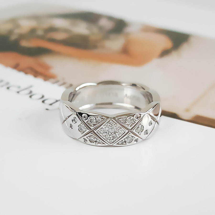 款式 | 18K白金宽版镶钻菱格COCO CRUSH戒指 |