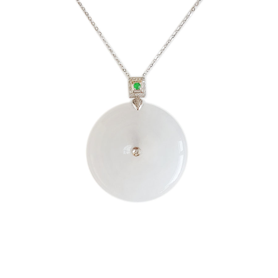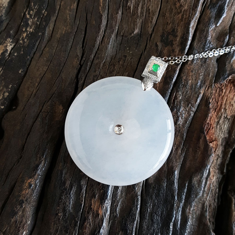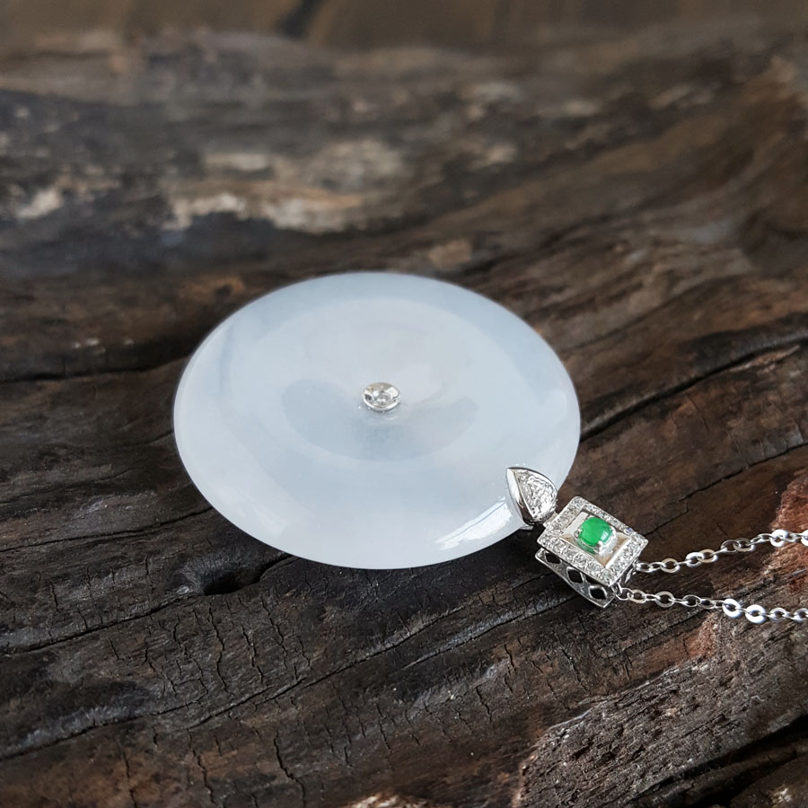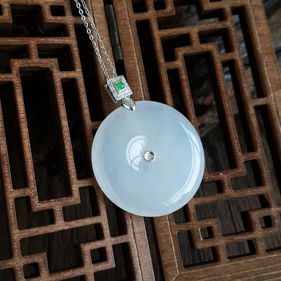 名称 | AU750白金镶钻镶天然细腻无裂纹糯冰种平安扣翡翠吊坠项链 |
