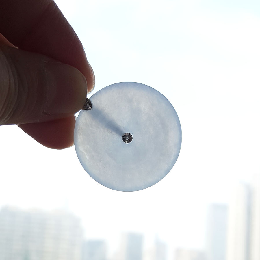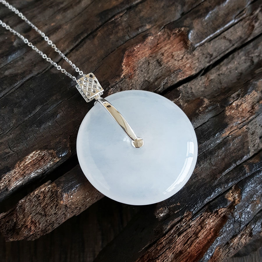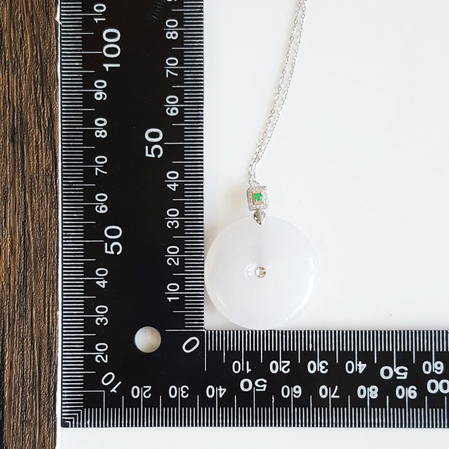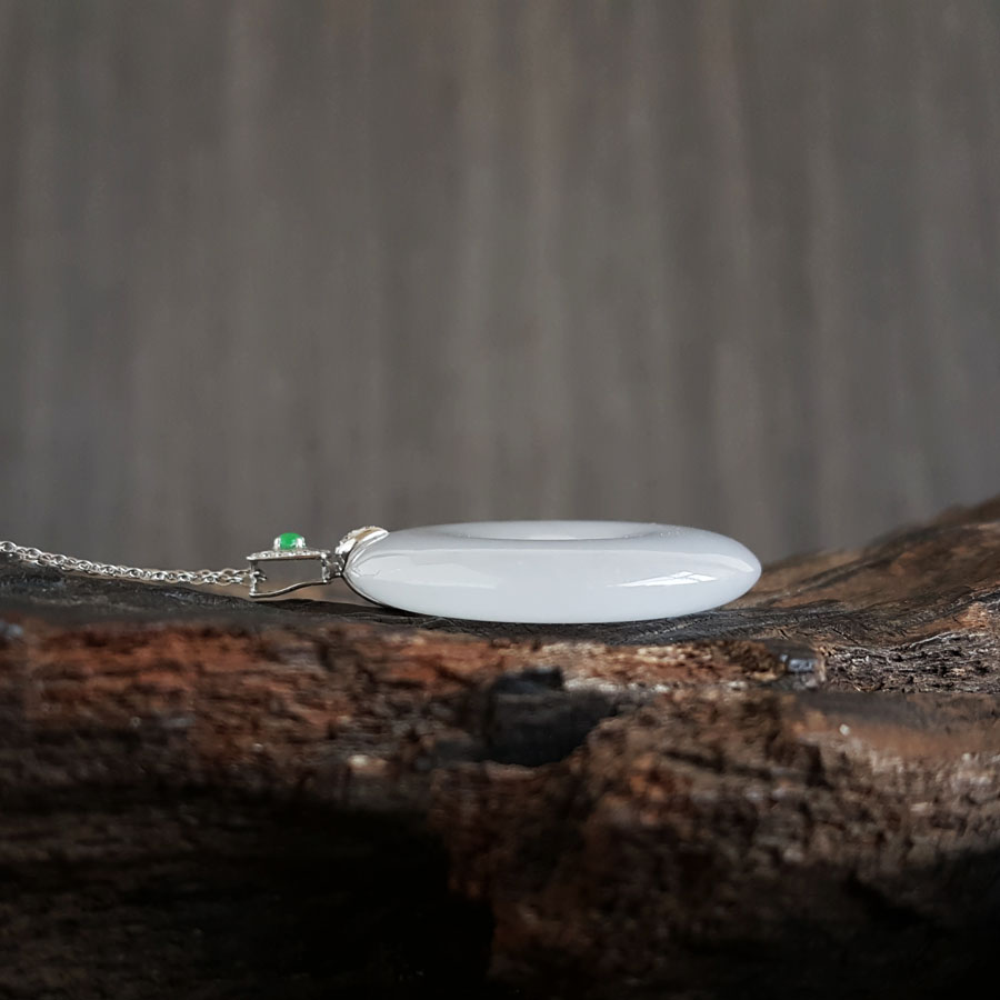 名称 | AU750白金镶钻镶天然细腻无裂纹糯冰种平安扣翡翠吊坠项链 |