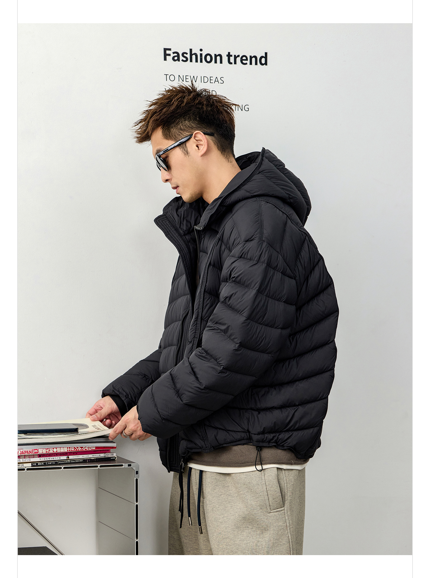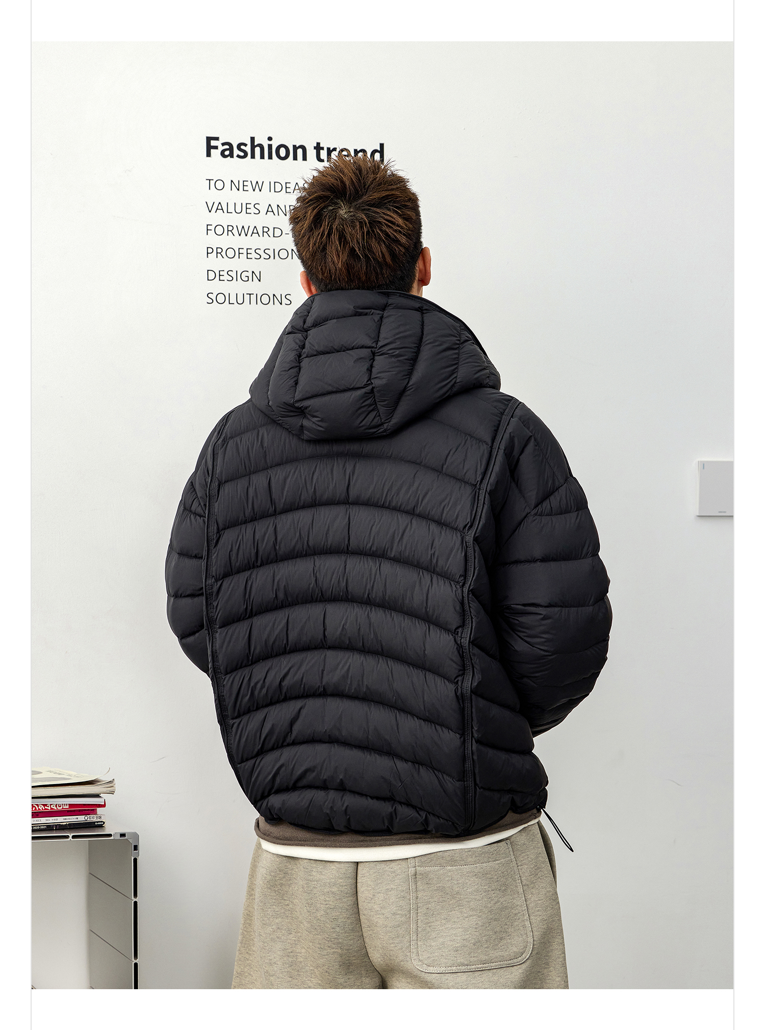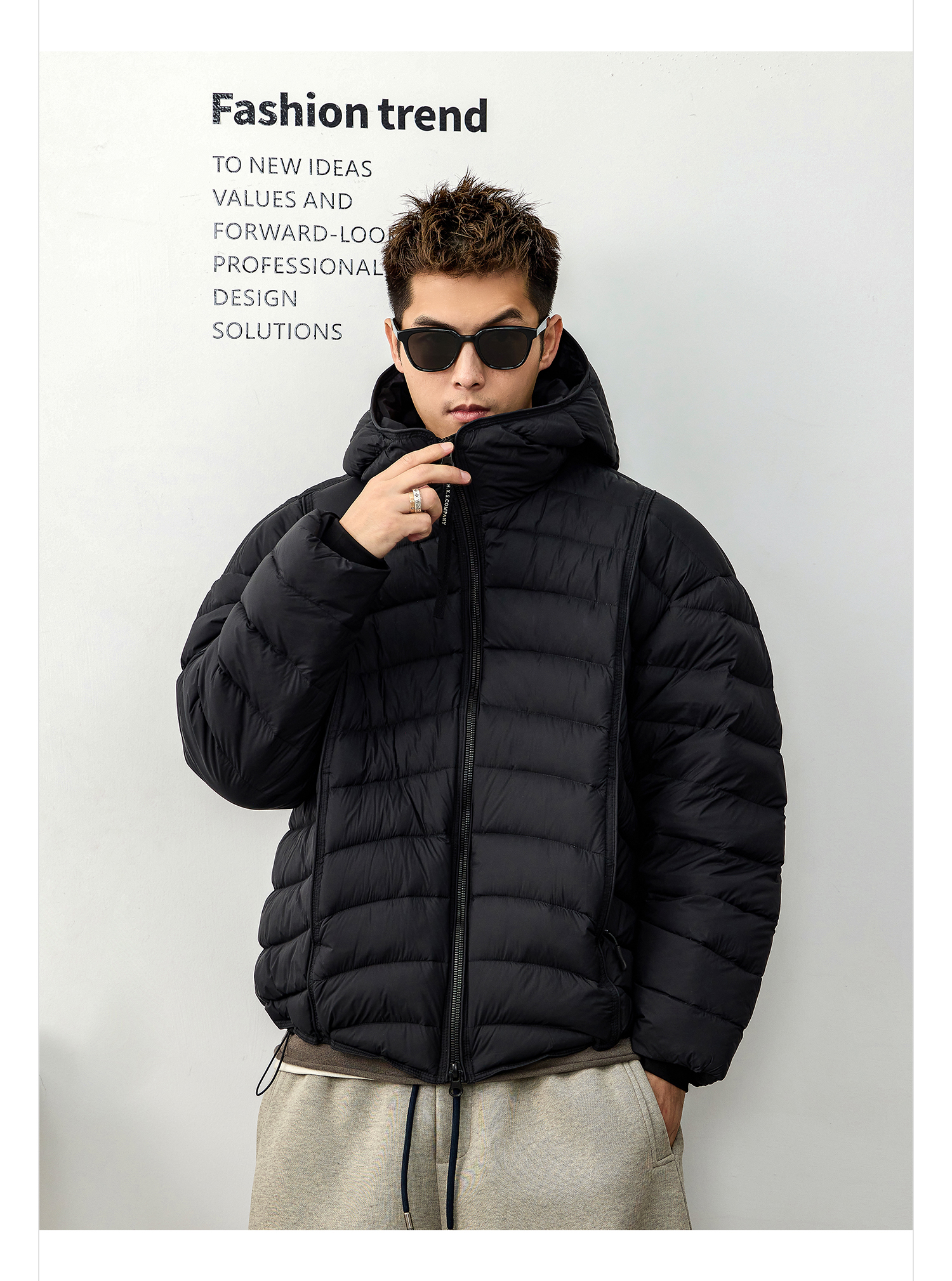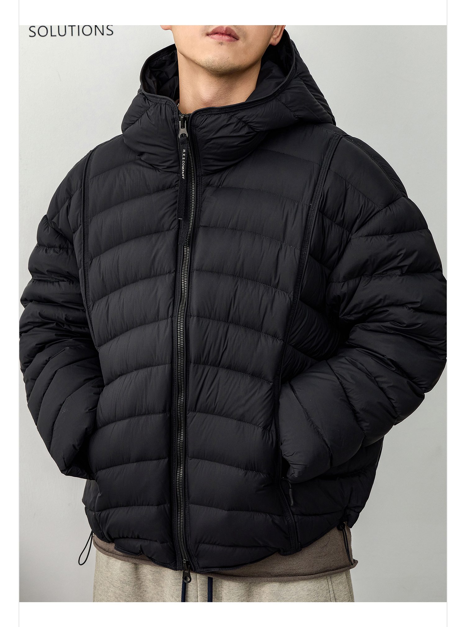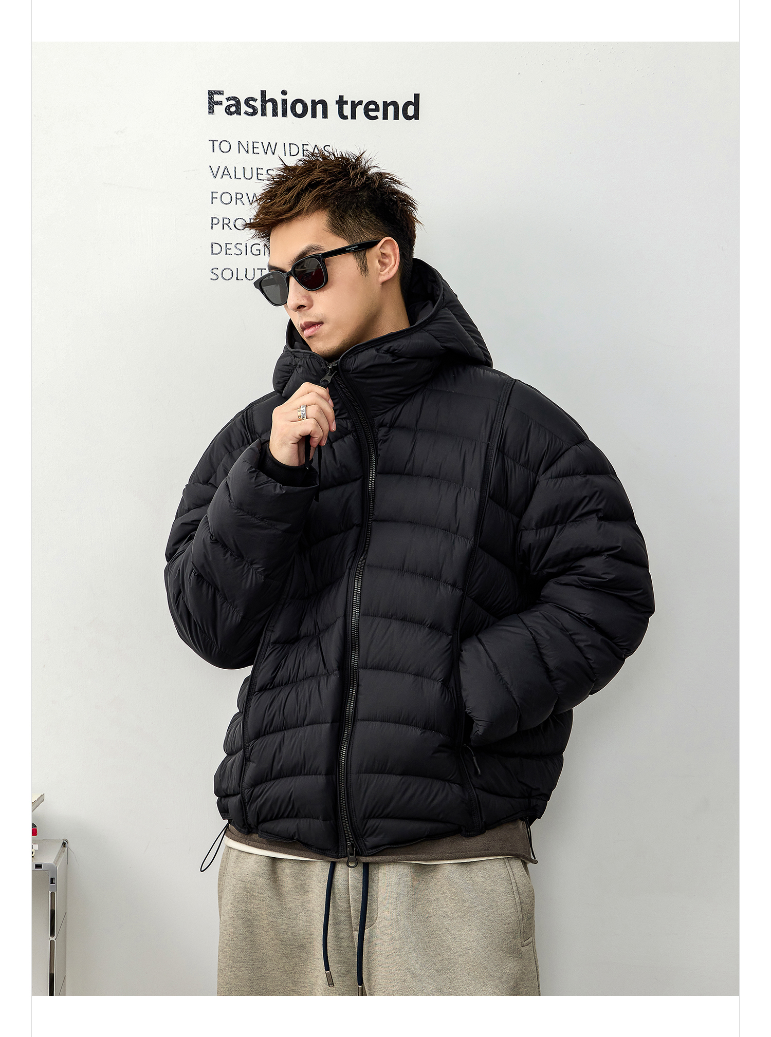 徐太浪【辑行收腰 双拉链】黑色连帽羽绒服男冬季防寒面包服外套