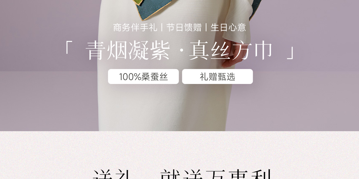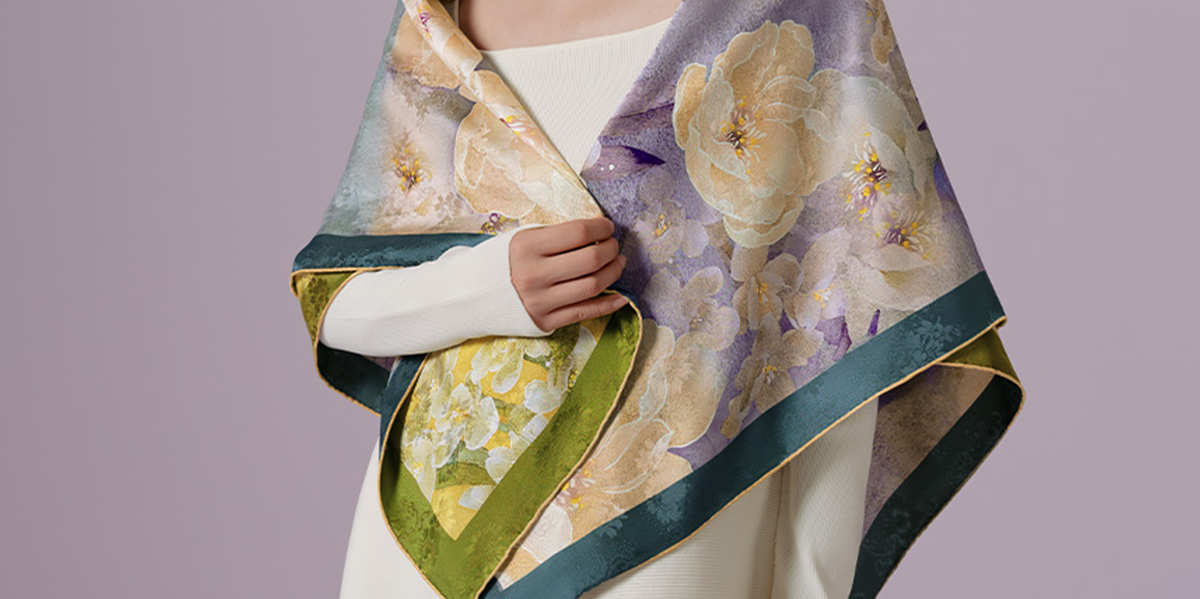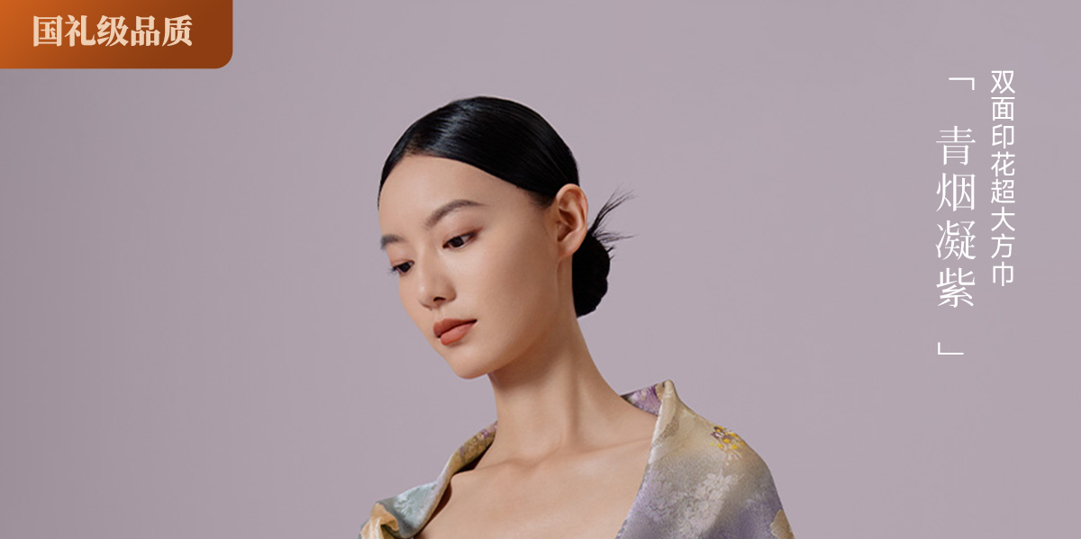 万事利“青烟凝紫”105厘米双面印花大方巾