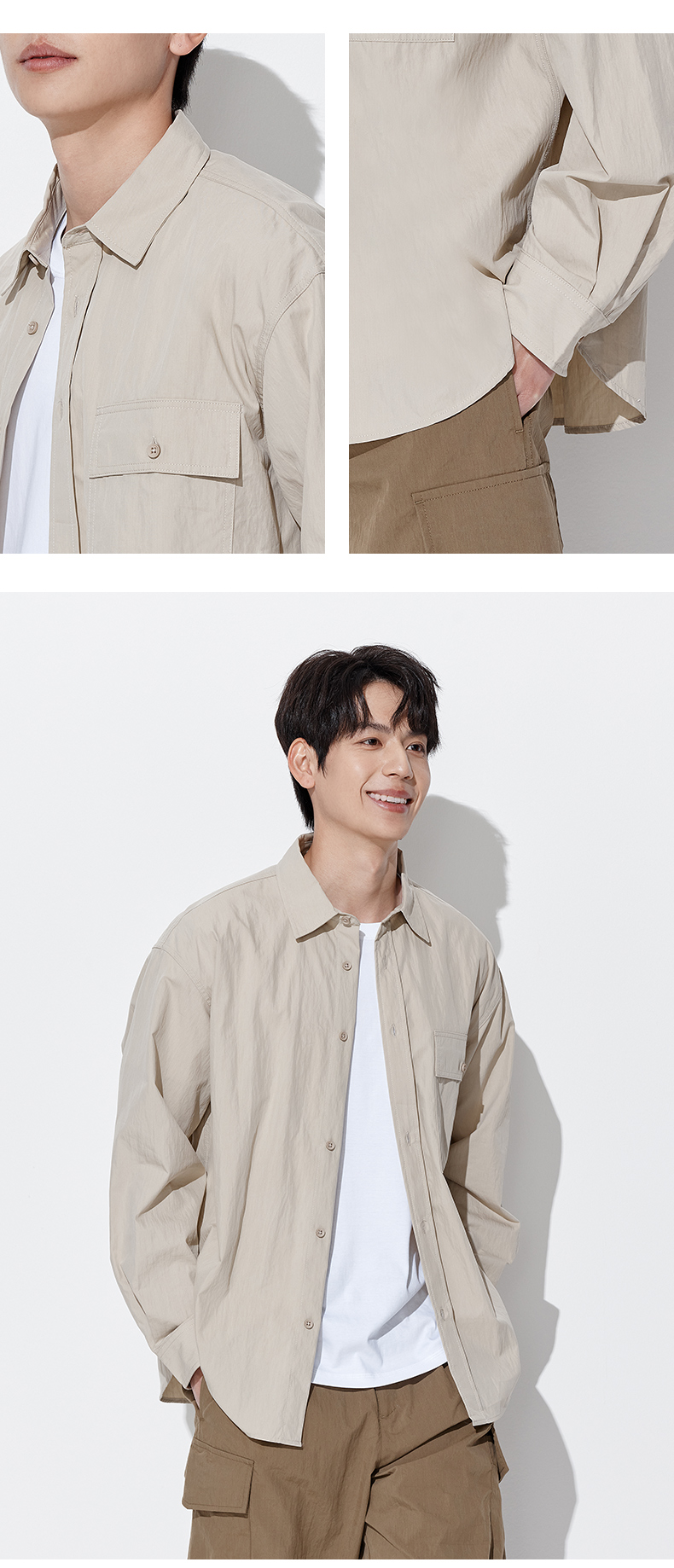 马恩MAXNEW男装2025秋季新款长袖衬衫男士宽松纯色长袖翻领外套男
