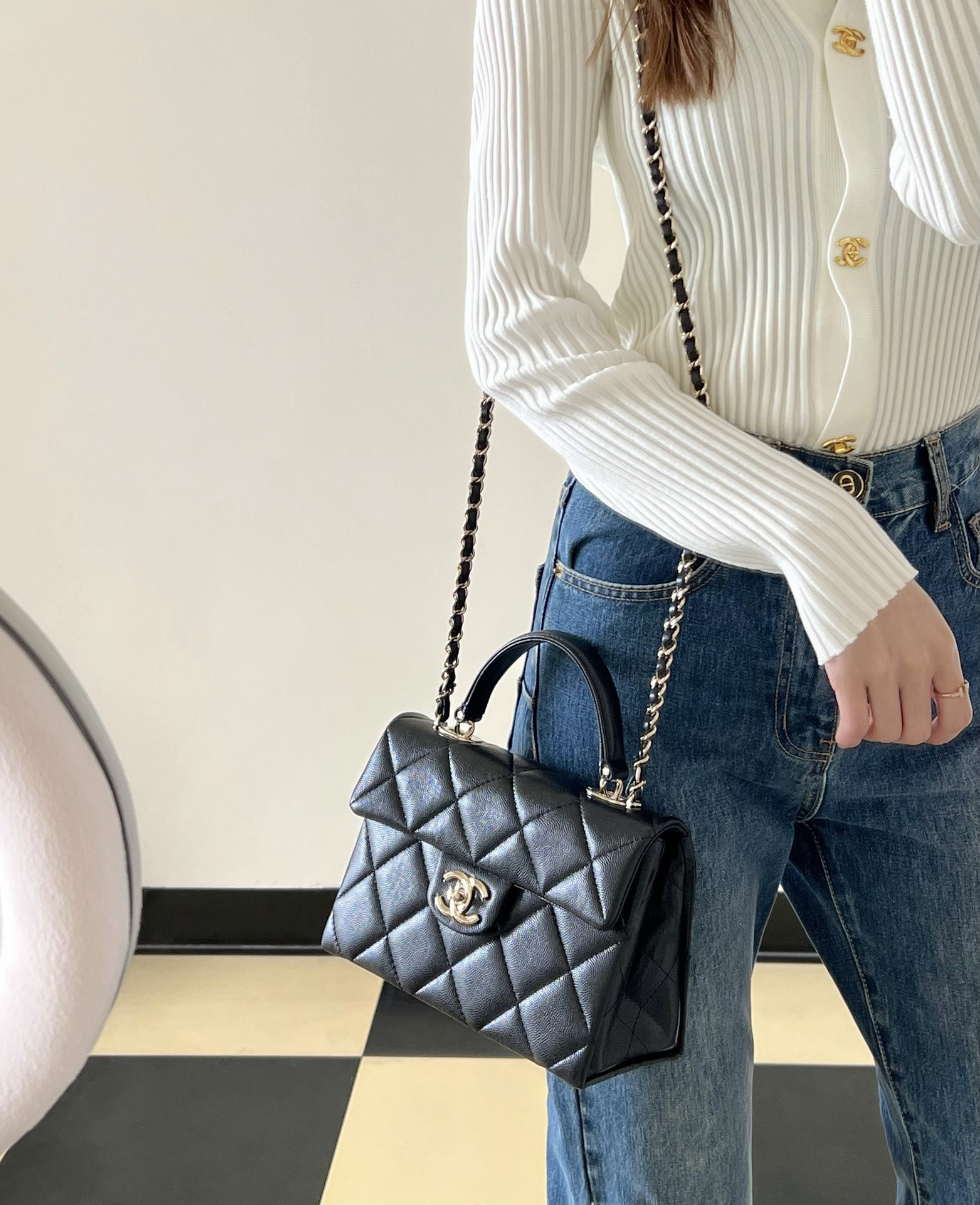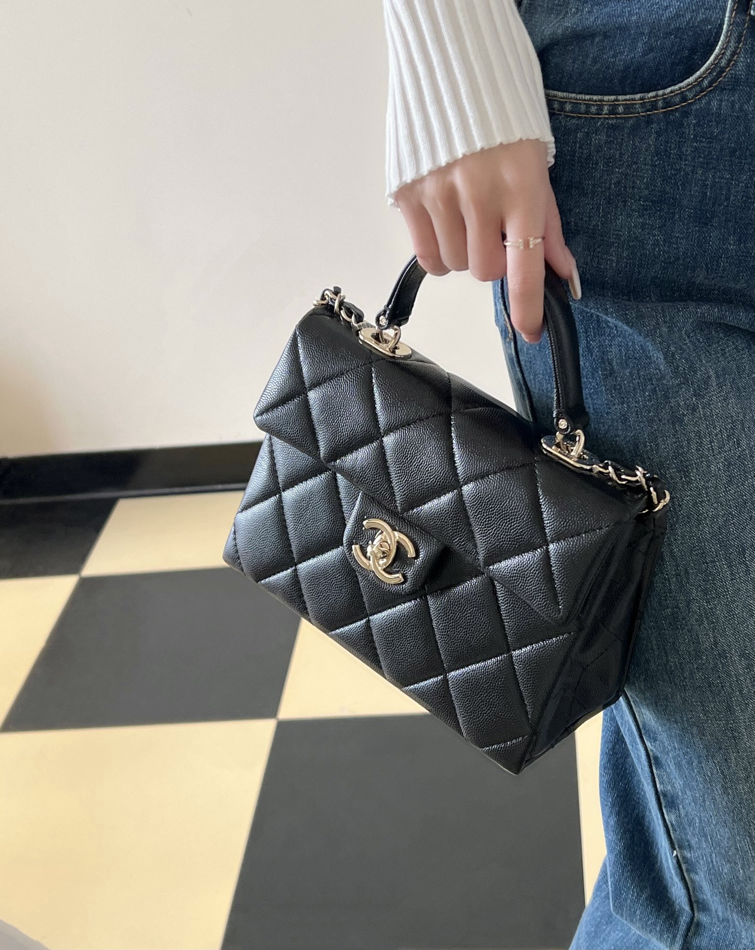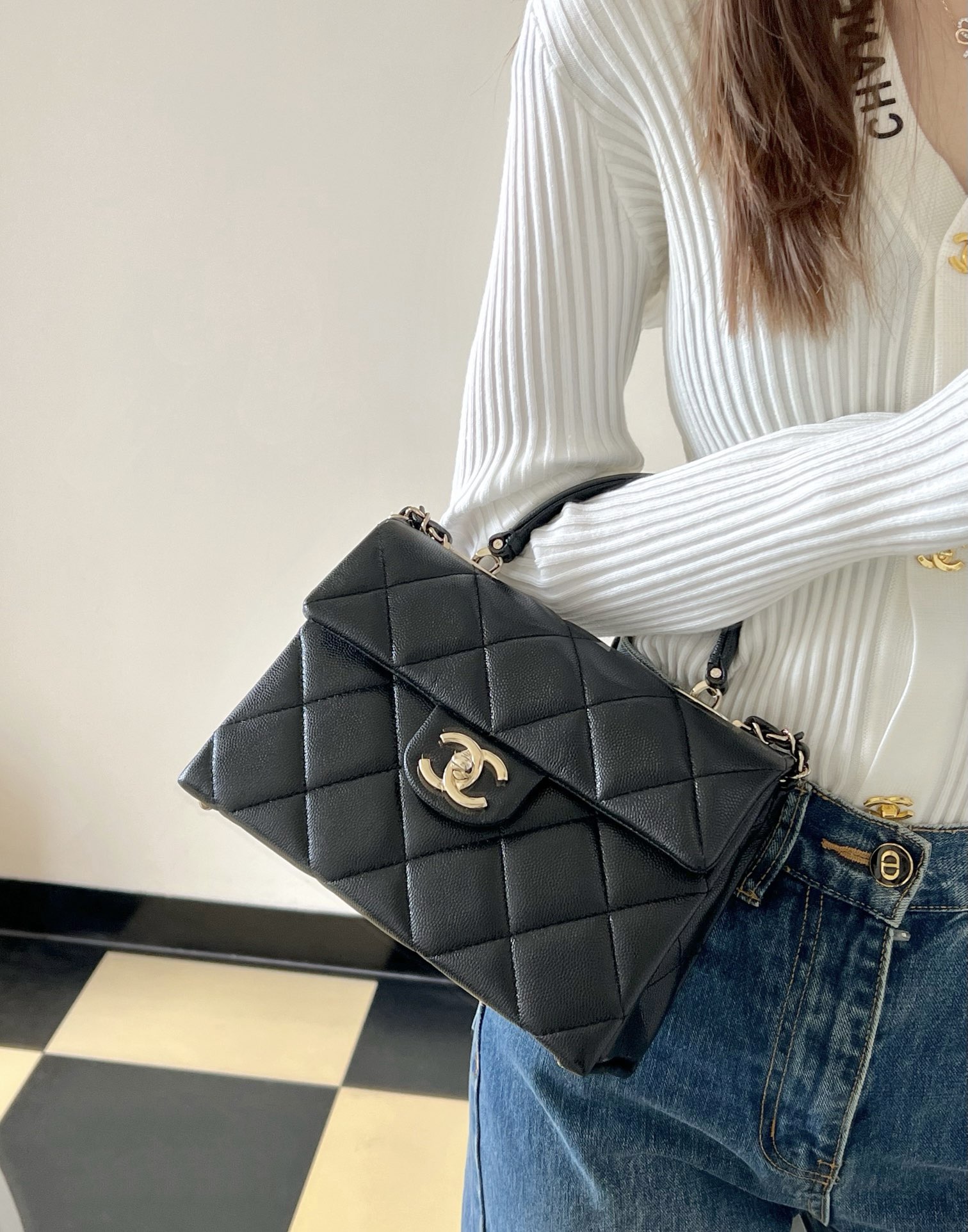 全新到货🆕𝐂𝐡𝐚𝐧𝐞𝟏 𝟮𝟰𝗣春夏 小球纹𝗞𝗲𝗹𝗹𝘆 黑色♥小号 专柜售价𝟦𝟨𝟣𝟢𝟢𝗋𝗆𝖻购入开发〰️ ✨火爆全网的𝗄𝖾𝗅𝗅𝗒款又一力作, 简约力挺有型,手提设计大气优雅。 原厂𝖧𝖺𝖺𝗌小球纹牛皮更加柔软耐造, 容量更是绝了,更让人惊艳 五金:厚镀𝟣𝟦𝖪淡金扣 皮料:原厂𝖧𝖠𝖠𝖲小球纹 尺寸:𝟣𝟨*𝟤𝟣*𝟫.𝟧 𝖼𝗆 款号:AS4711