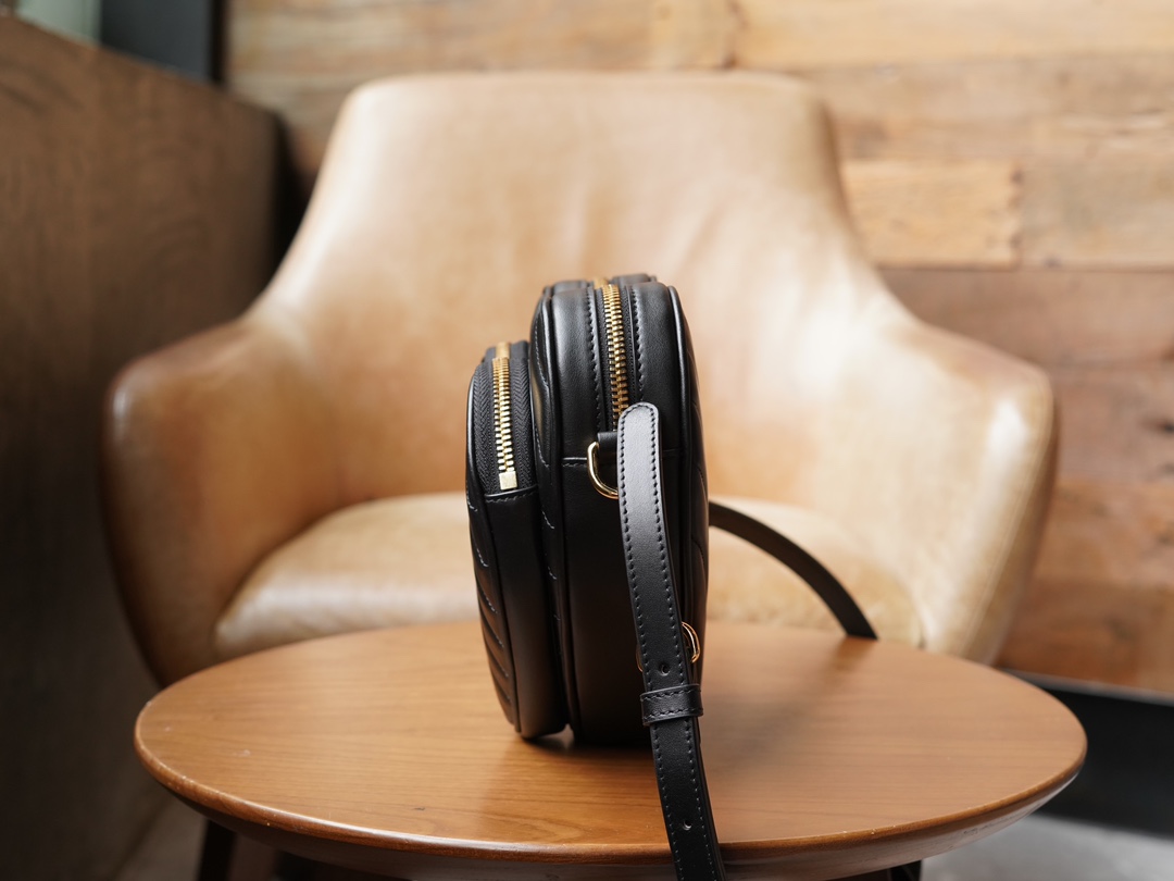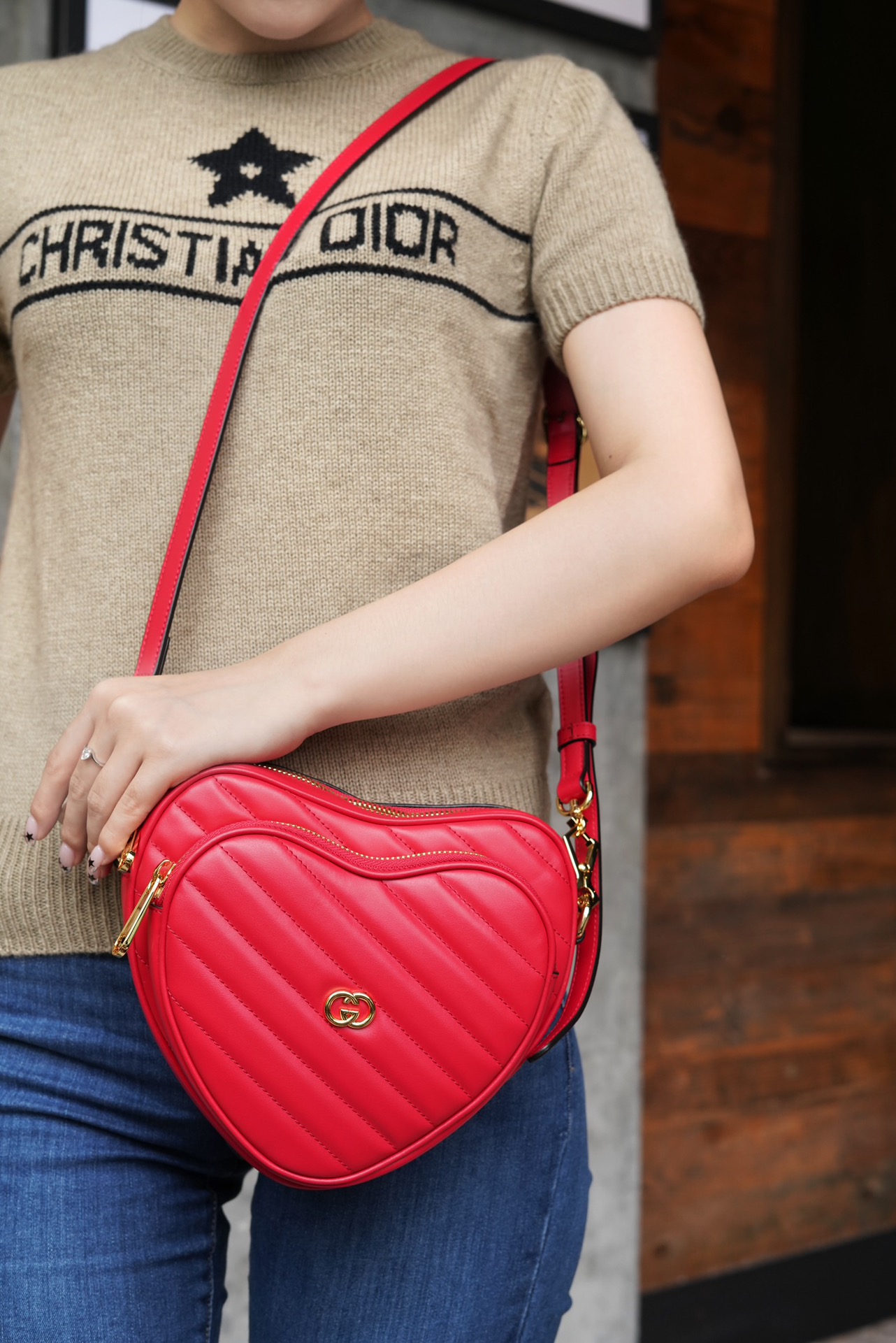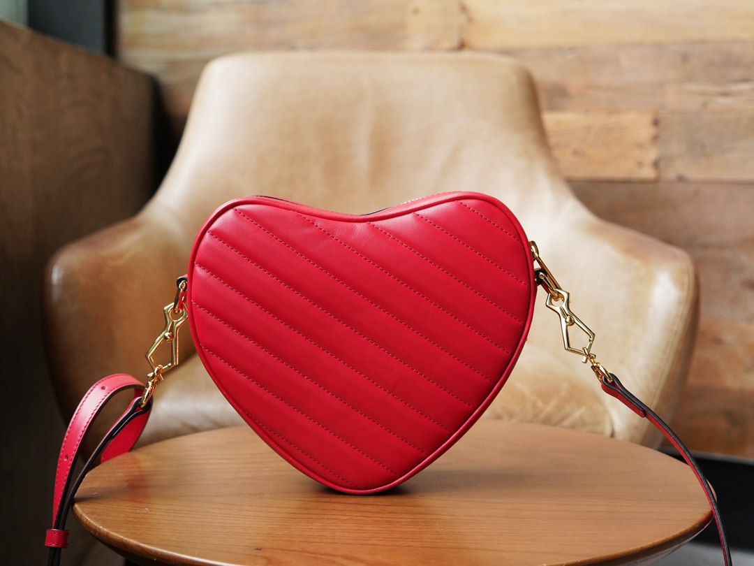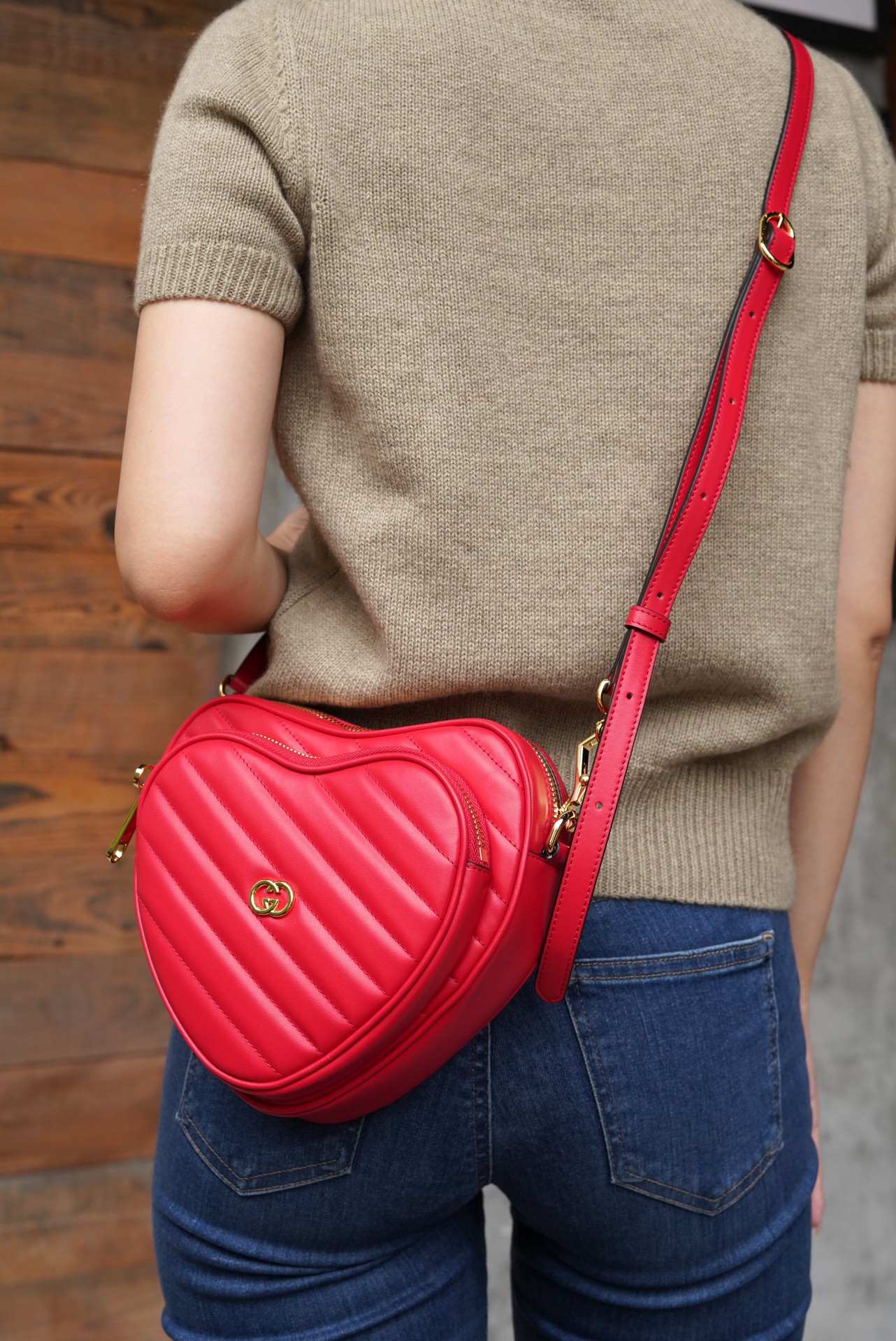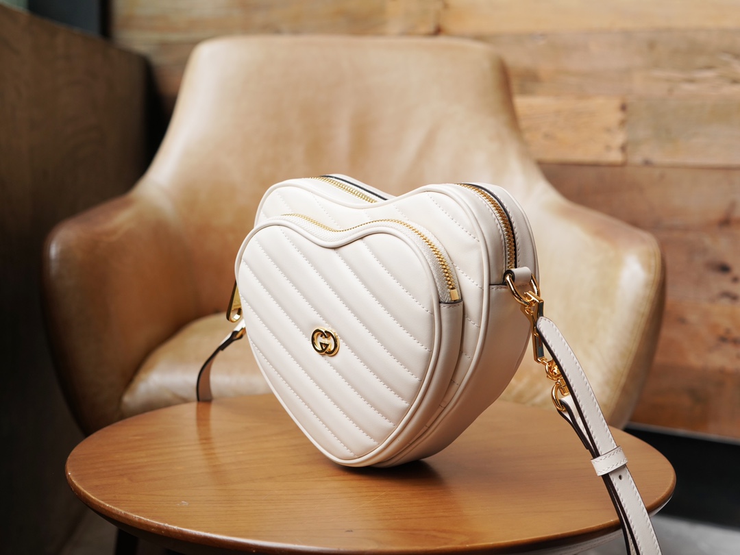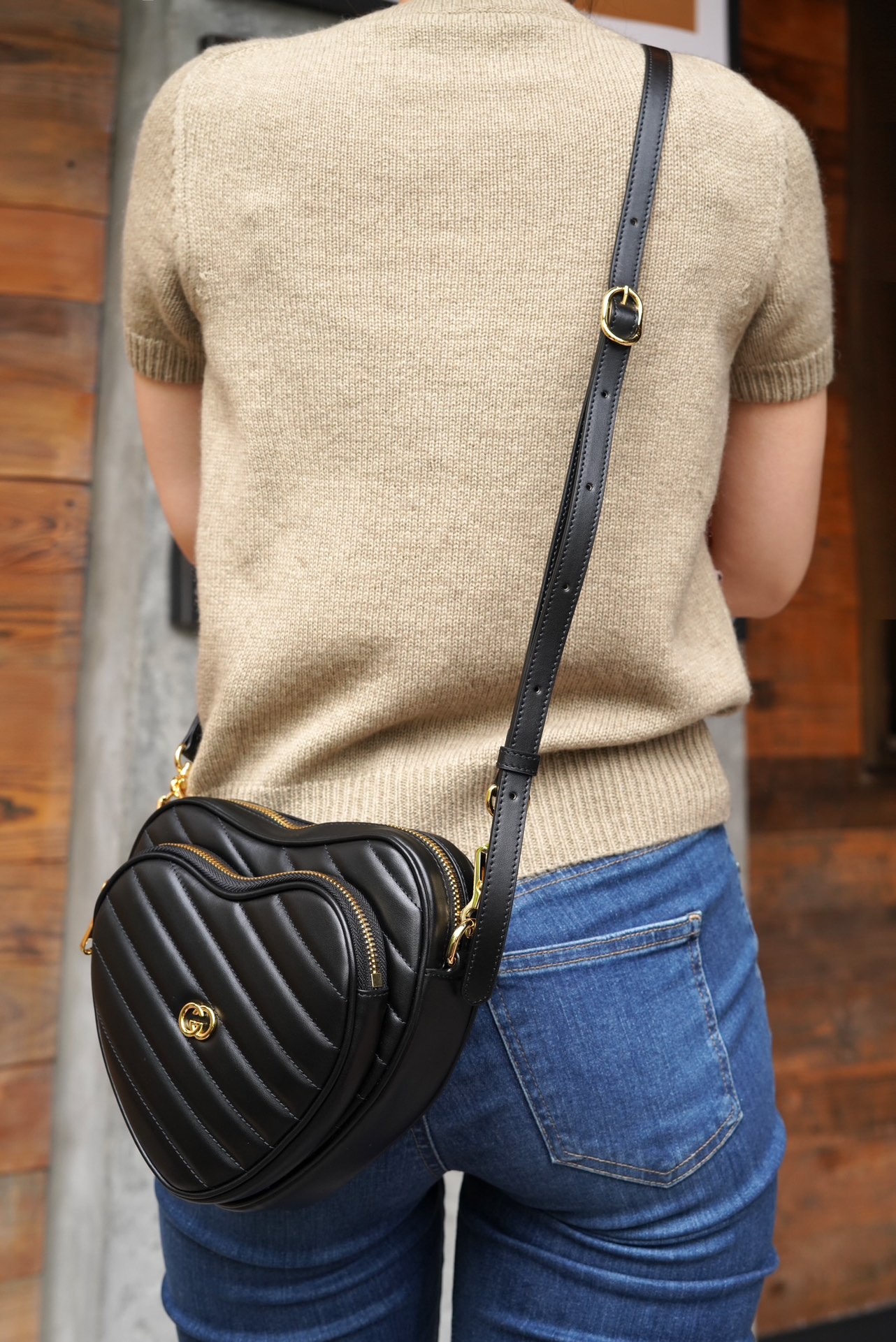 Gucc* 互扣式双G迷你心形肩背包 黑色