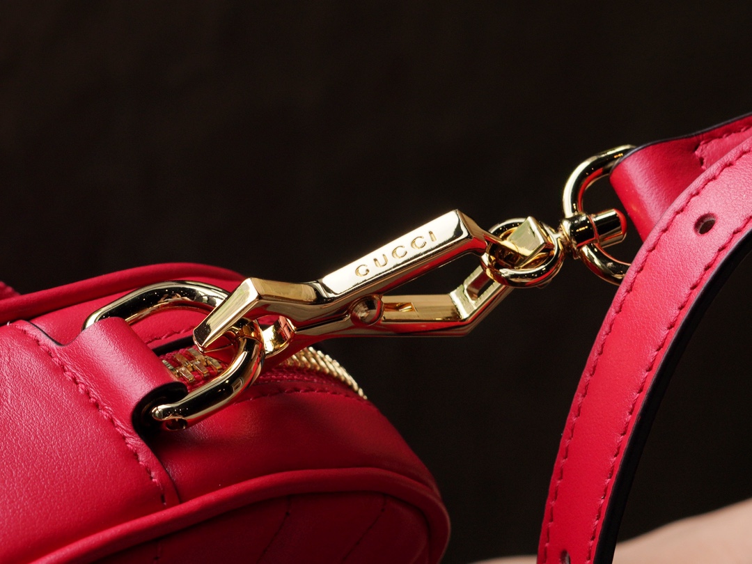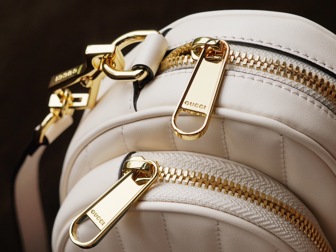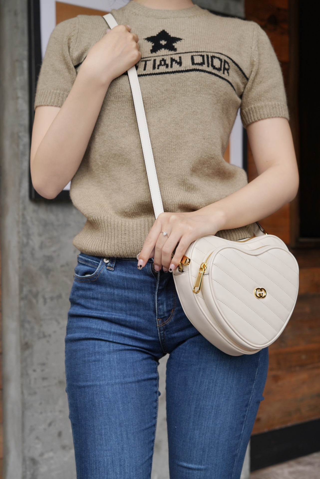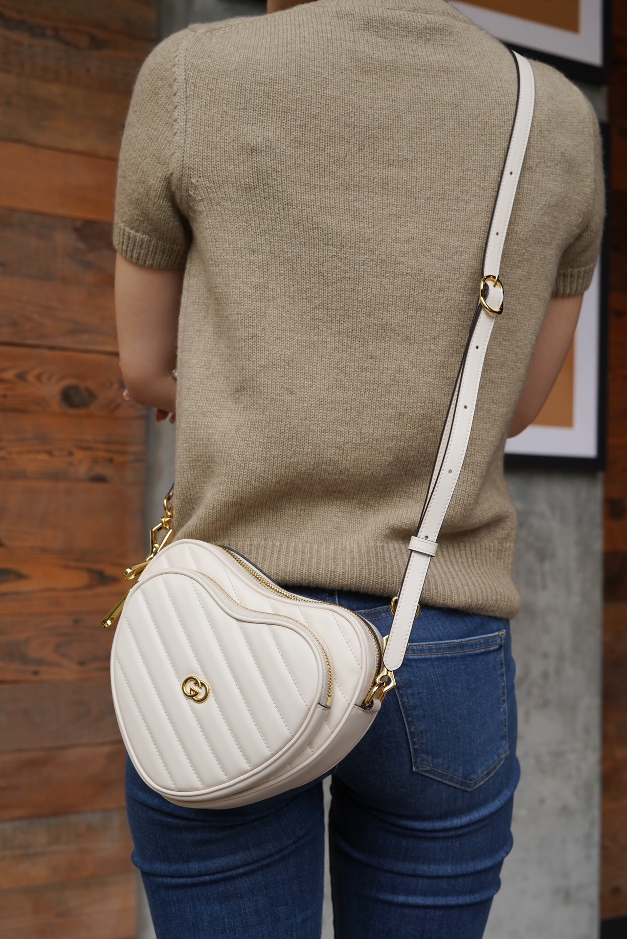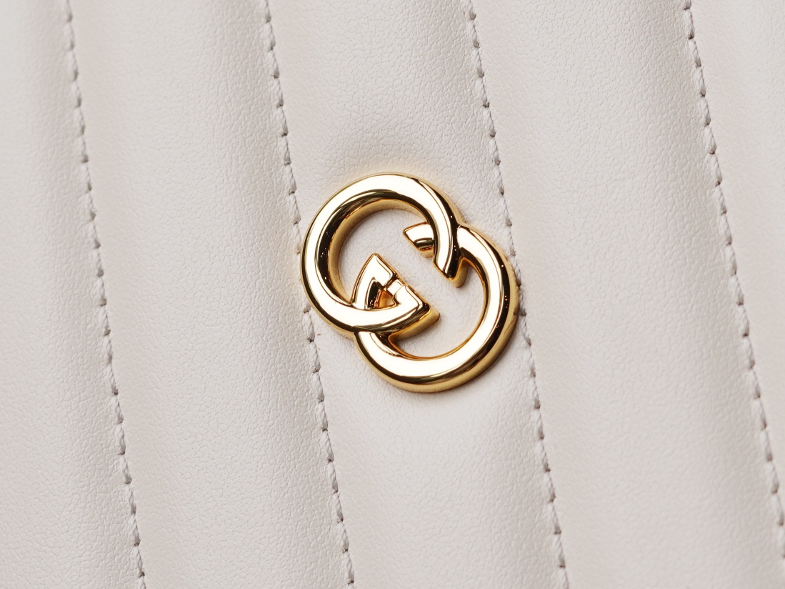 互扣式双G图案从传统精髓与现代廓形中汲取灵感。这款迷你肩背包采用斜纹Matelassé皮革精制而成,同心心形设计为包身注入一抹趣致色彩。