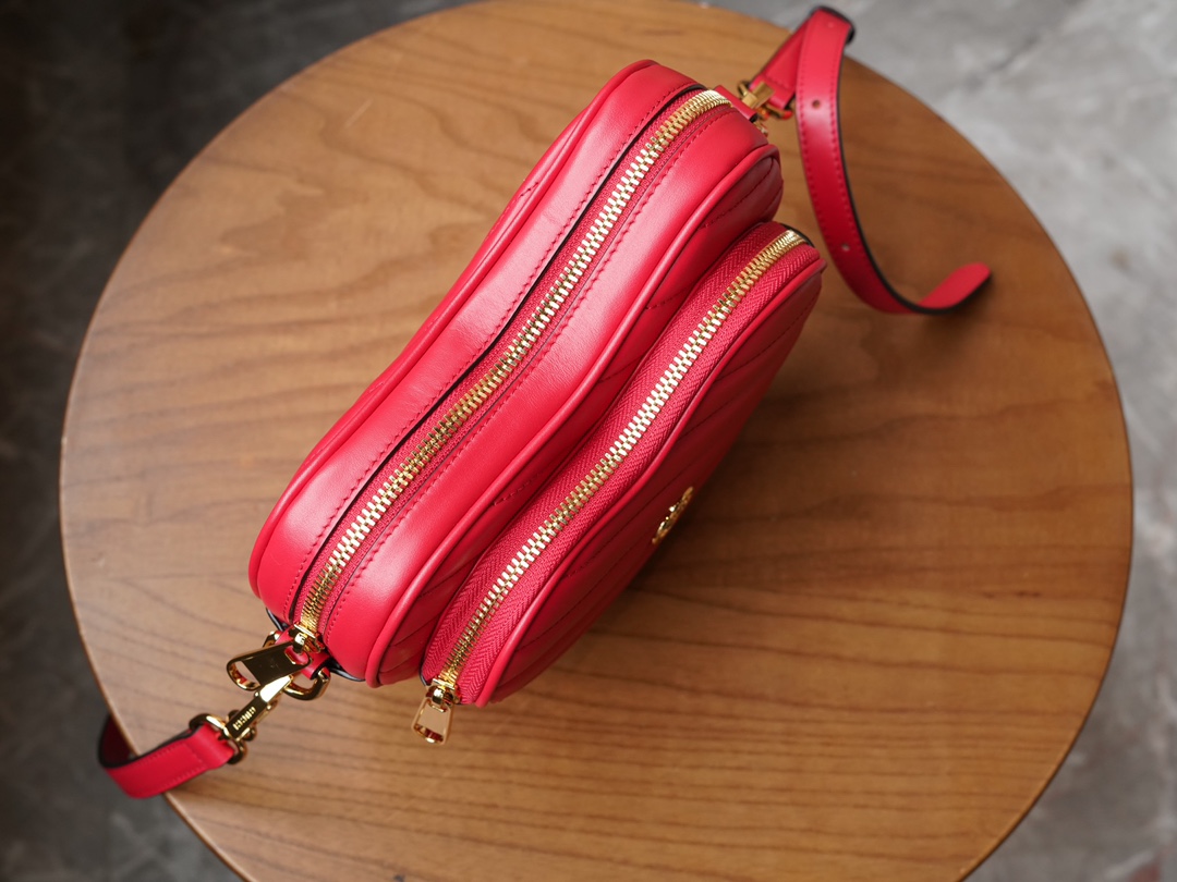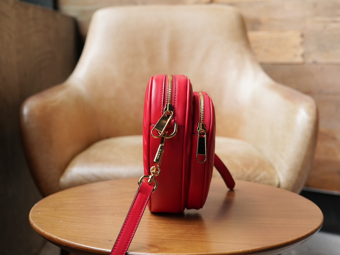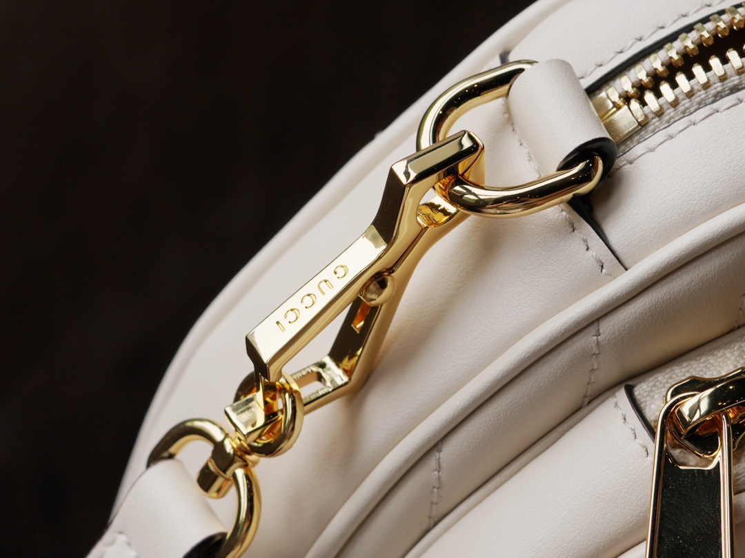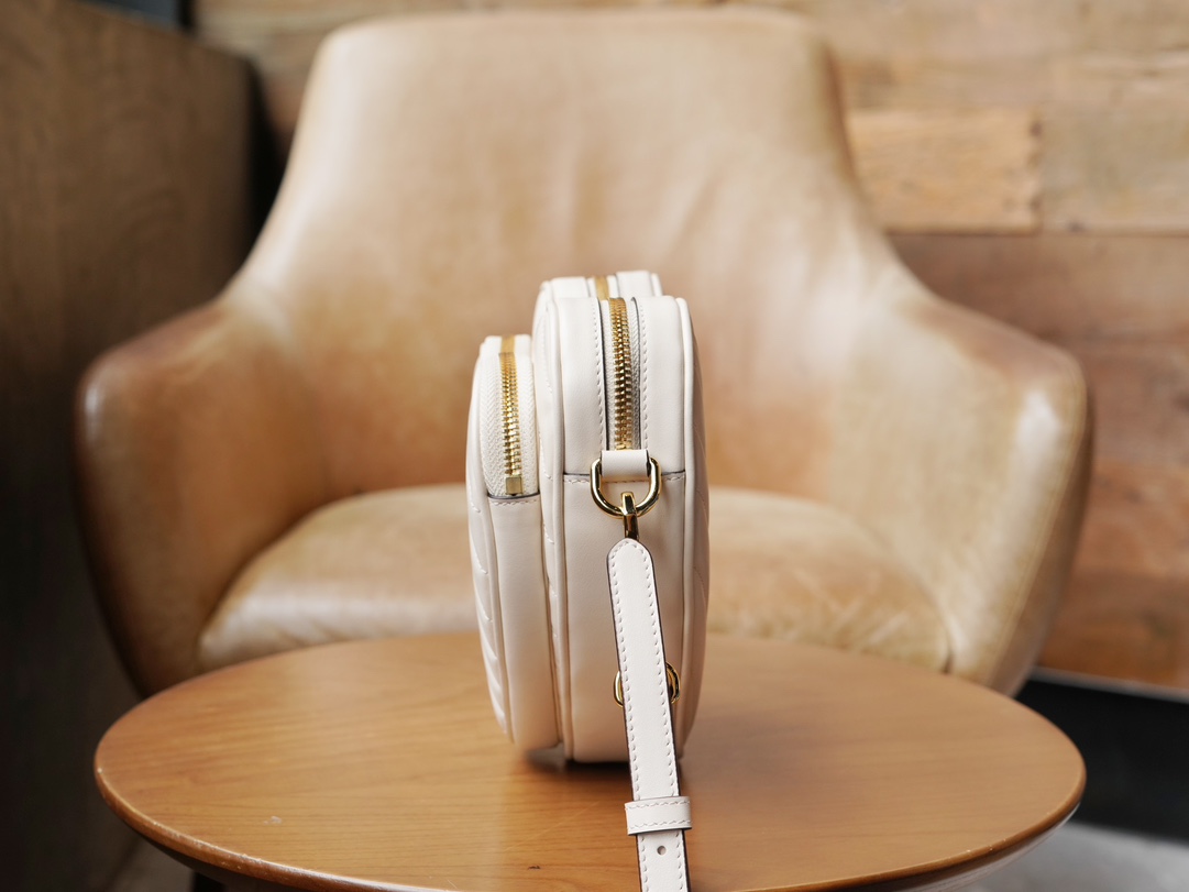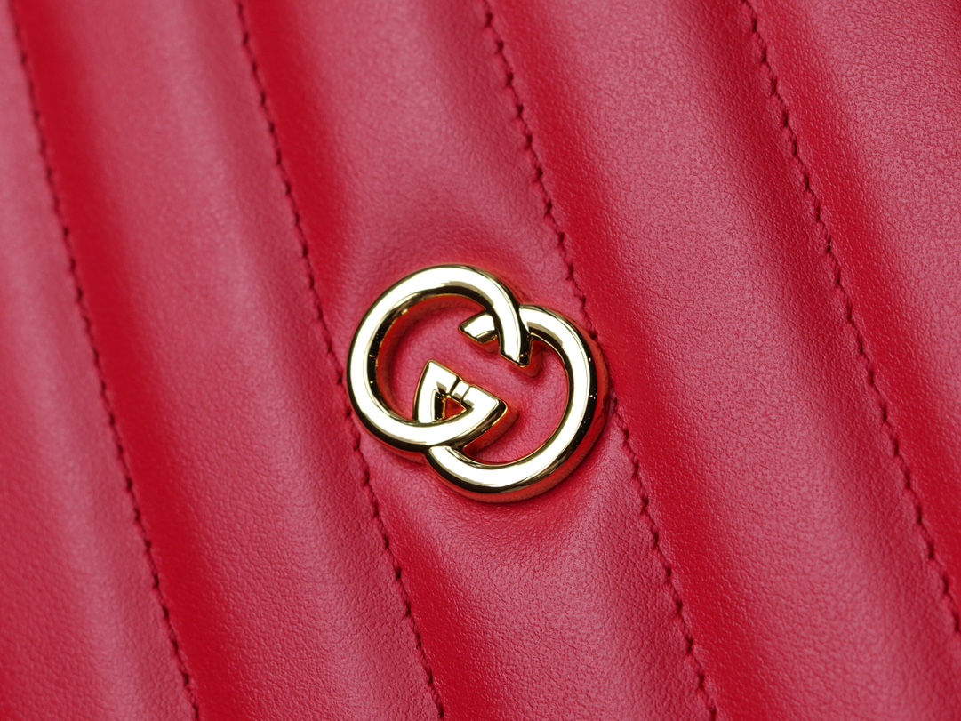 互扣式双G图案从传统精髓与现代廓形中汲取灵感。这款迷你肩背包采用斜纹Matelassé皮革精制而成,同心心形设计为包身注入一抹趣致色彩。