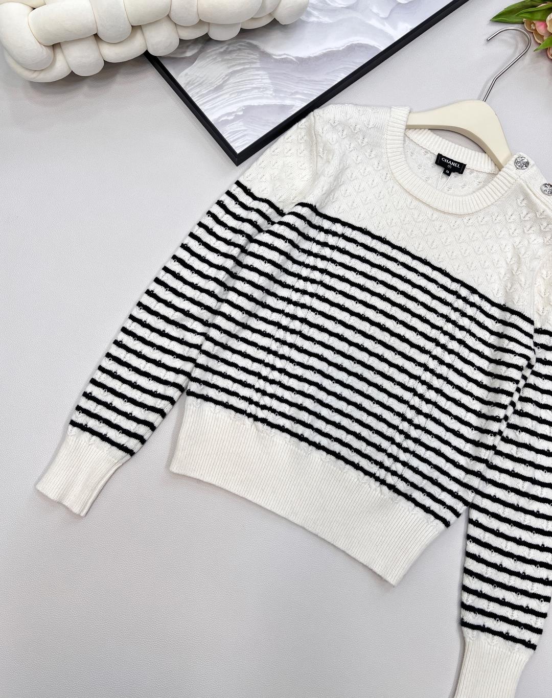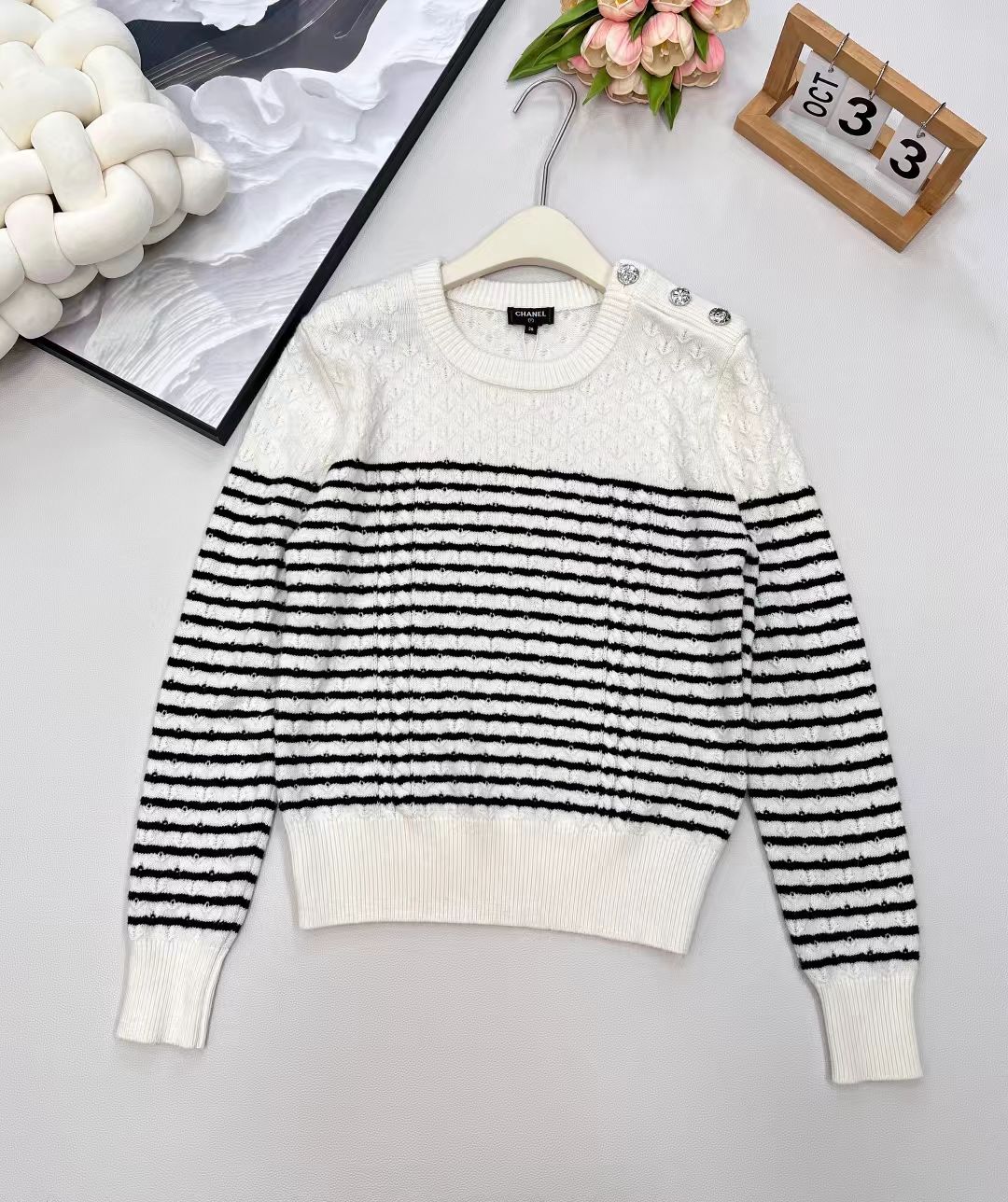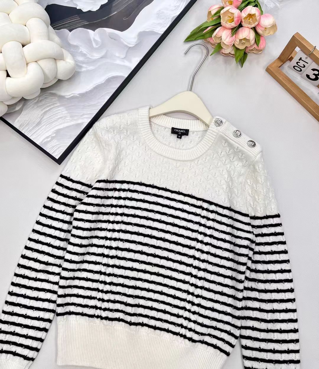 TY449-Chanel 香奈儿 新款条纹编织肩扣套头毛衣(PG*MM)9.16直播款