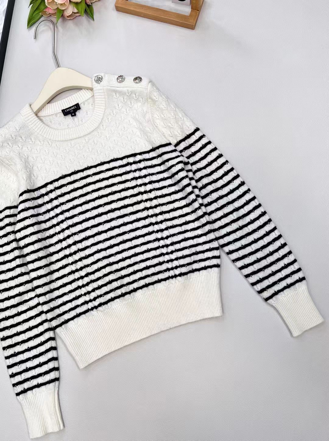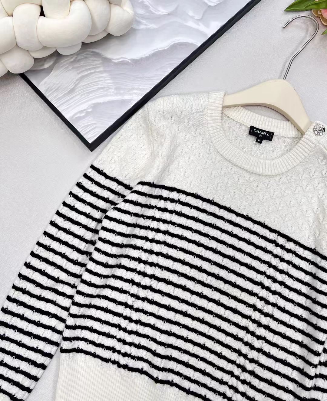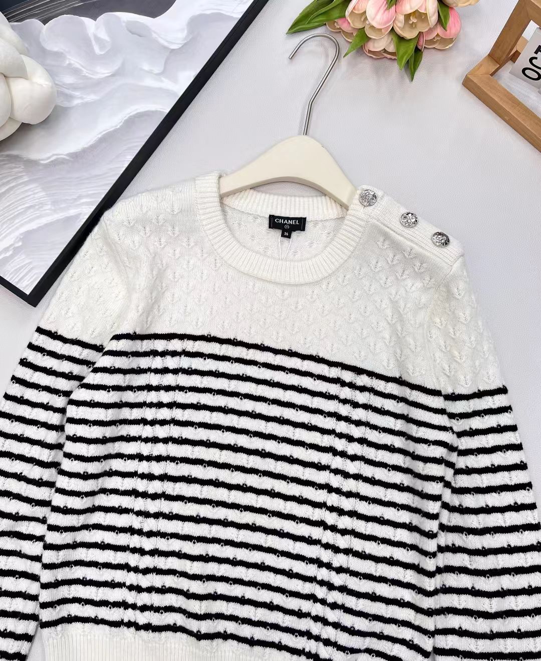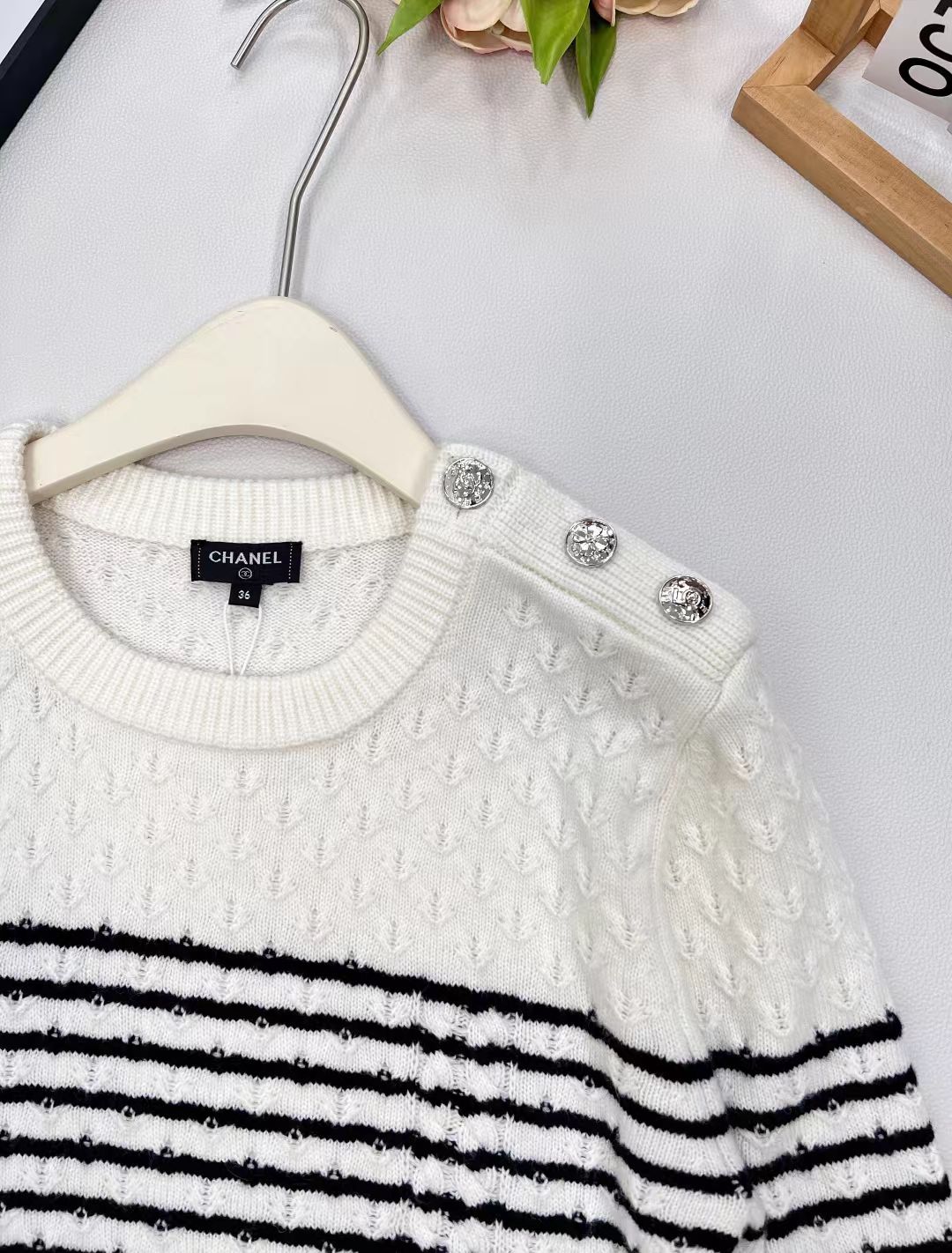 TY449-Chanel 香奈儿 新款条纹编织肩扣套头毛衣(PG*MM)9.16直播款