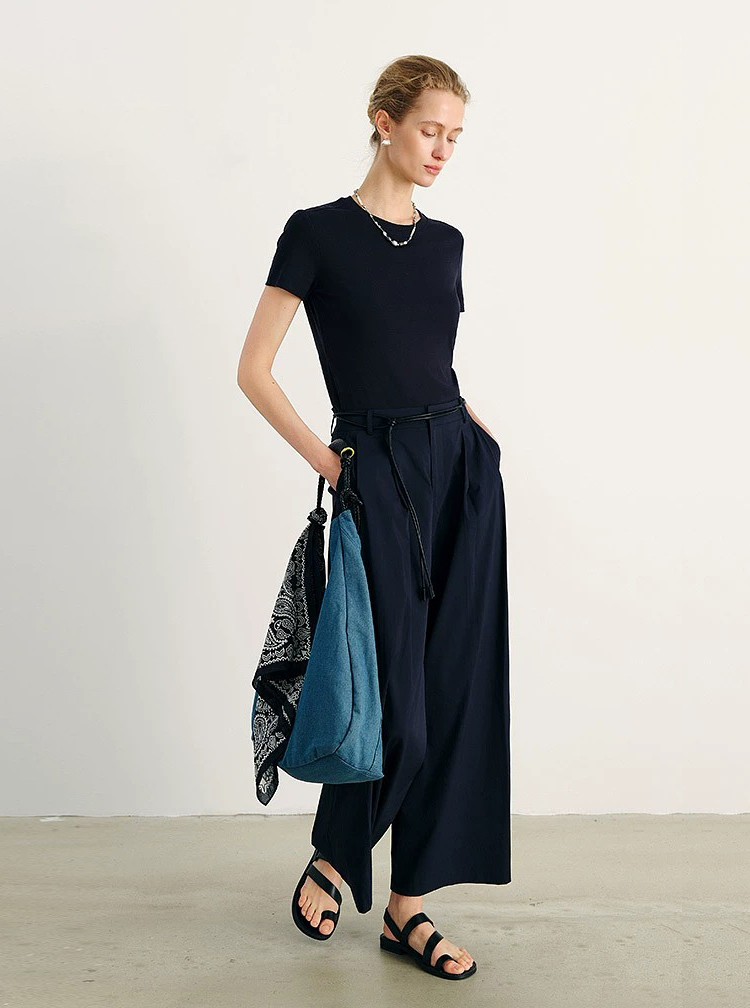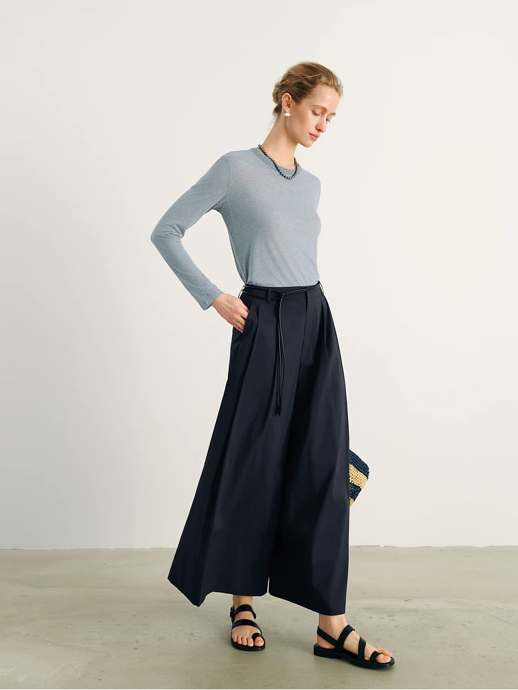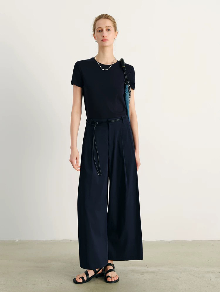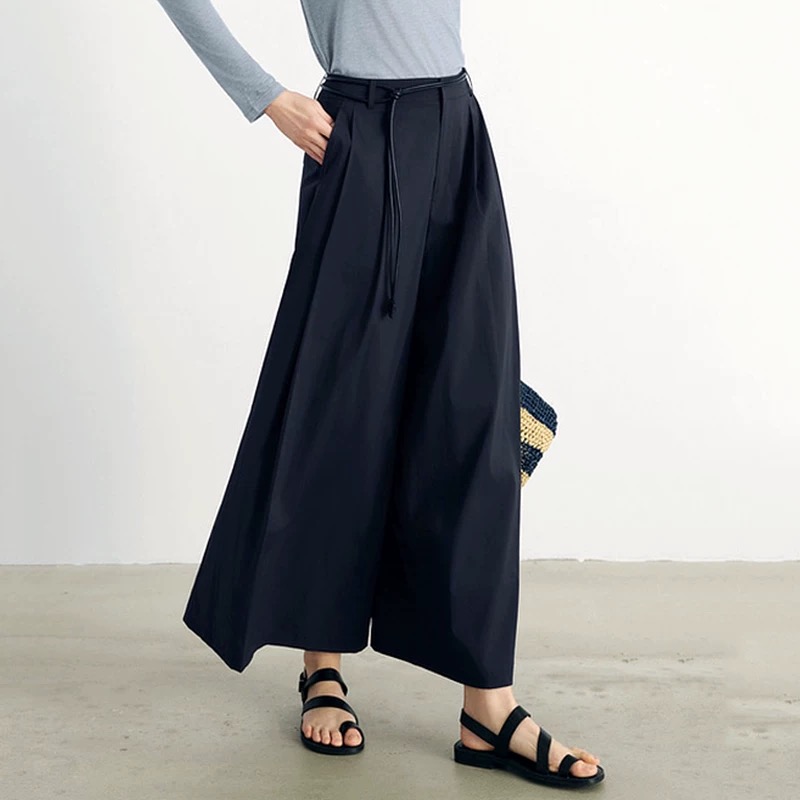 isabelle marran伊莎贝尔高腰显瘦设计感配腰带九分裙裤JS3692888