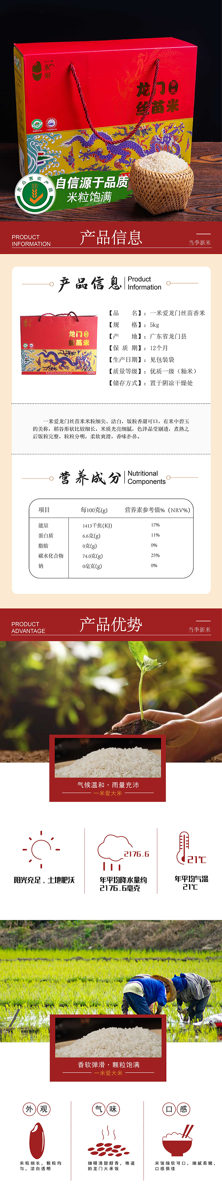 【顺丰包邮】广东惠州龙门一米爱龙门丝苗香米(礼盒装)5kg/盒