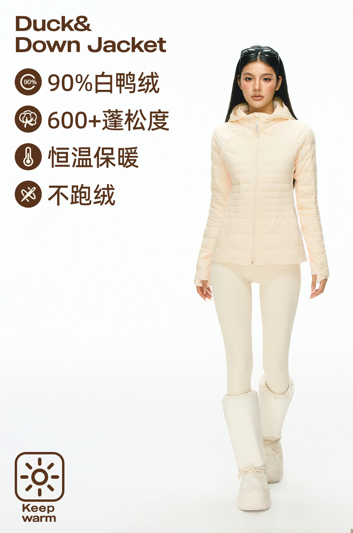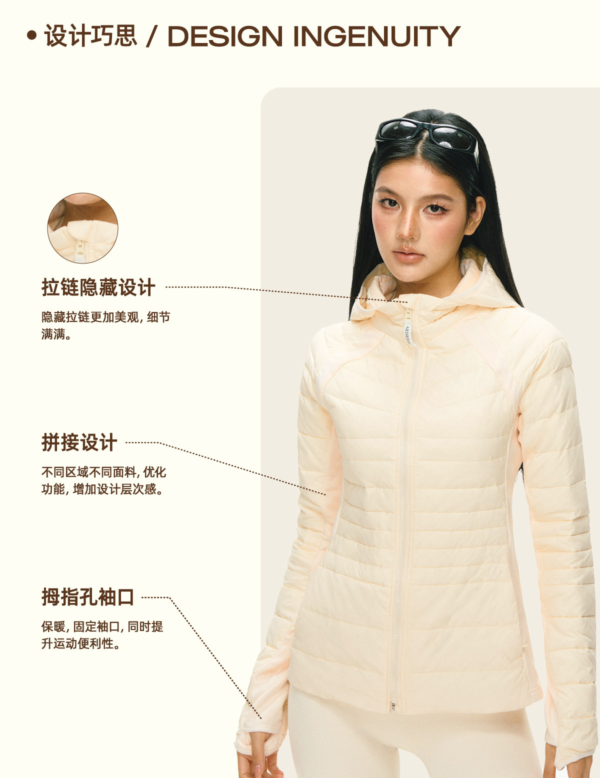 Ariseism 美式复古设计感修身连帽羽绒服女冬季保暖外套