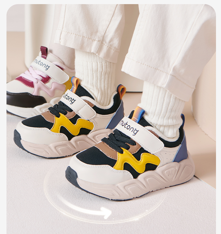 牧童2025冬季新款儿童运动鞋软底减震防滑毛绒保暖男女童流行跑步鞋