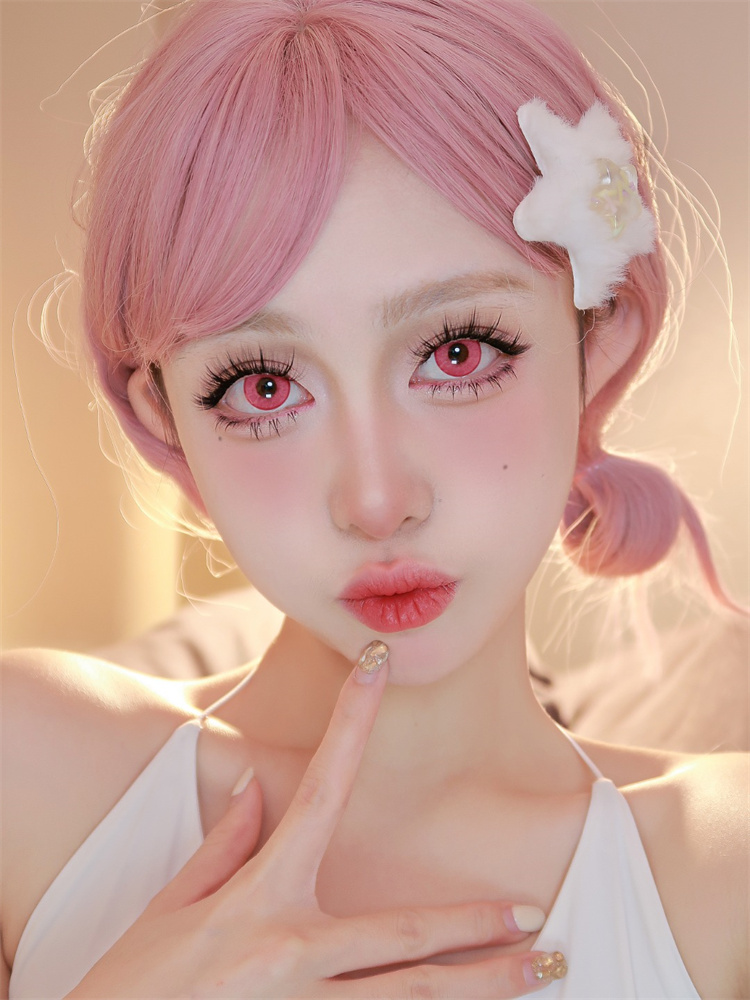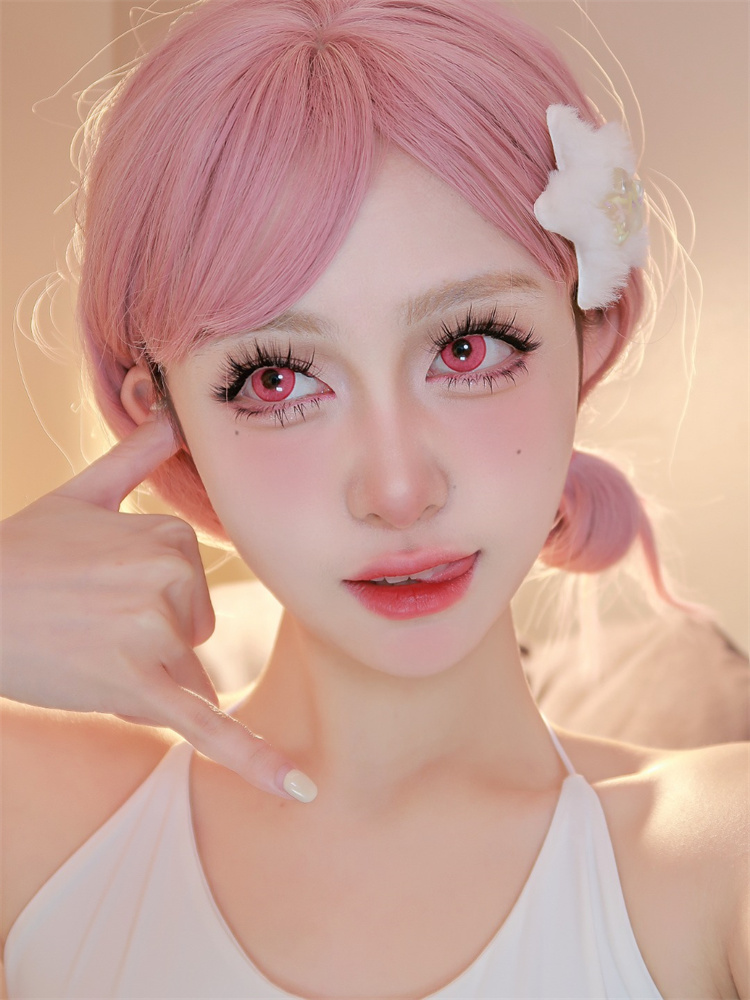 RISAKO梨沙子 甜心玫粉 年抛Cos美瞳 直径14.2mm 粉色