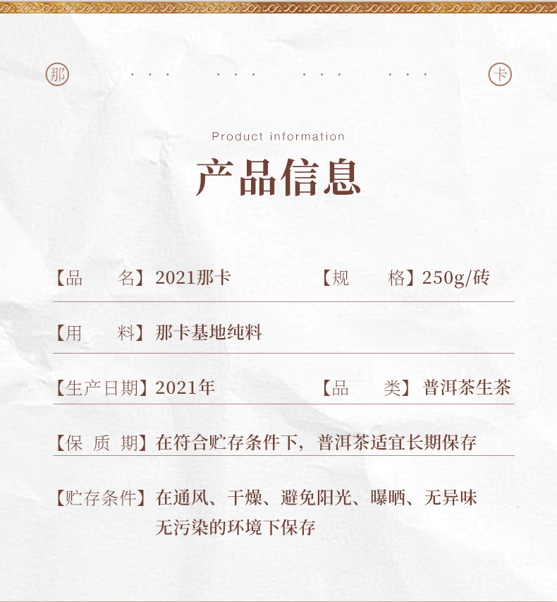 陈升号 2021年那卡砖茶250g(生茶)