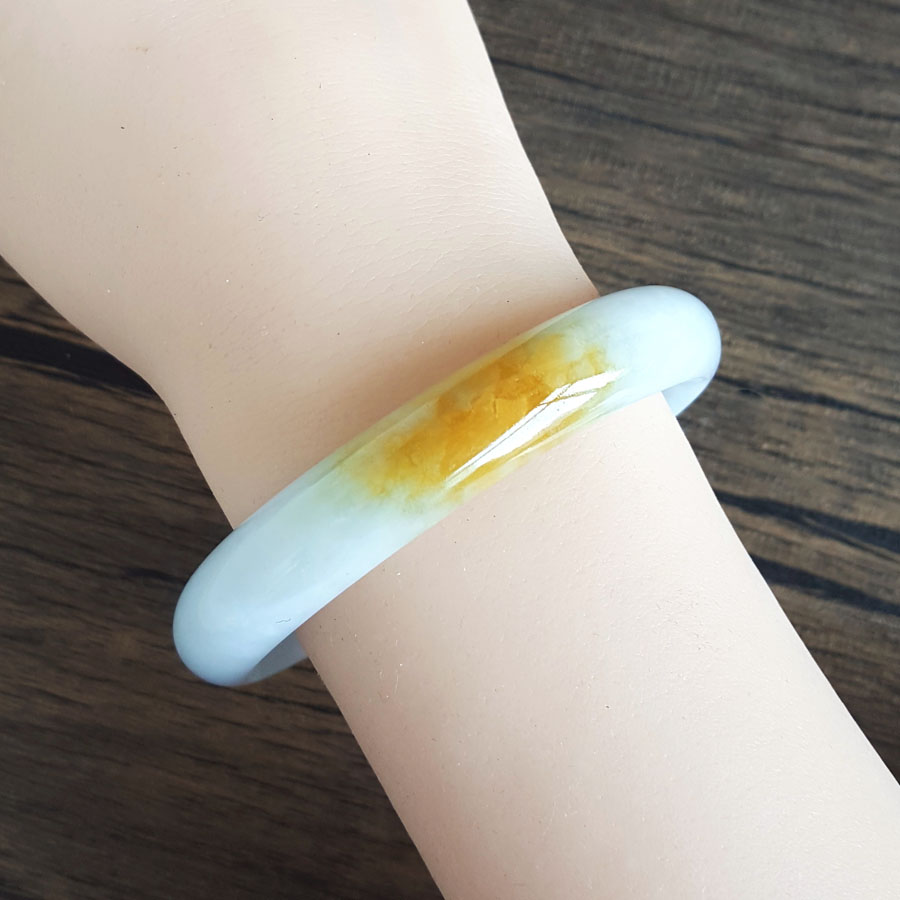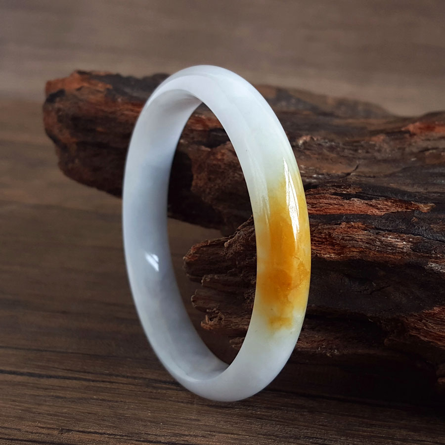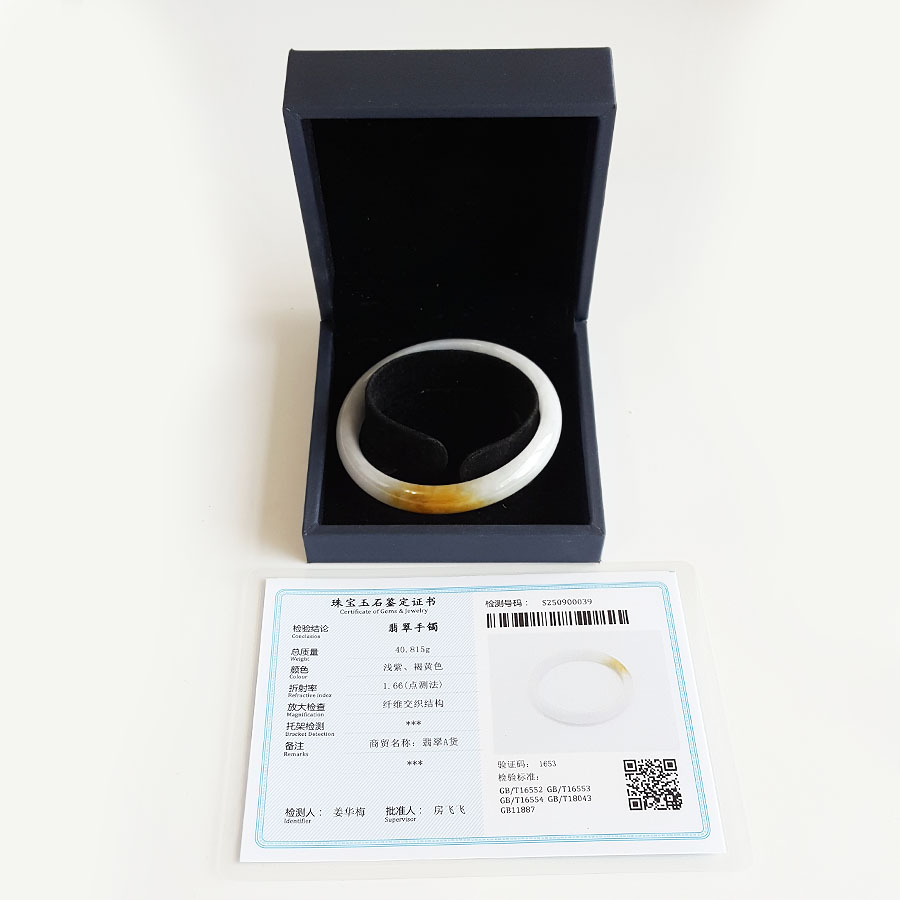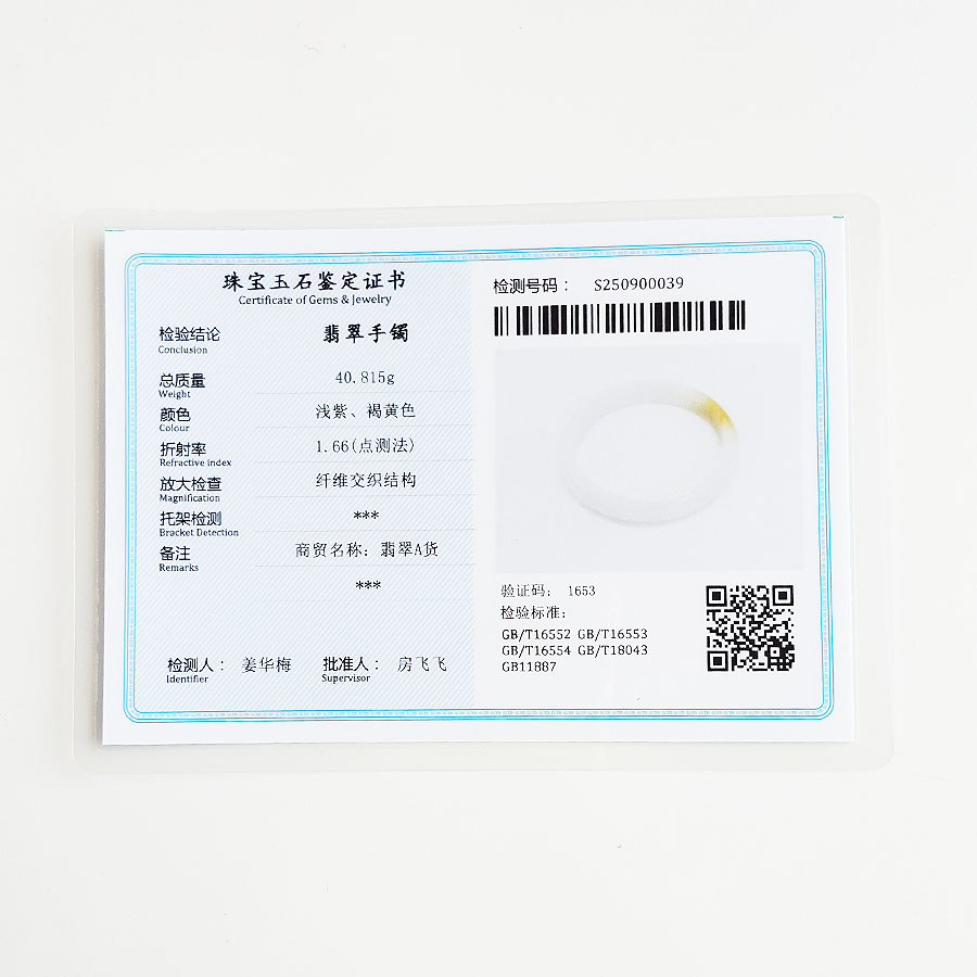 【天然正品】A货翡翠 天然细腻无纹裂糯种紫罗兰飘黄58号翡翠手镯 女士 280325AH39 现售价:1880