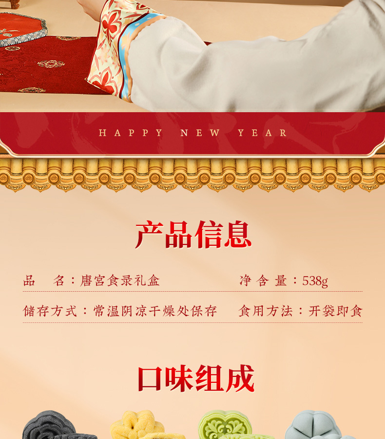 【唐宫食录礼盒】皇家尚食局国风糕点礼盒装圣诞节桃山流心送长辈新年伴手礼物511g