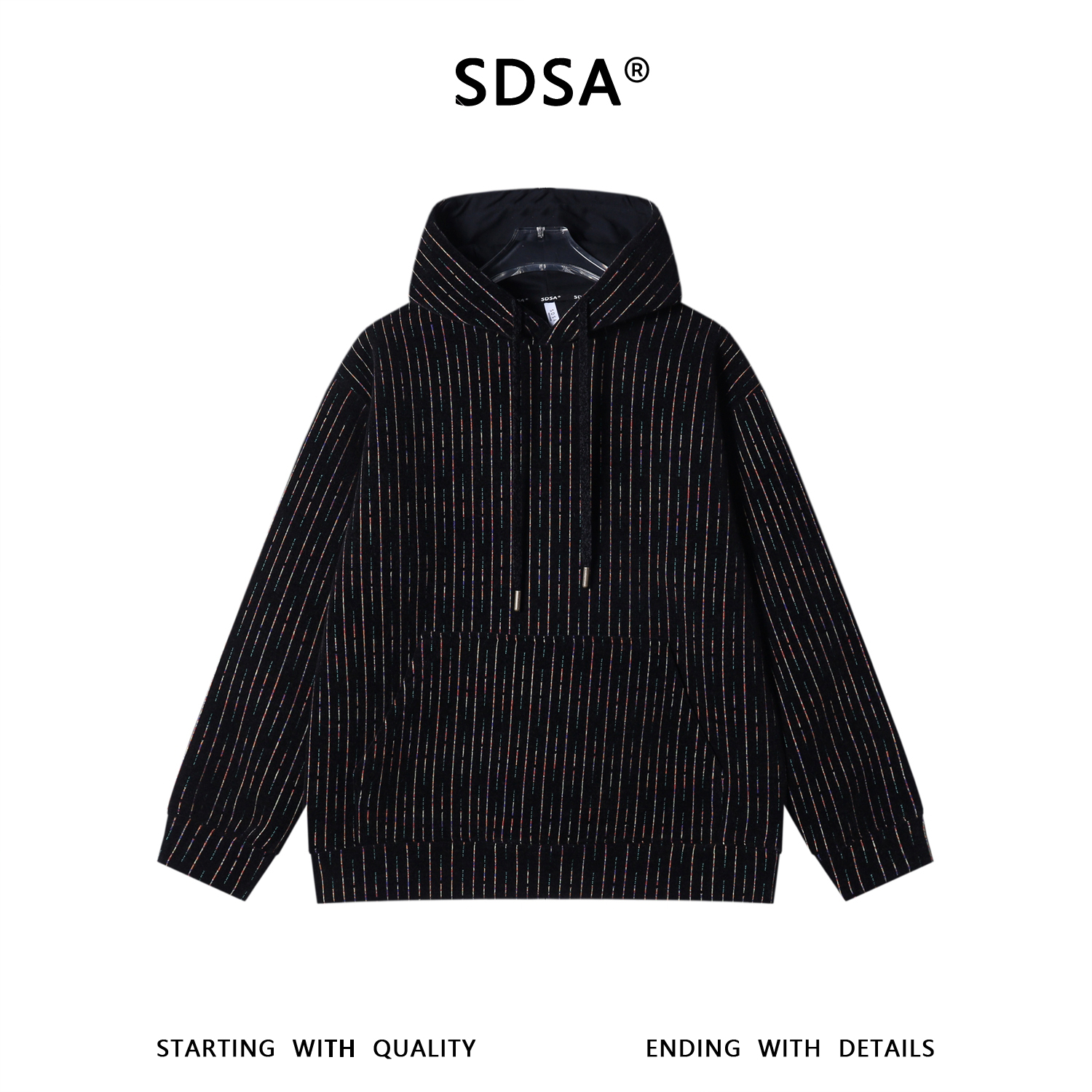 SDSA男士秋冬新款痞帅男装韩版彩色竖纹抽绳连帽卫衣百搭潮流上衣
