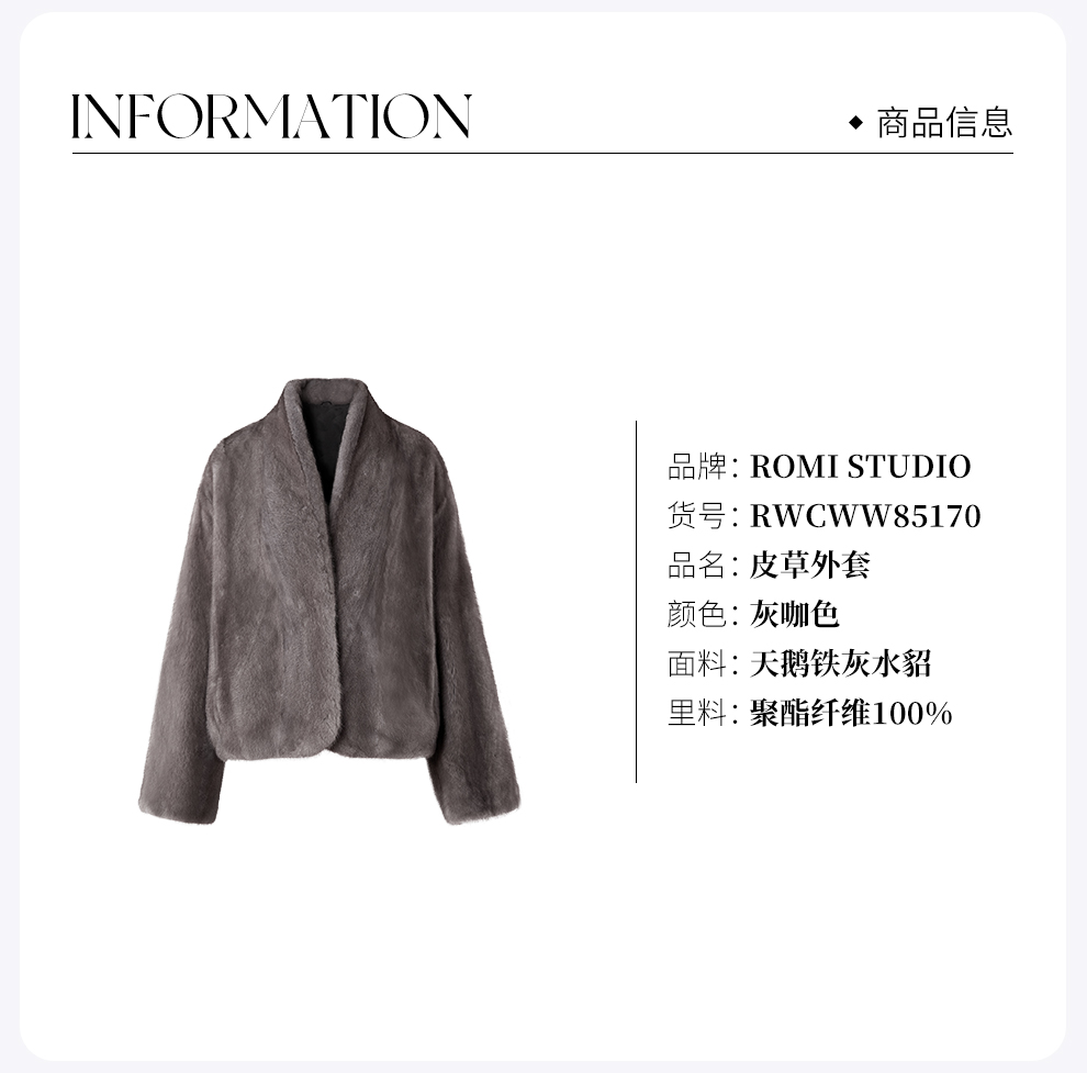 ROMI STUDIO“丹麦天鹅绒”进口水貂奢华密绒短款皮草 RWCWW85170