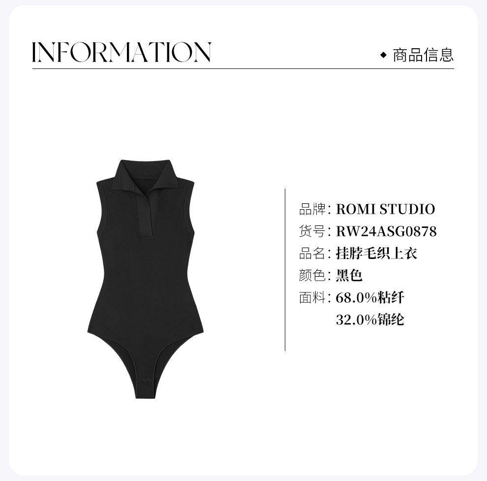 ROMI STUDIO 简约高级感黑色翻领无袖弹力修身连体衣 RW24ASG0878(现货)