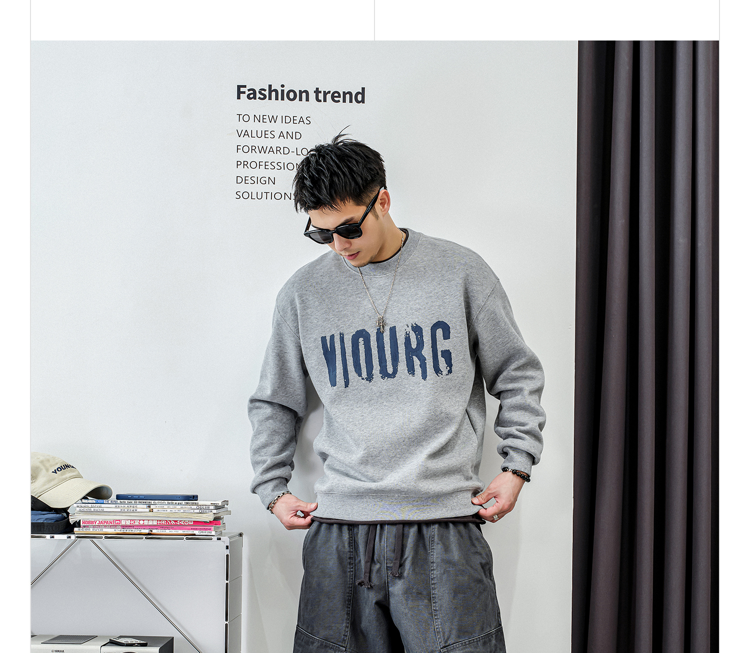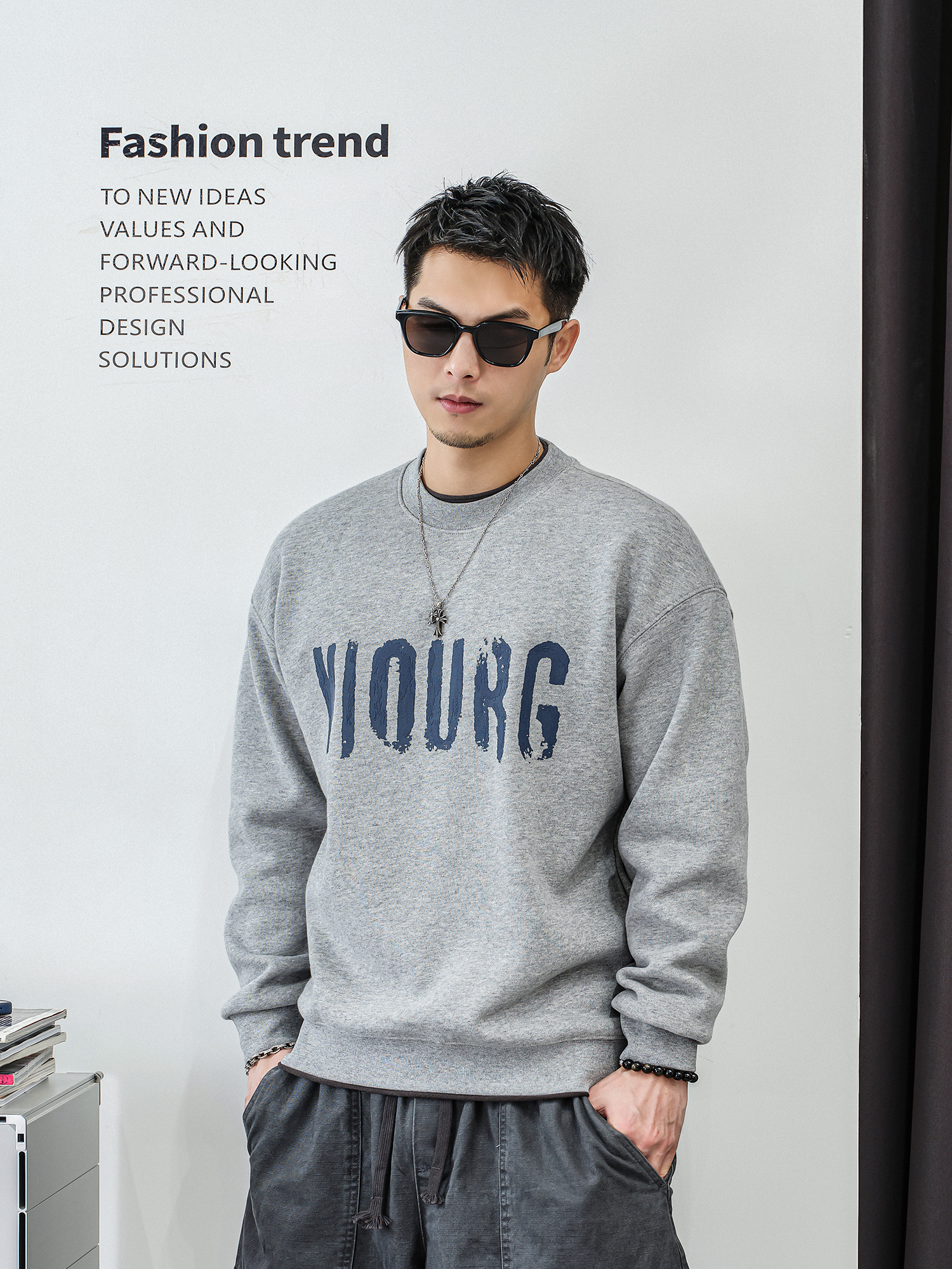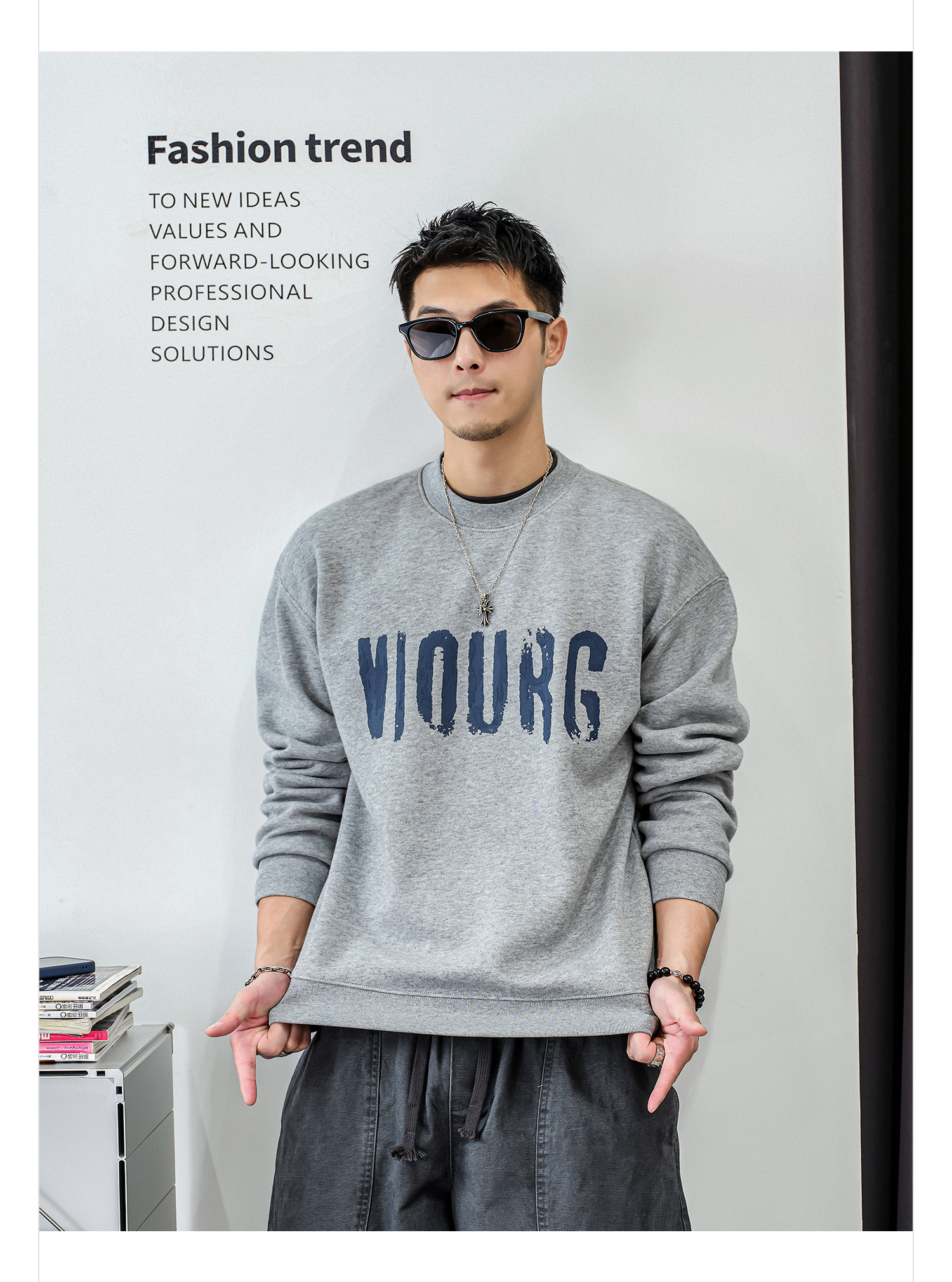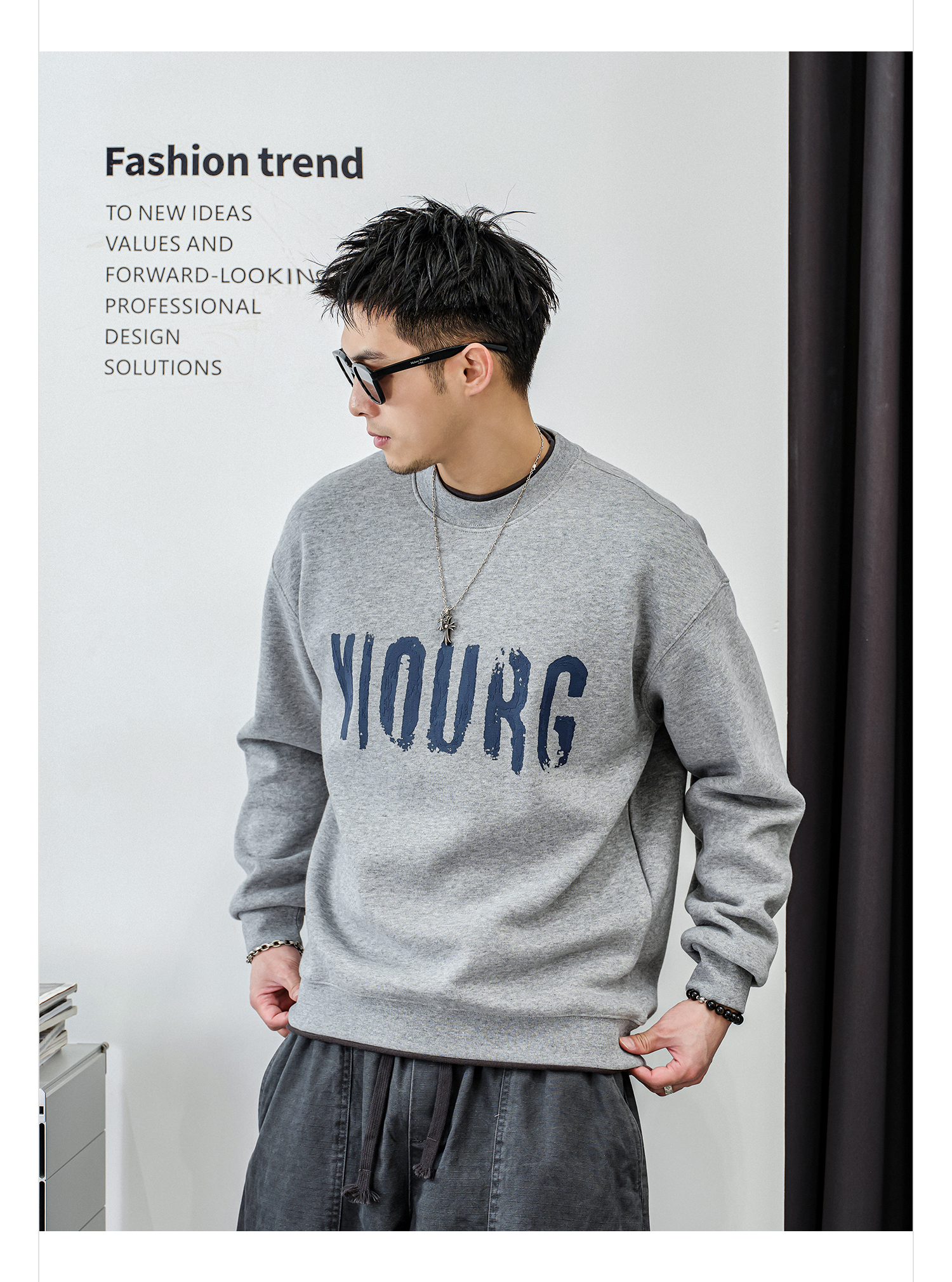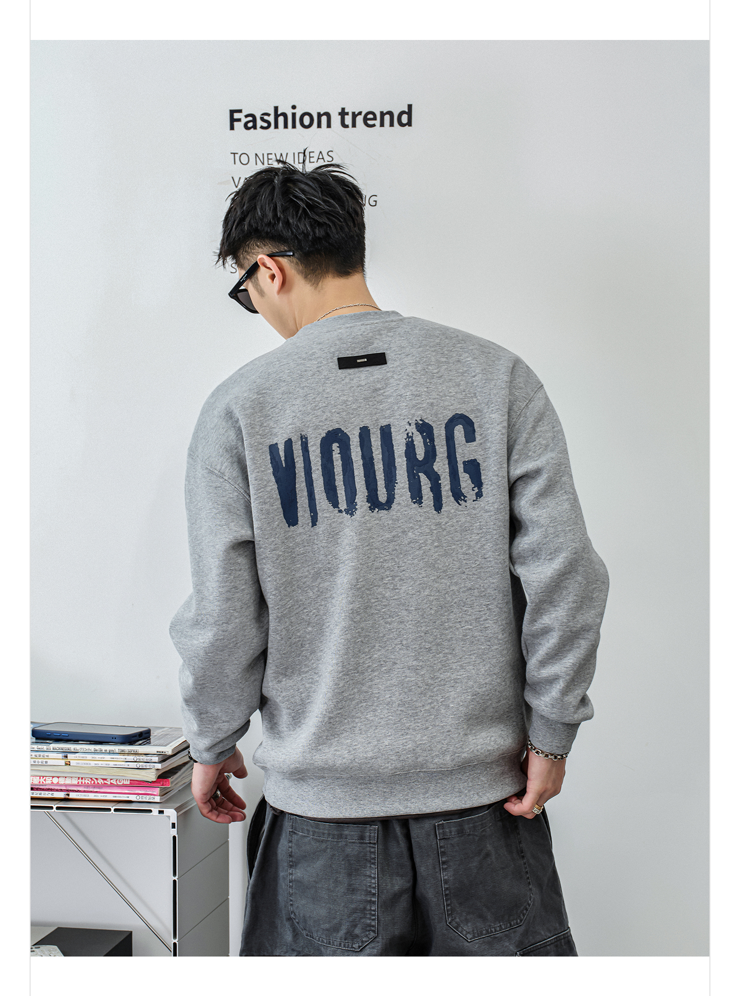 徐太浪【街头风 做旧印花】加绒字母卫衣男秋冬款休闲打底衫上衣