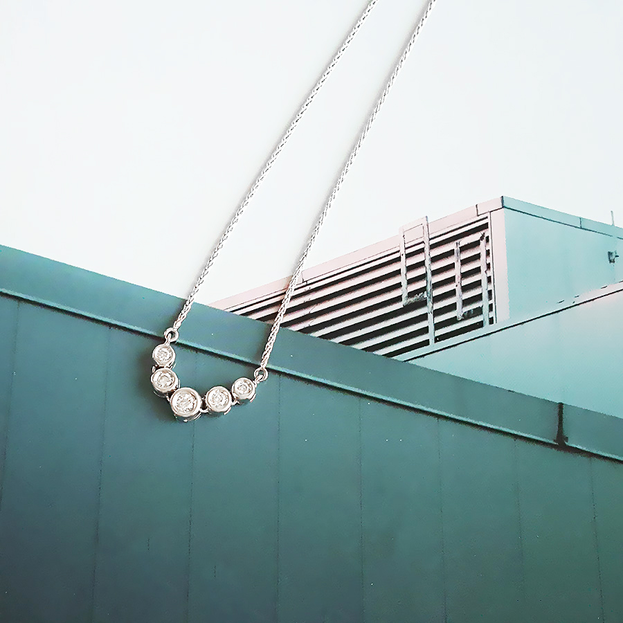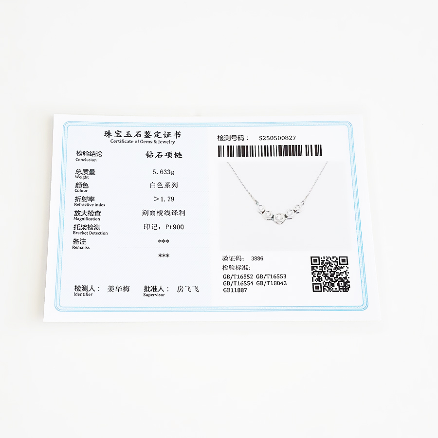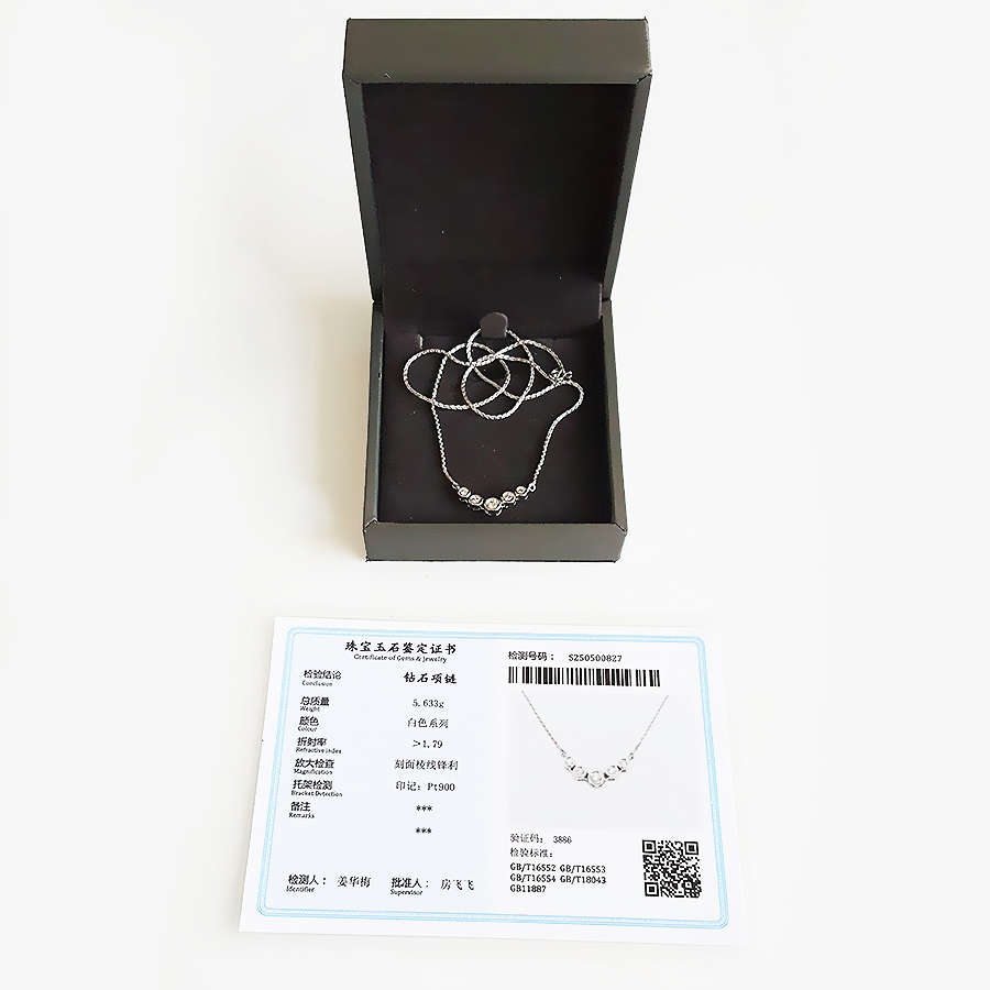 款式 | PT900铂金时尚设计款5颗排镶近50分钻石吊坠项链 |