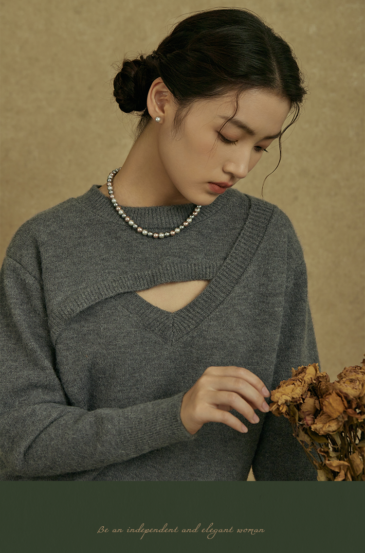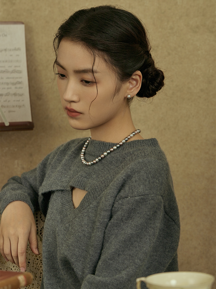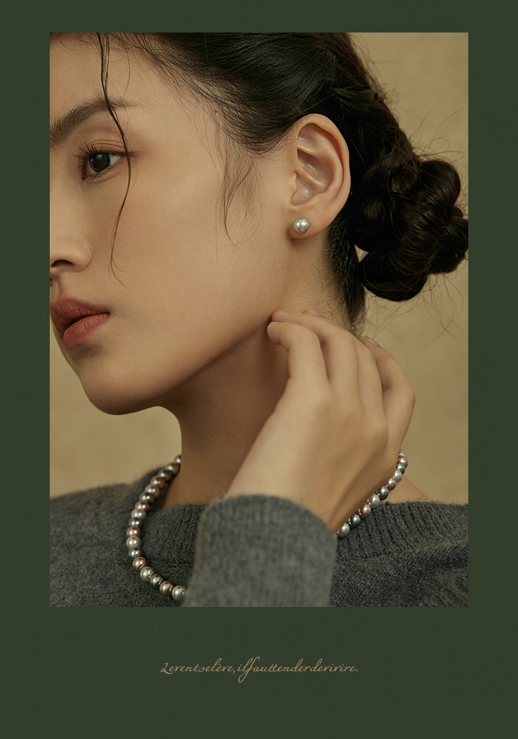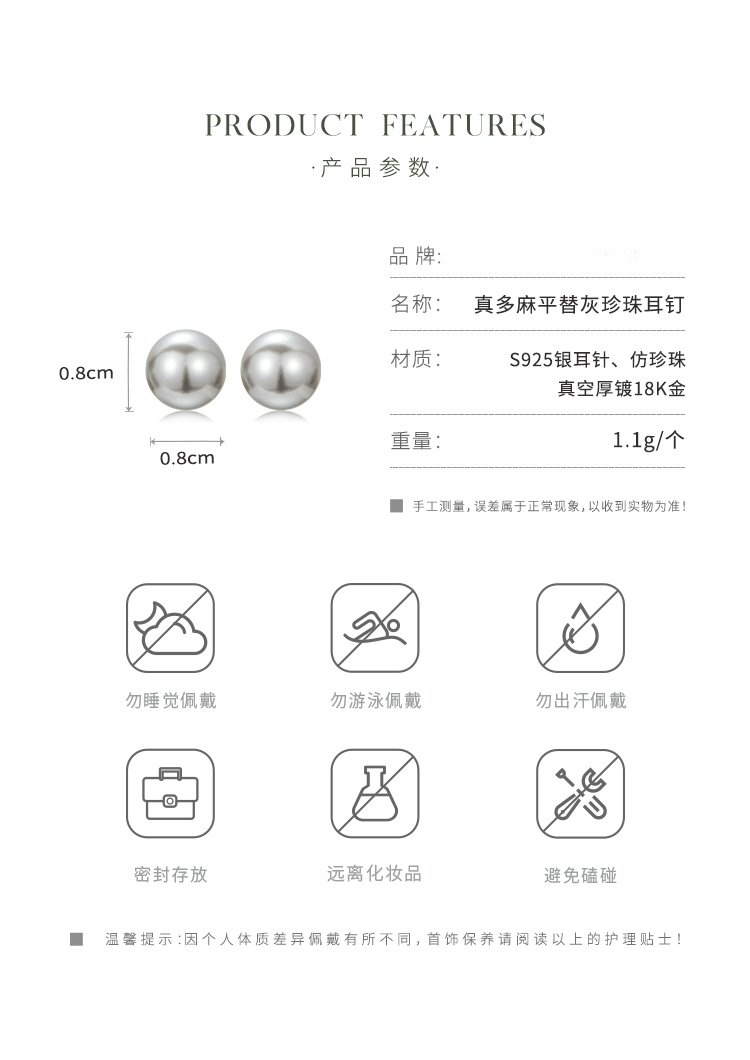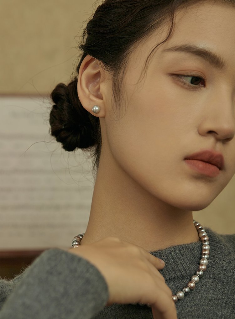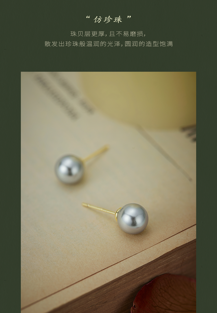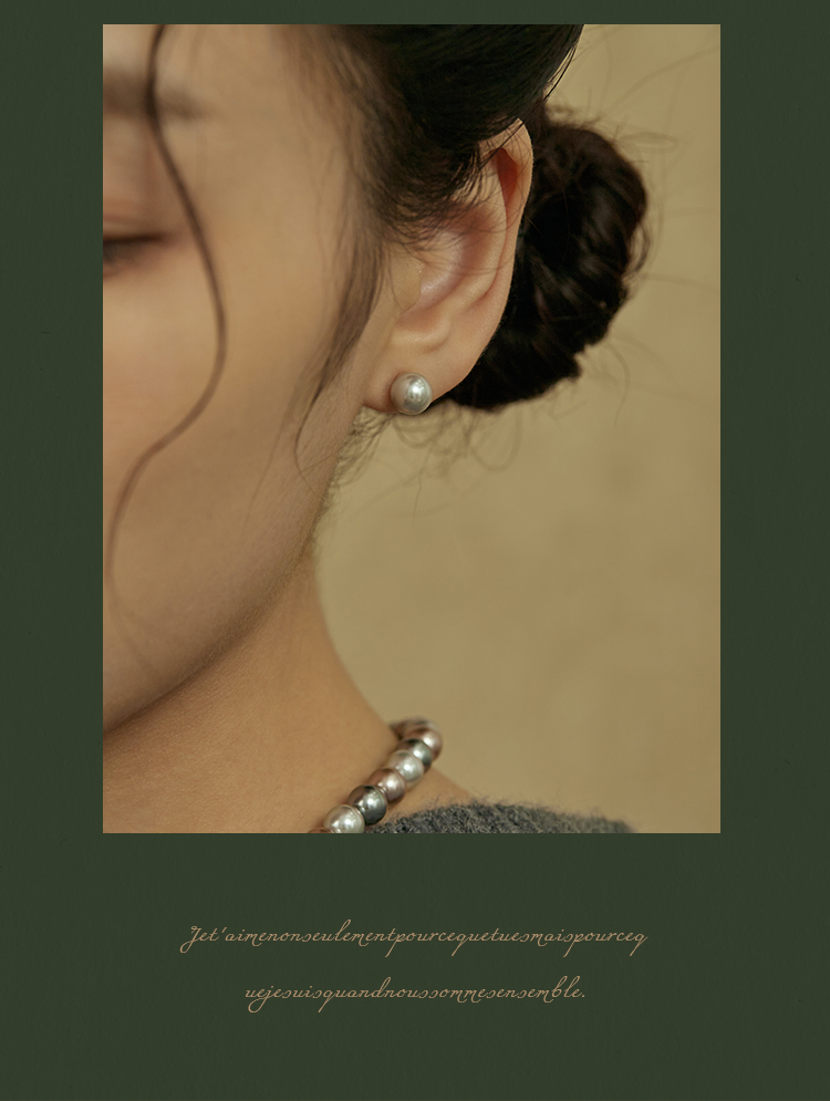 Oflye潮流饰品 银灰仿珍珠耳钉女新款真多麻色秋冬耳饰