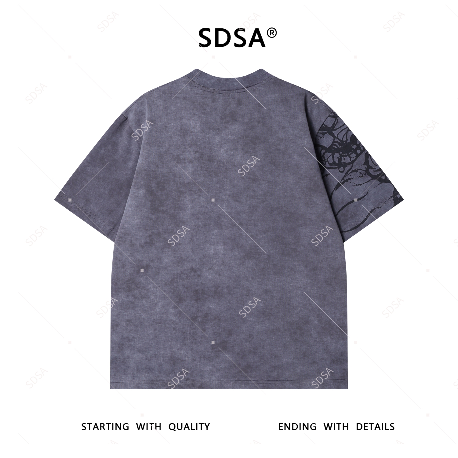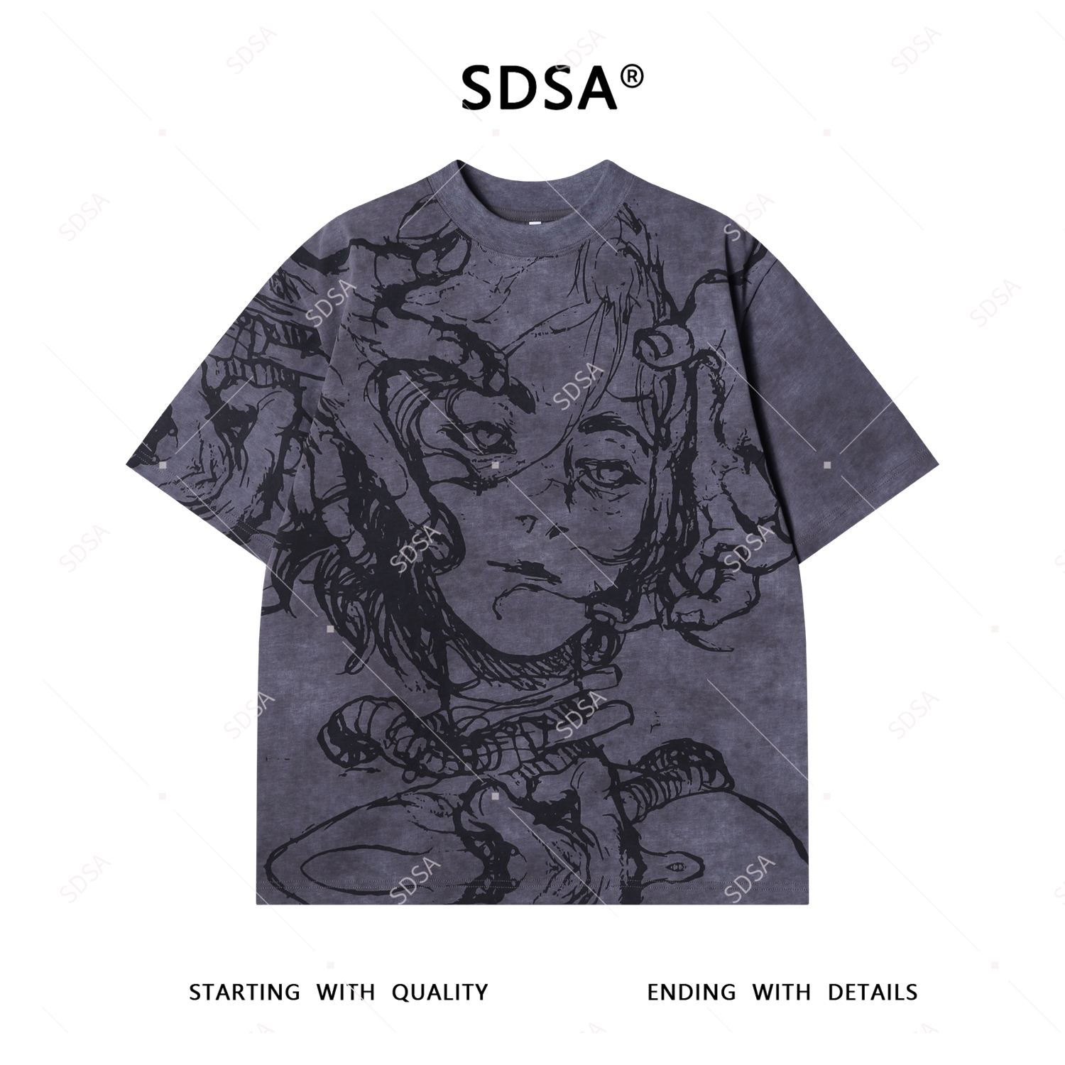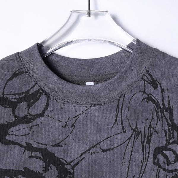 夏季高级感新款男士美式撞色动漫线稿设计短袖T恤高街复古上衣潮
