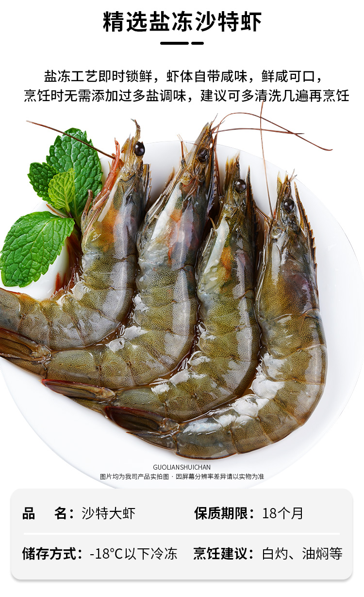 沙特皇家海域大虾 4斤重原装进口 生鲜速冻海鲜生鲜 盐冻冷冻虾超大号白对虾沙特虾