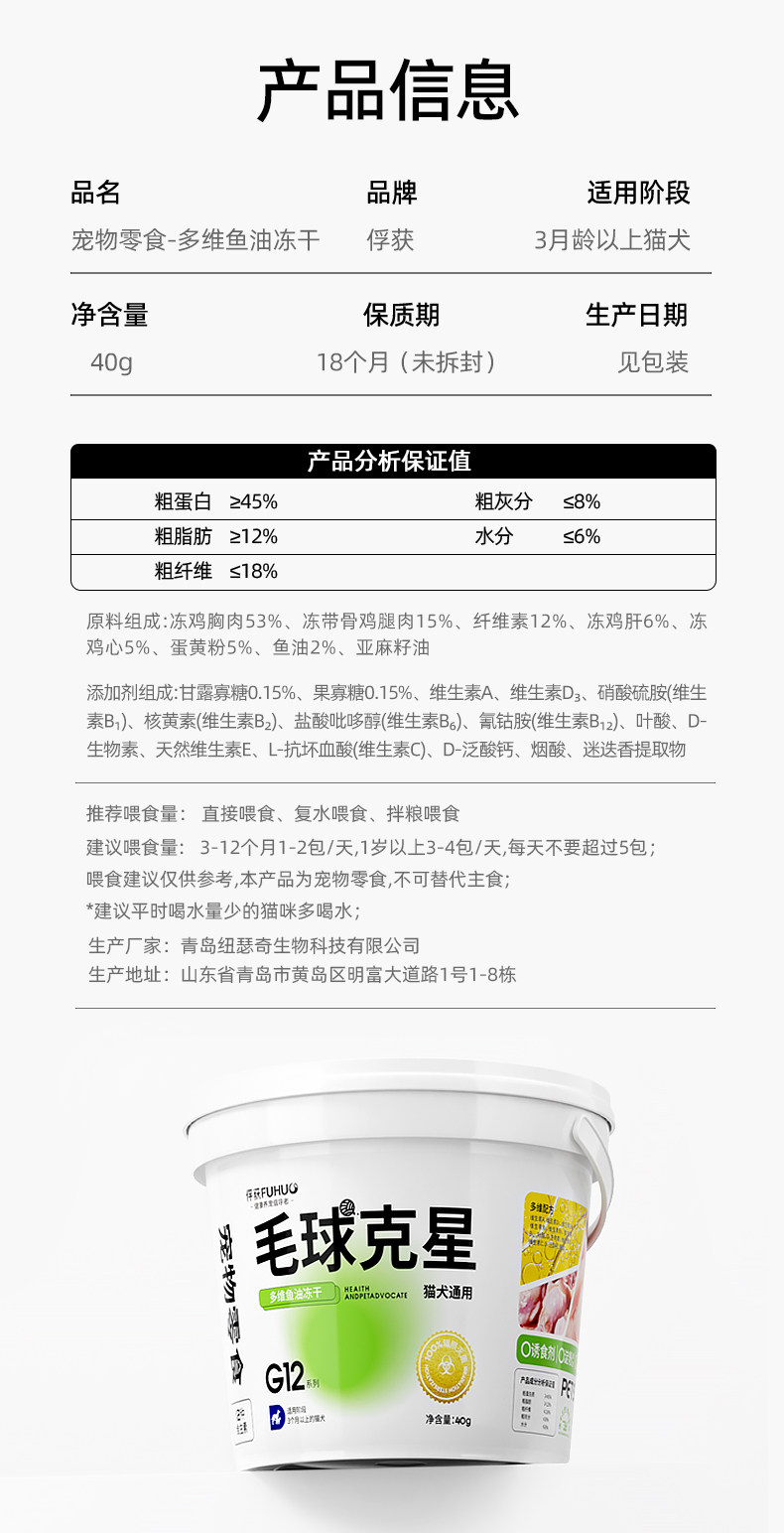 【俘获好礼】俘获G12毛球克星猫咪零食云杉助排毛助化毛片猫草冻干粒磨牙专用