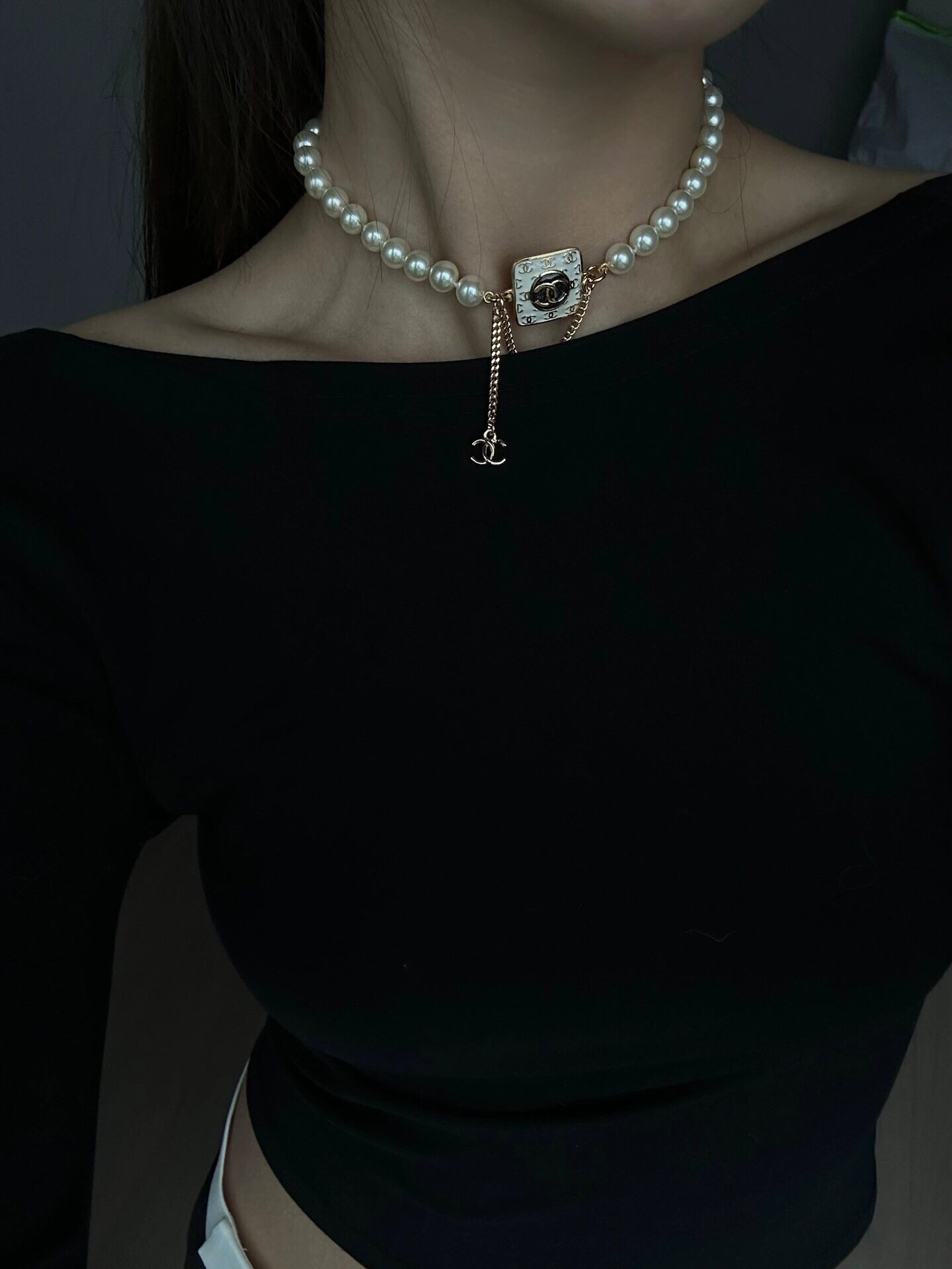 214014【香白胖方金c珍珠项链】