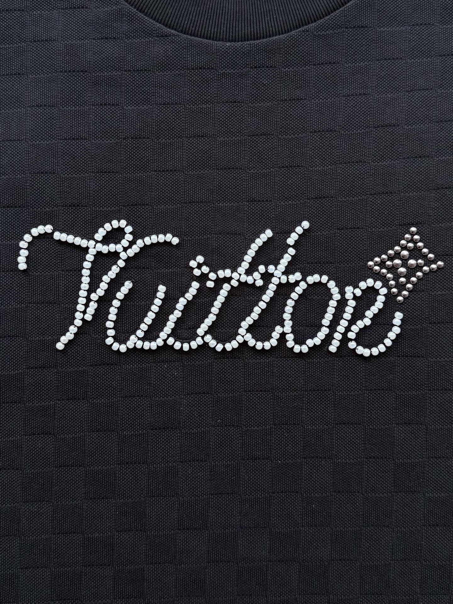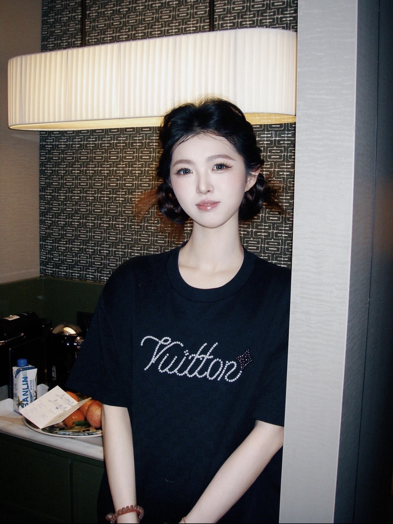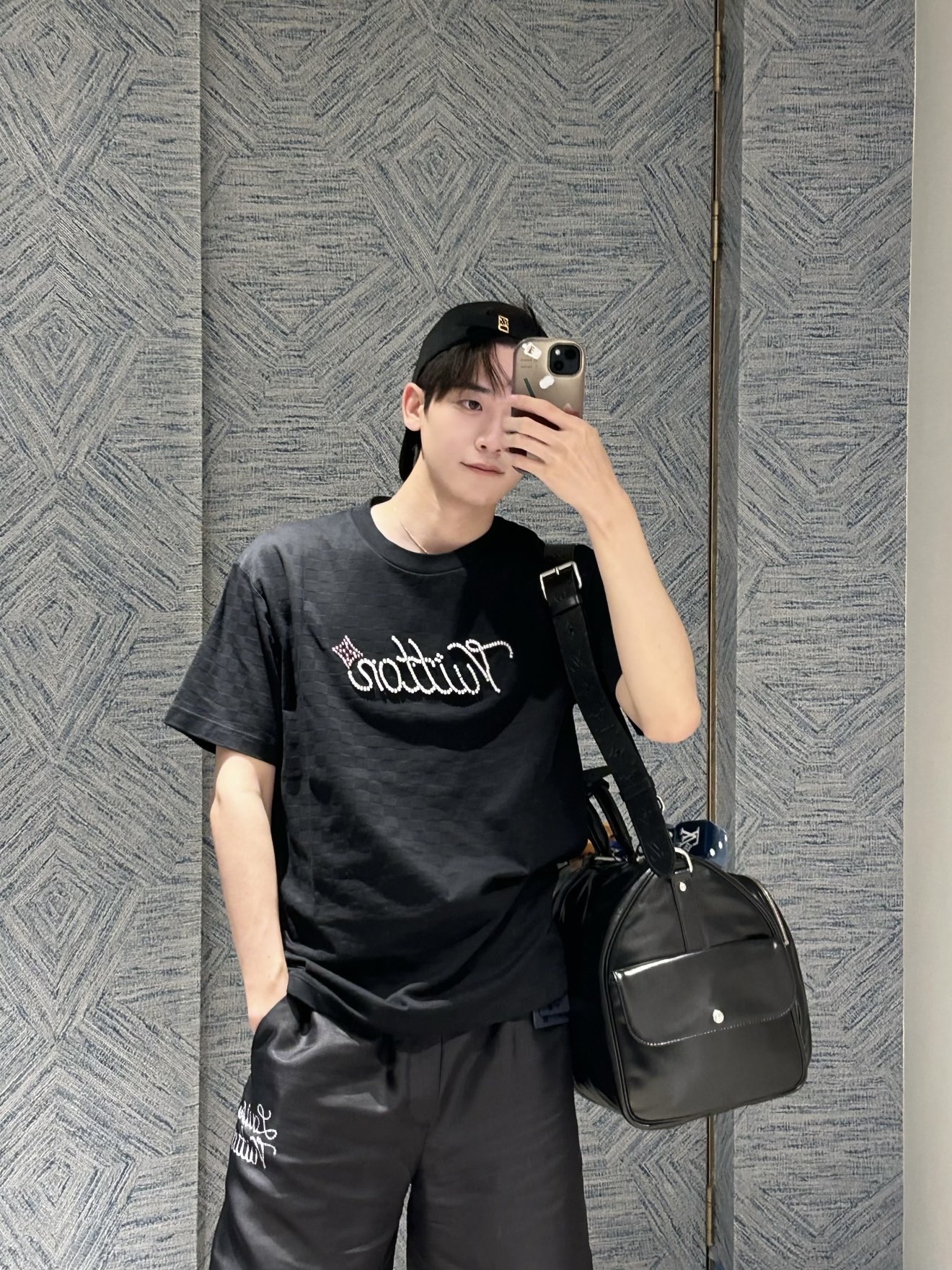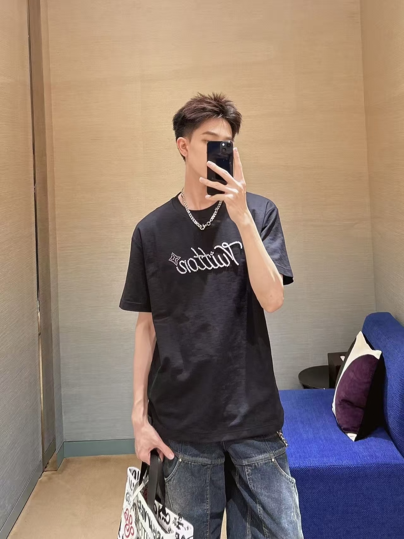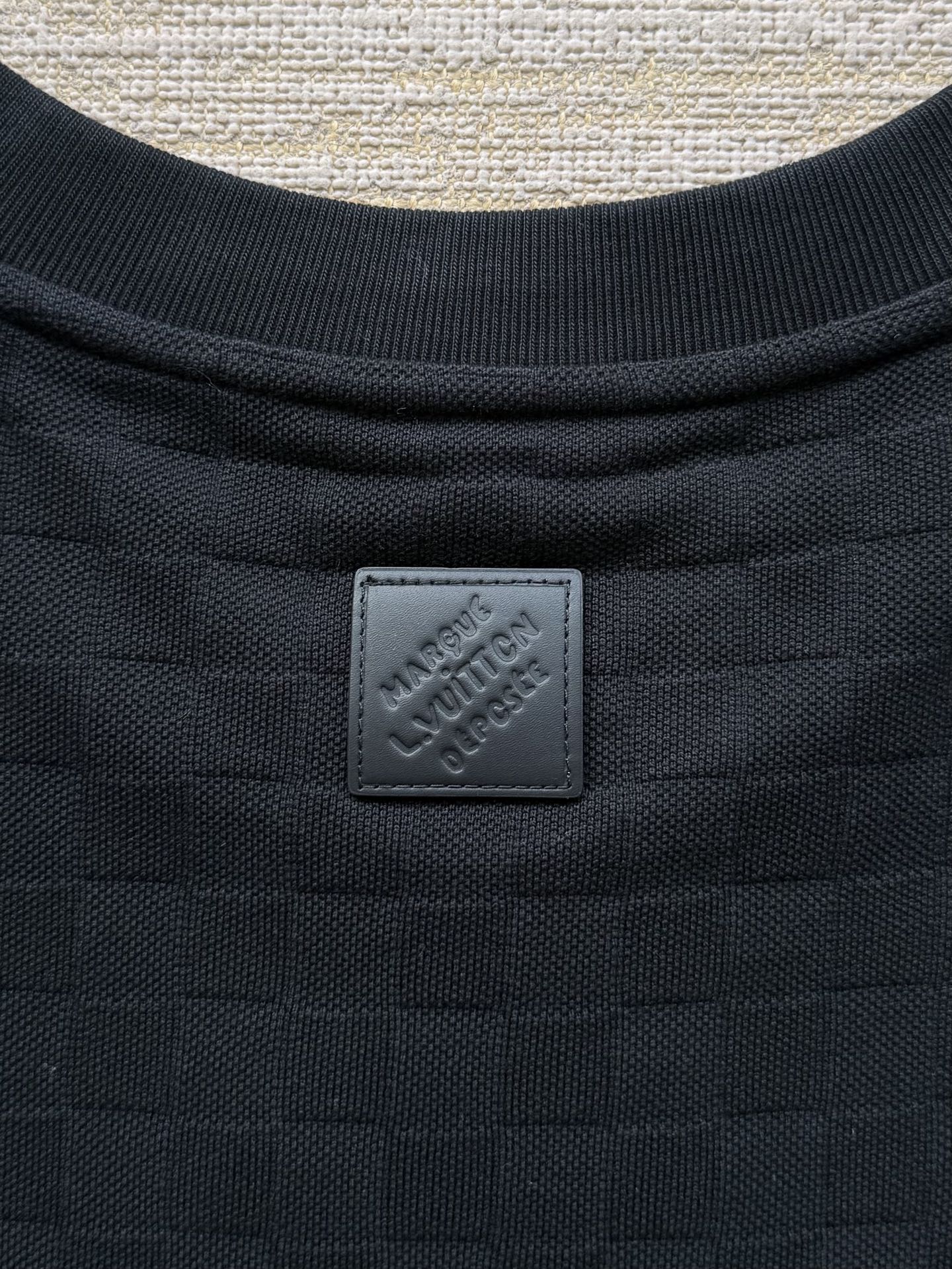 Louis Vuitton25ss字母标识金属钻珠链绣短袖T恤‼️整件衣服10200购买ZP拆解打造,采用定制黑色纯棉面料,做到100%全棉进口纱线,意大利制造,前幅饰以字母标识珠饰刺绣,定织标志性罗纹领口,超紧密度局部编织,真正做到1:1copy 码数:XS S M L