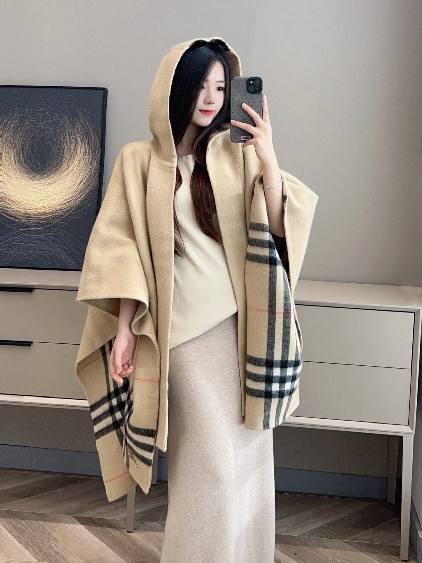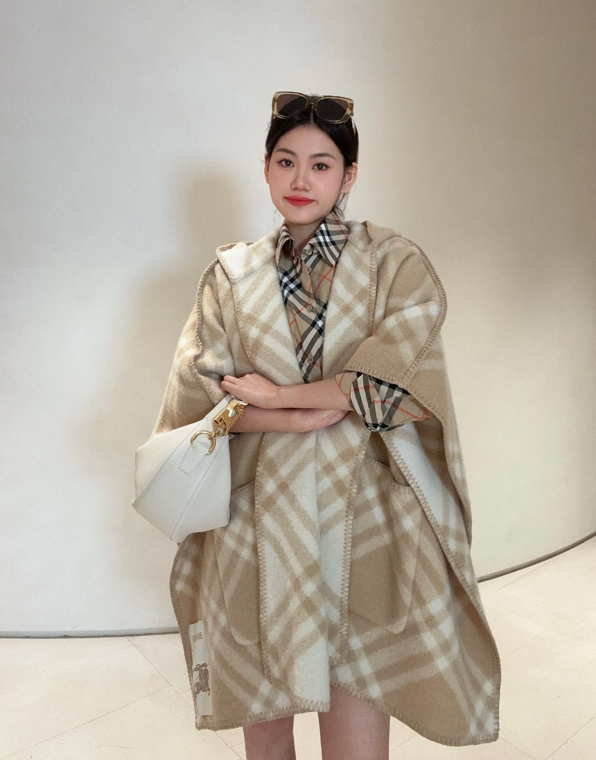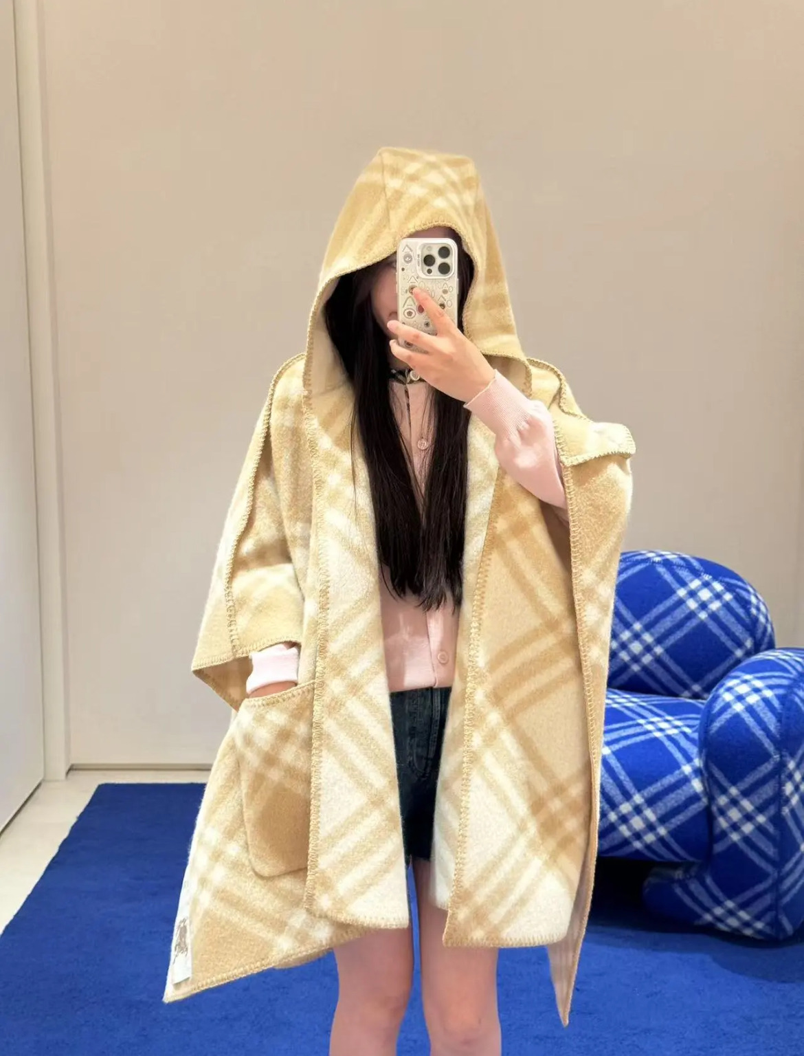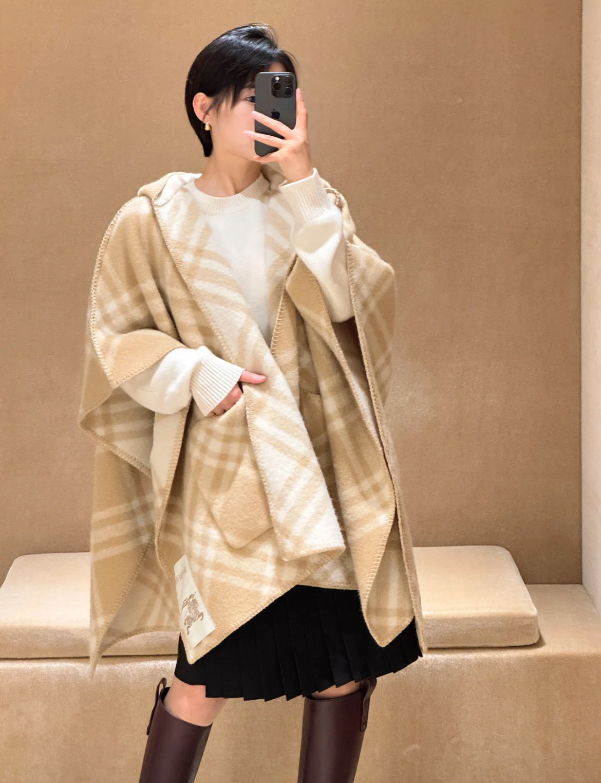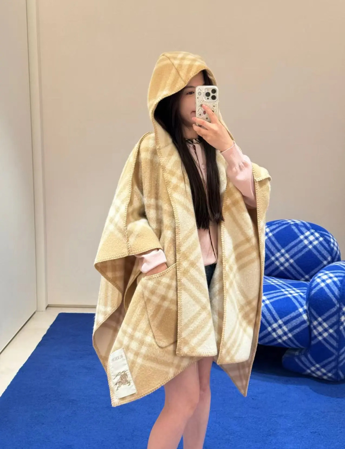 𝐁𝐮𝐫𝐛𝐞𝐫𝐫* 最新 2025《双面连帽斗篷》奶茶色格纹