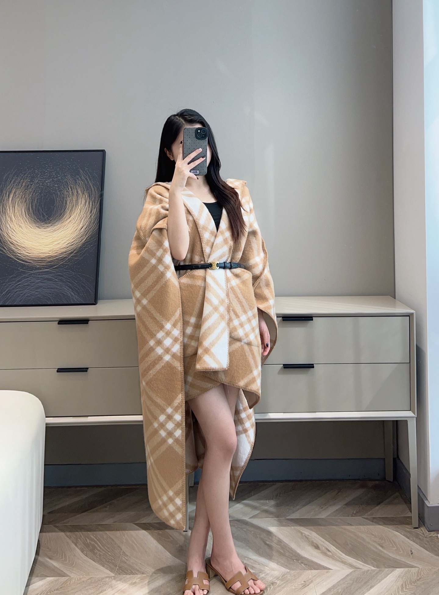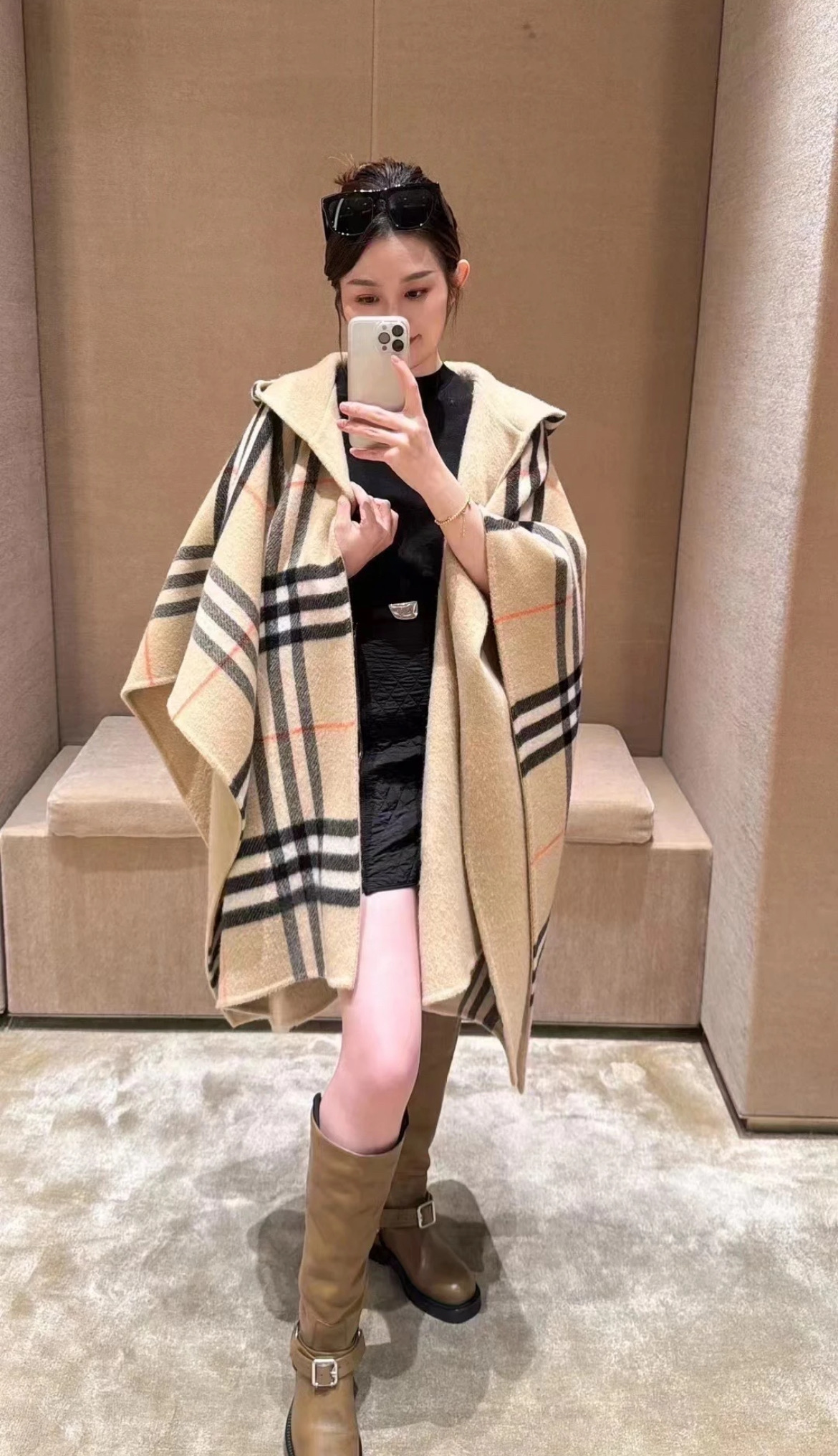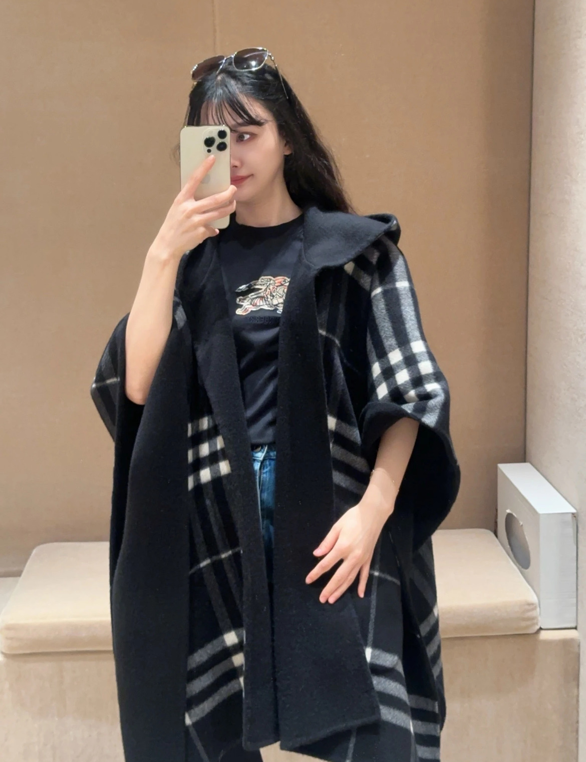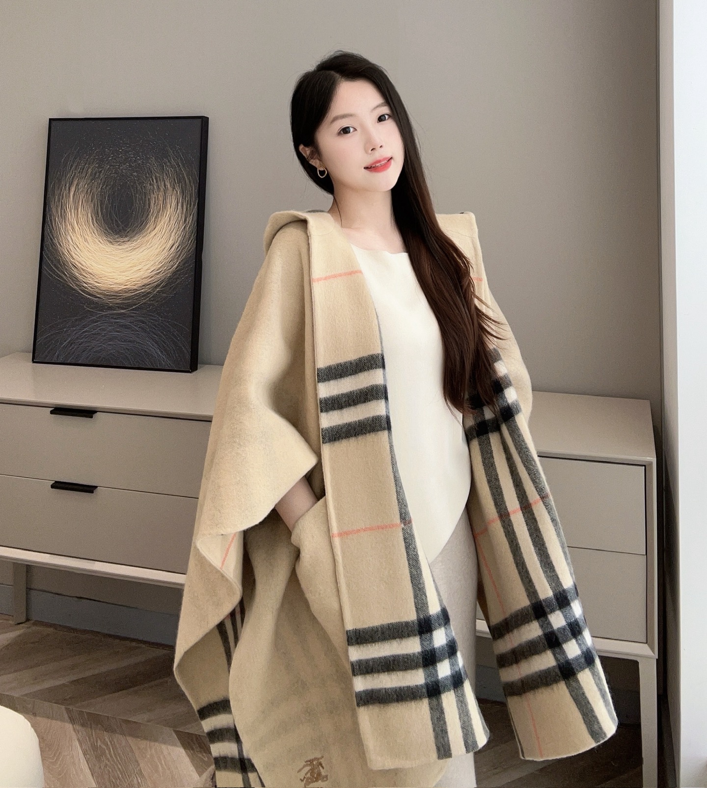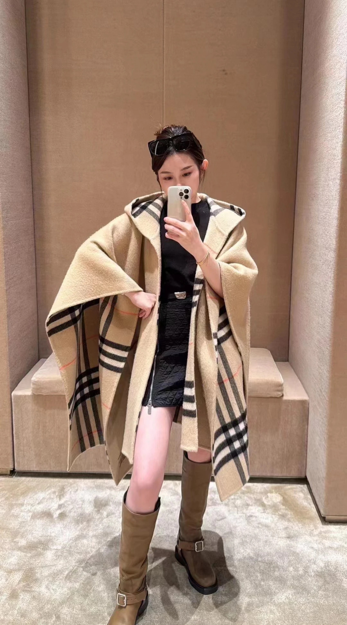 𝐁𝐮𝐫𝐛𝐞𝐫𝐫* 最新 2025《双面连帽斗篷》奶茶色格纹