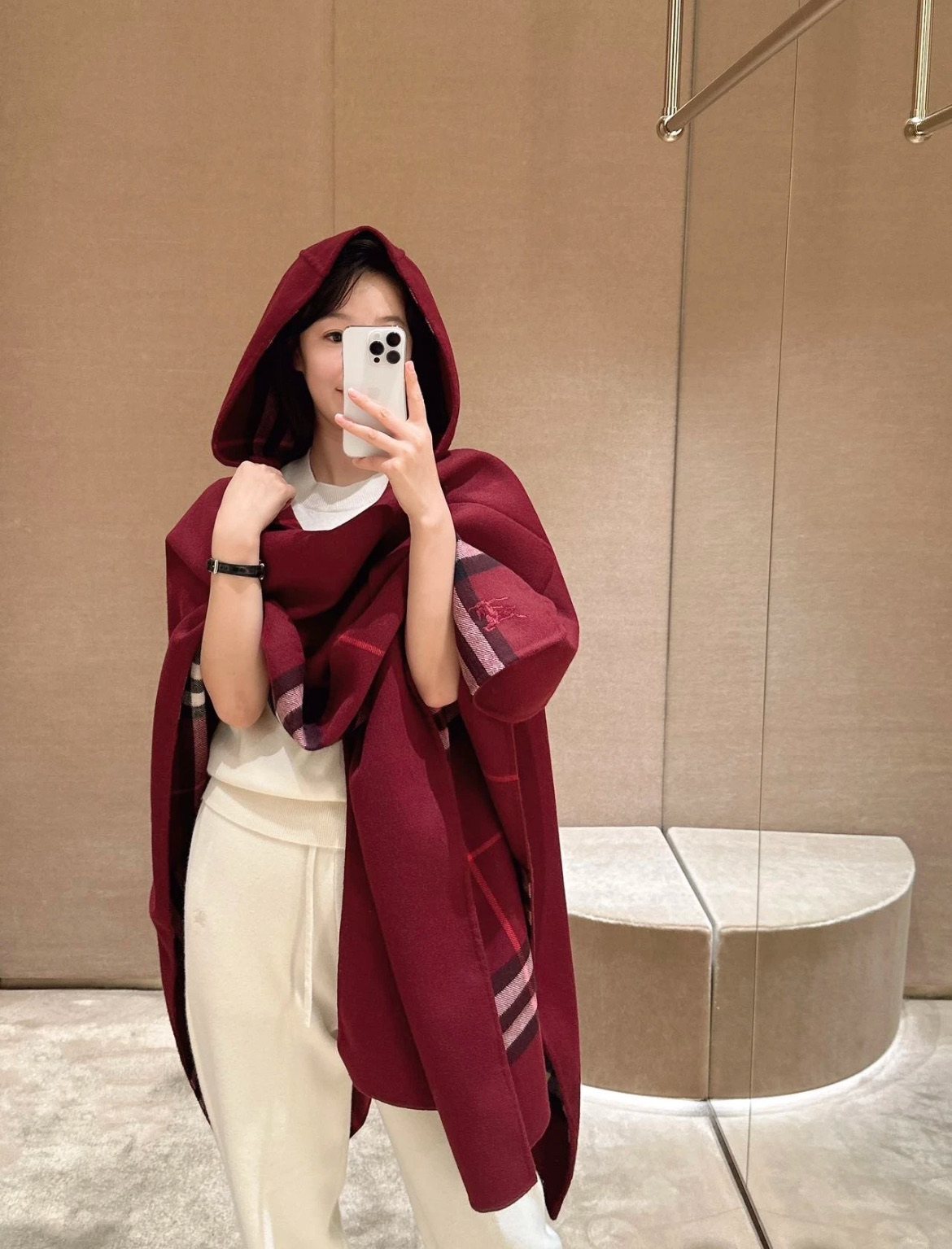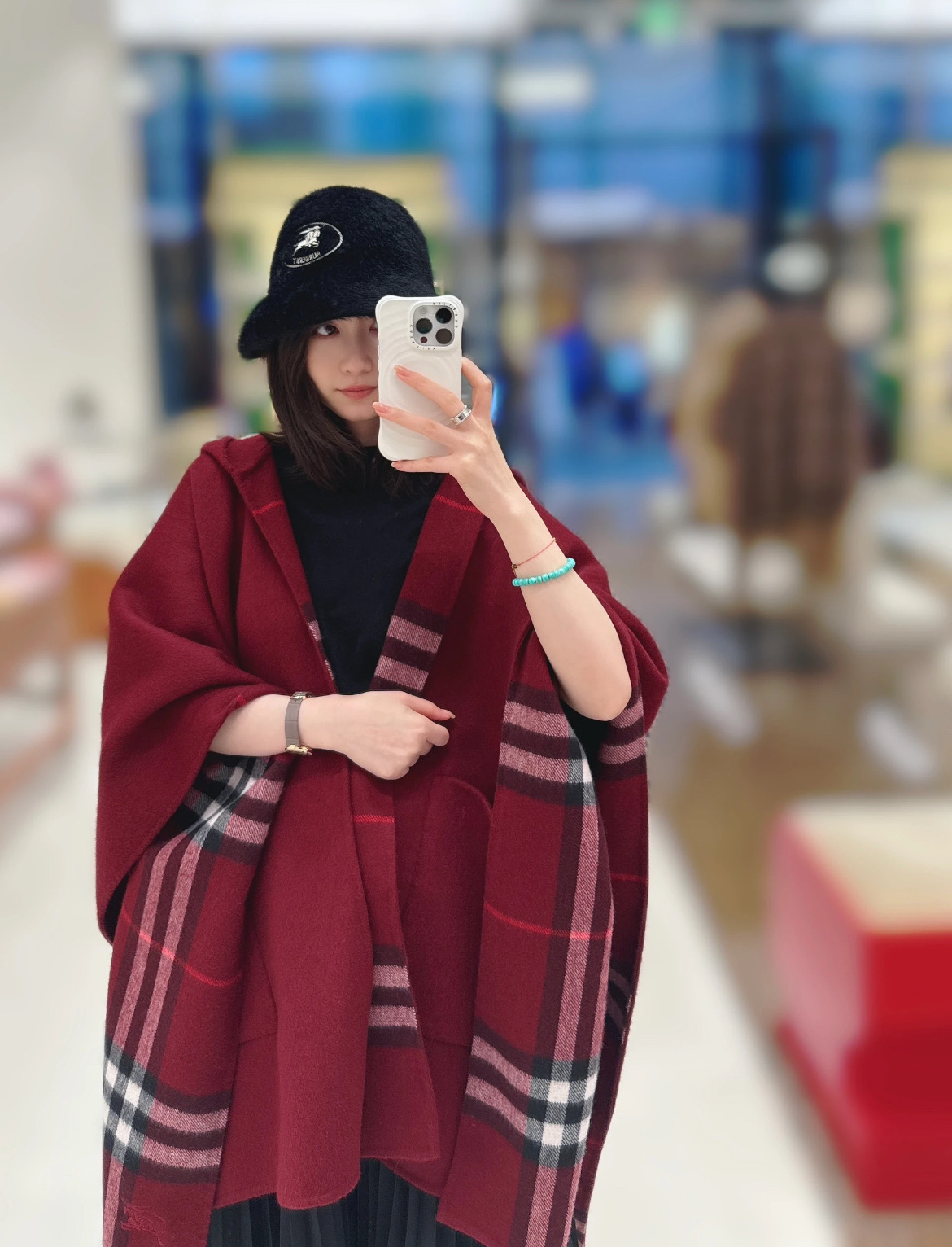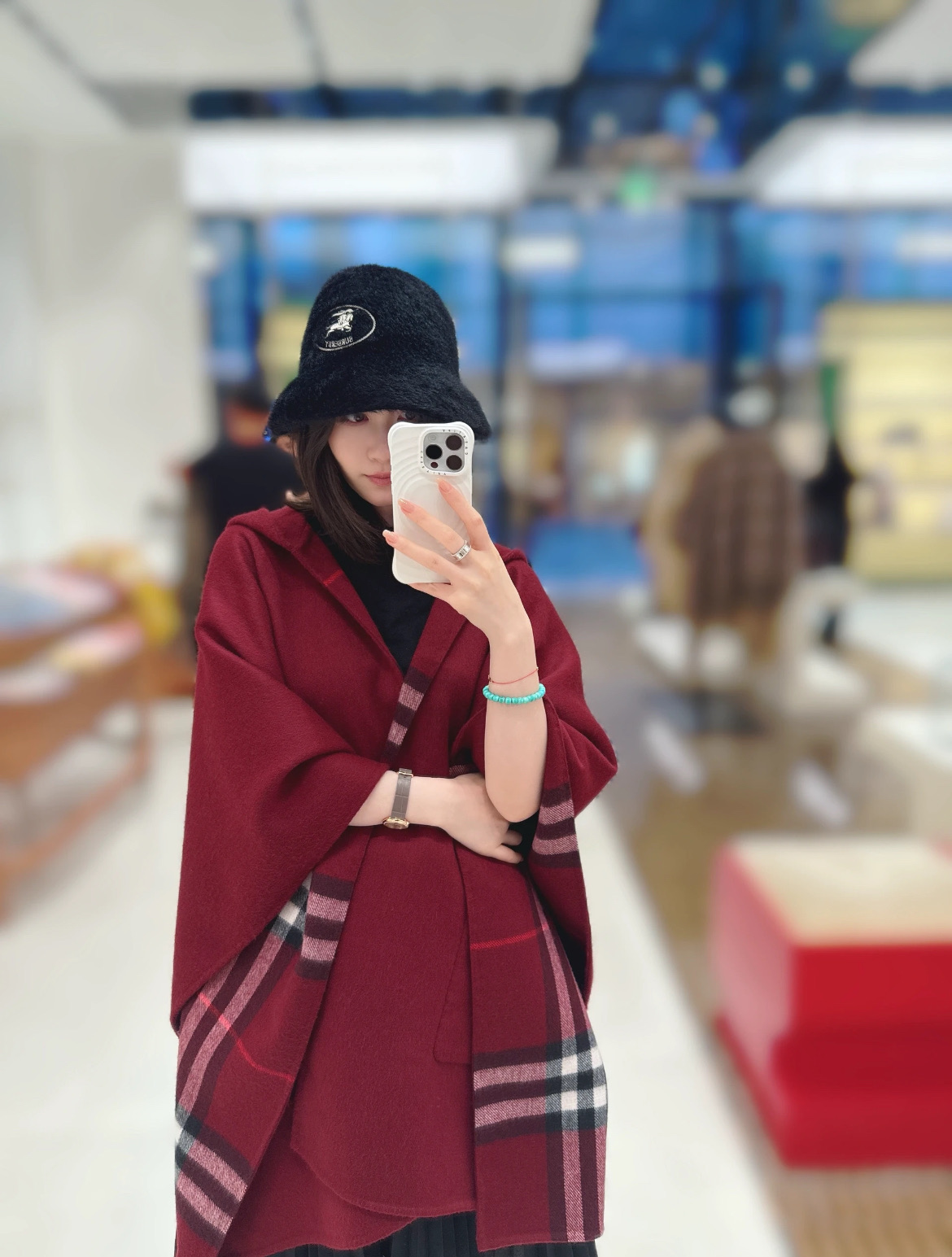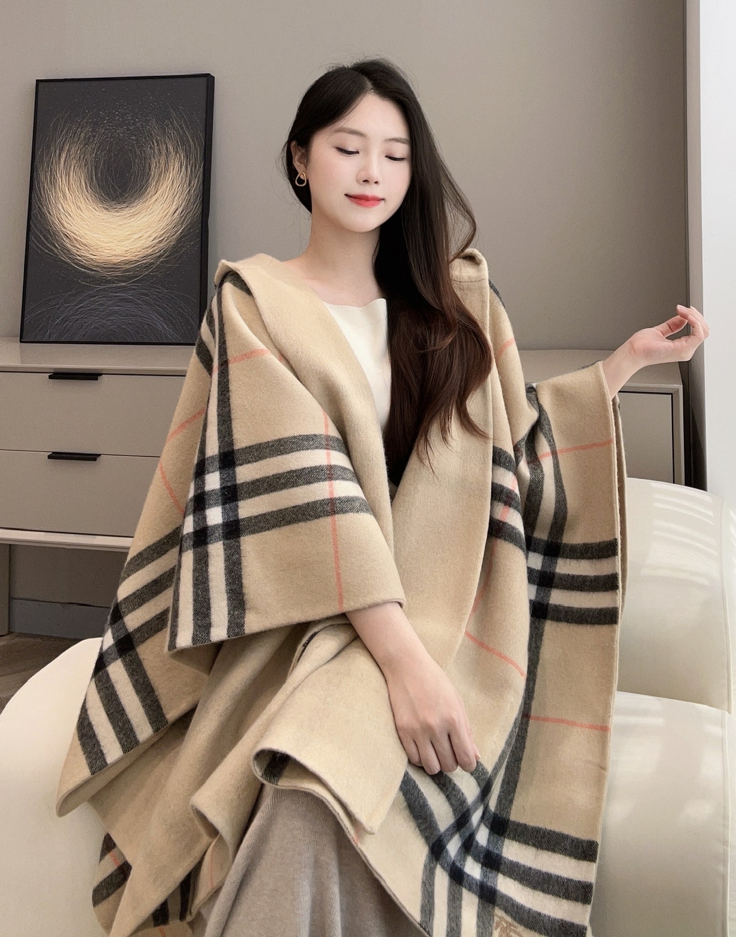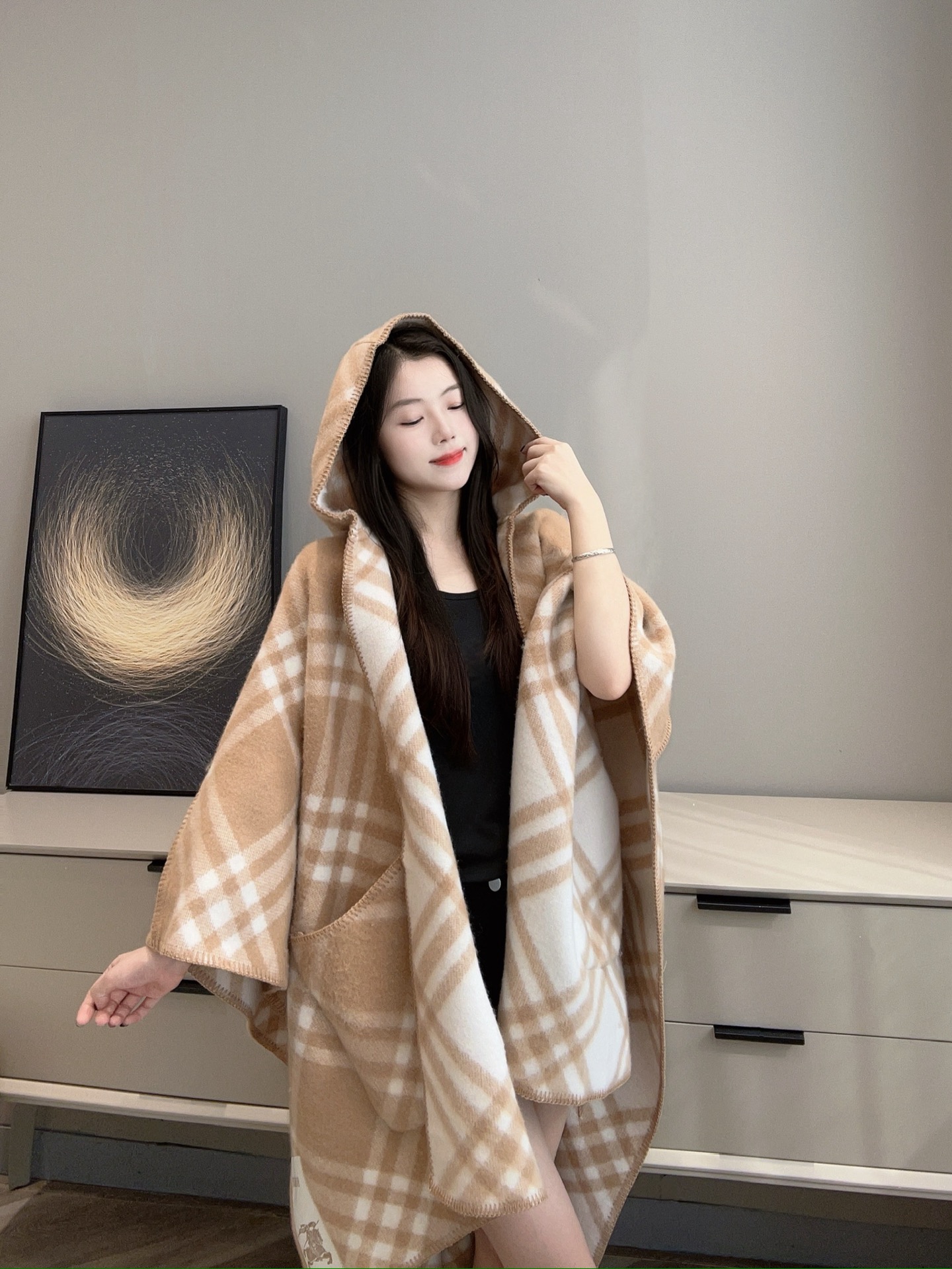 𝐁𝐮𝐫𝐛𝐞𝐫𝐫* 最新 2025《双面连帽斗篷》奶茶色格纹