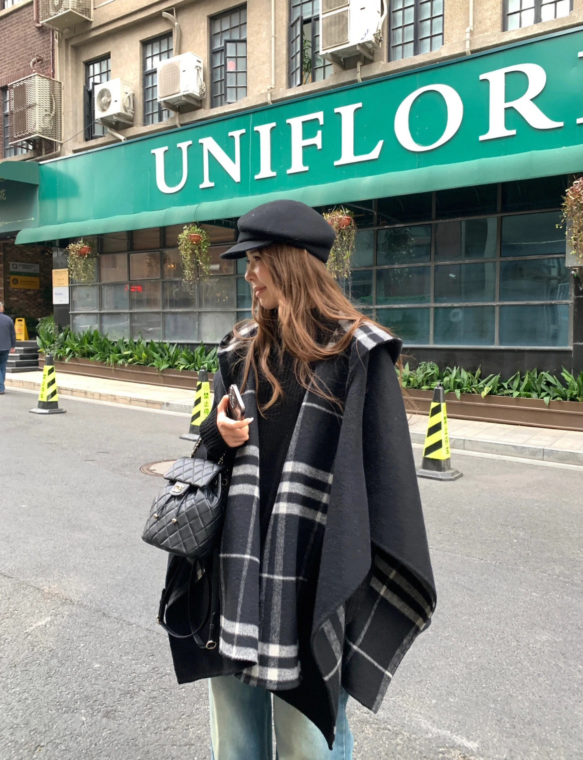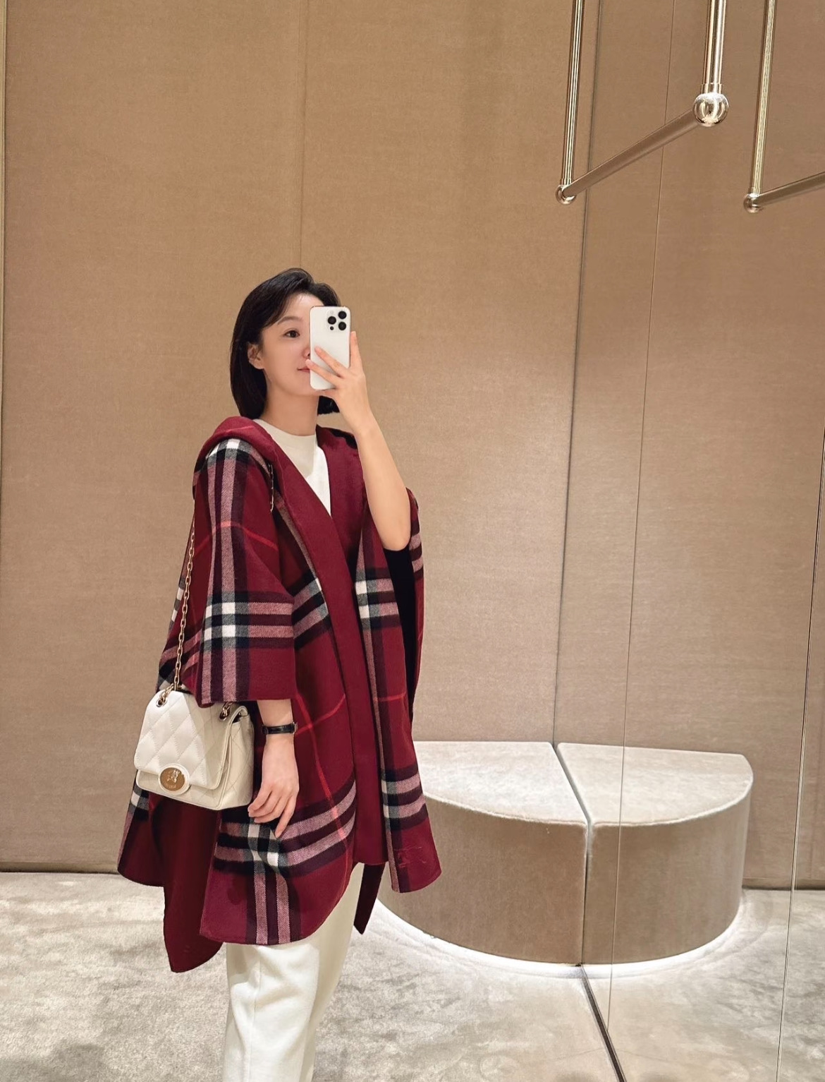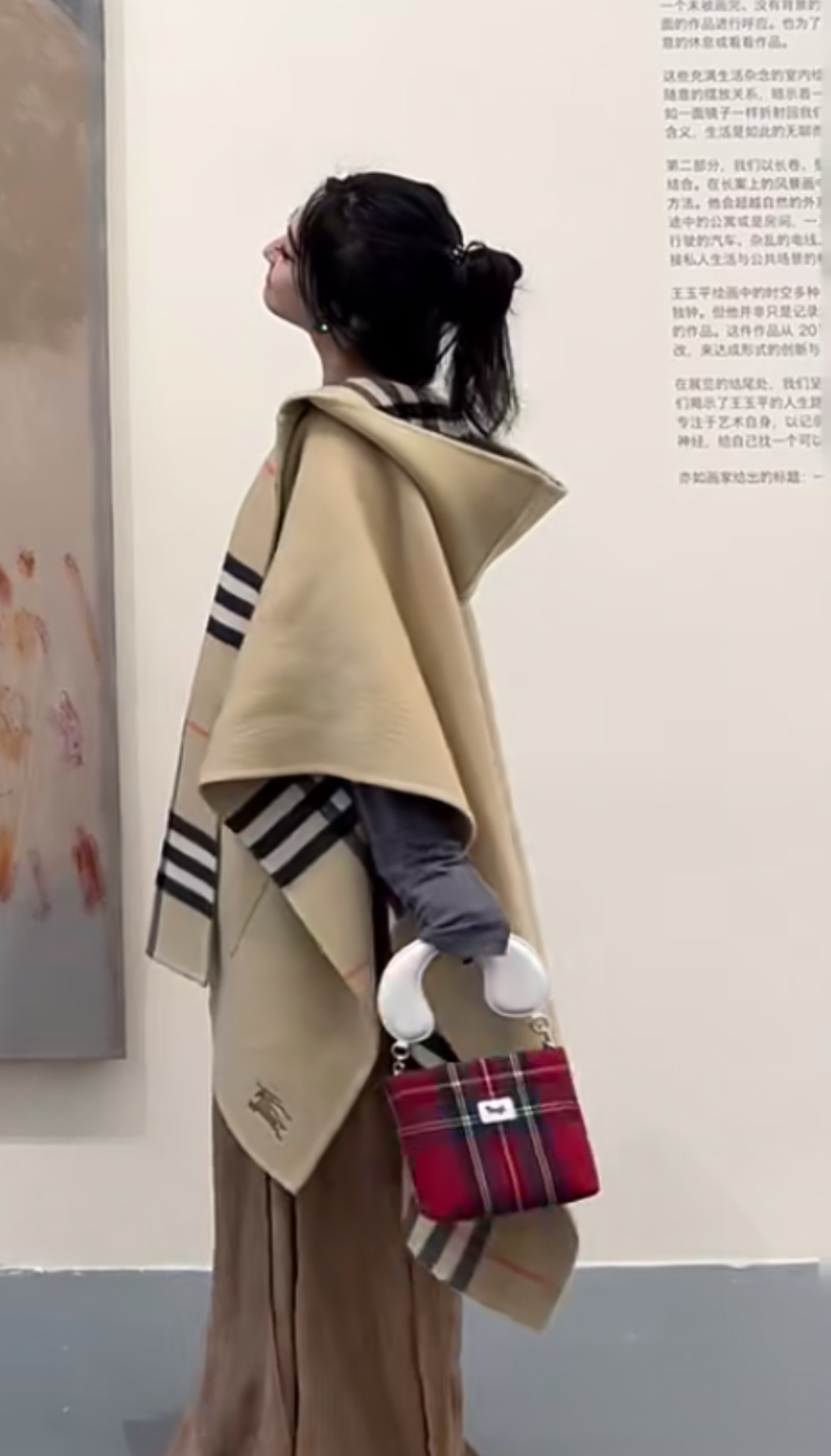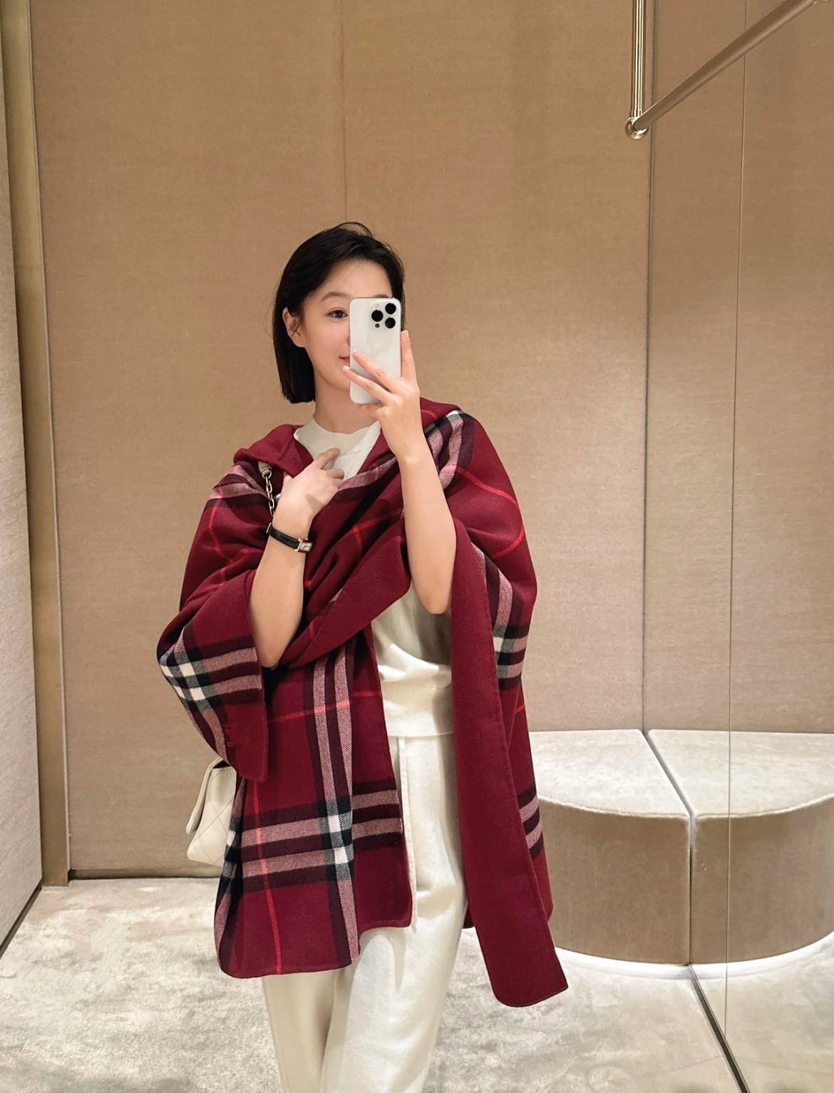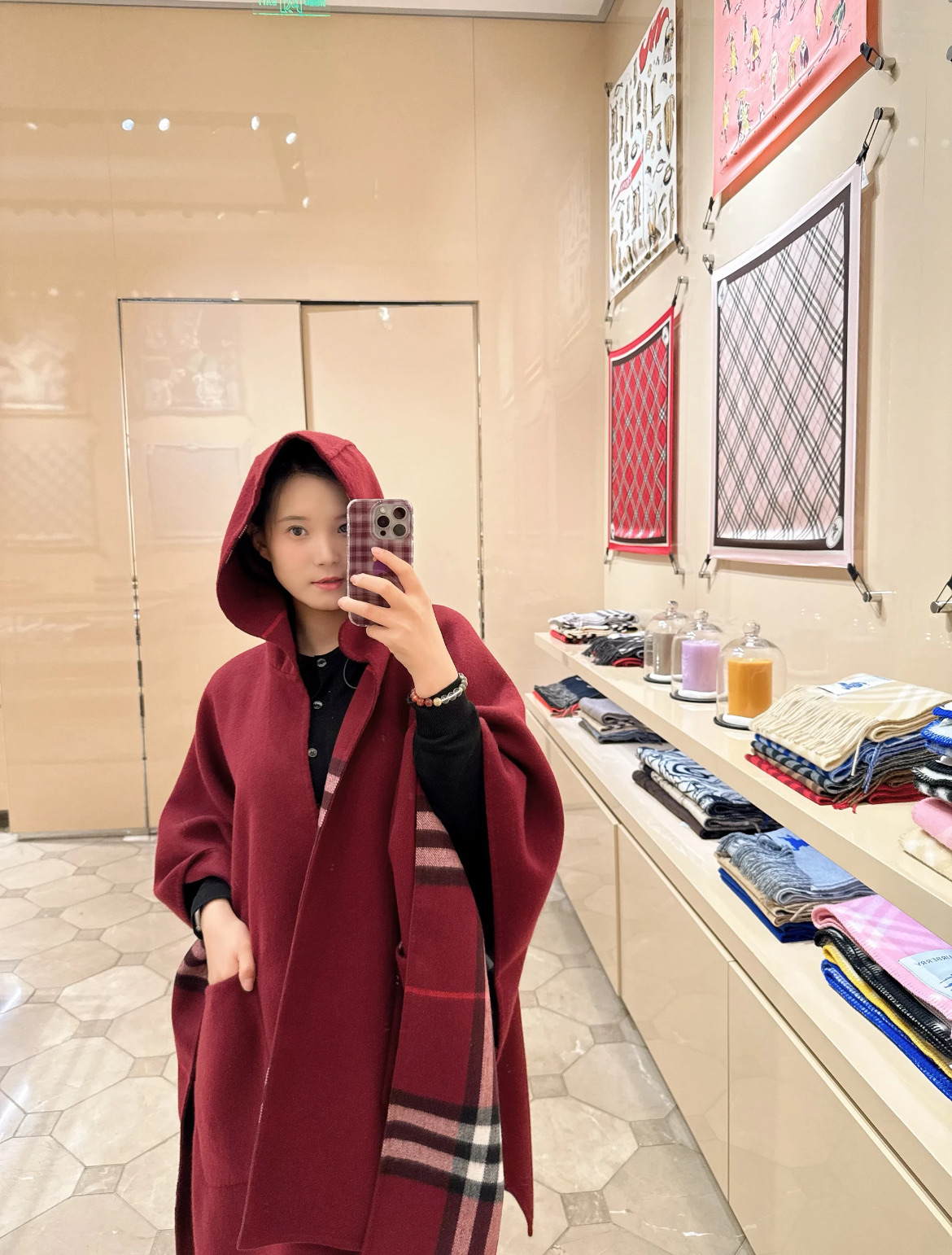 𝐁𝐮𝐫𝐛𝐞𝐫𝐫* 最新 2025《双面连帽斗篷》奶茶色格纹