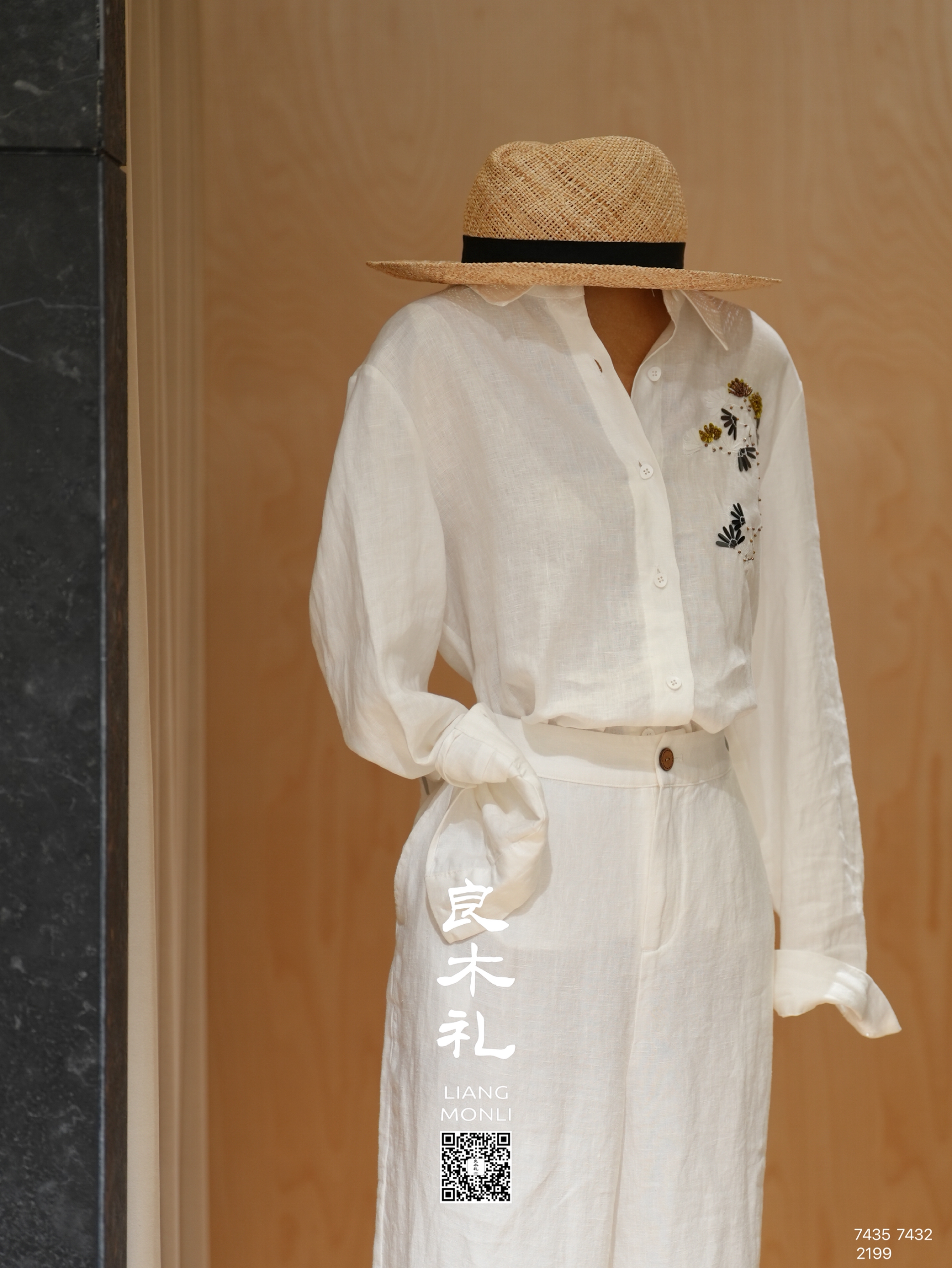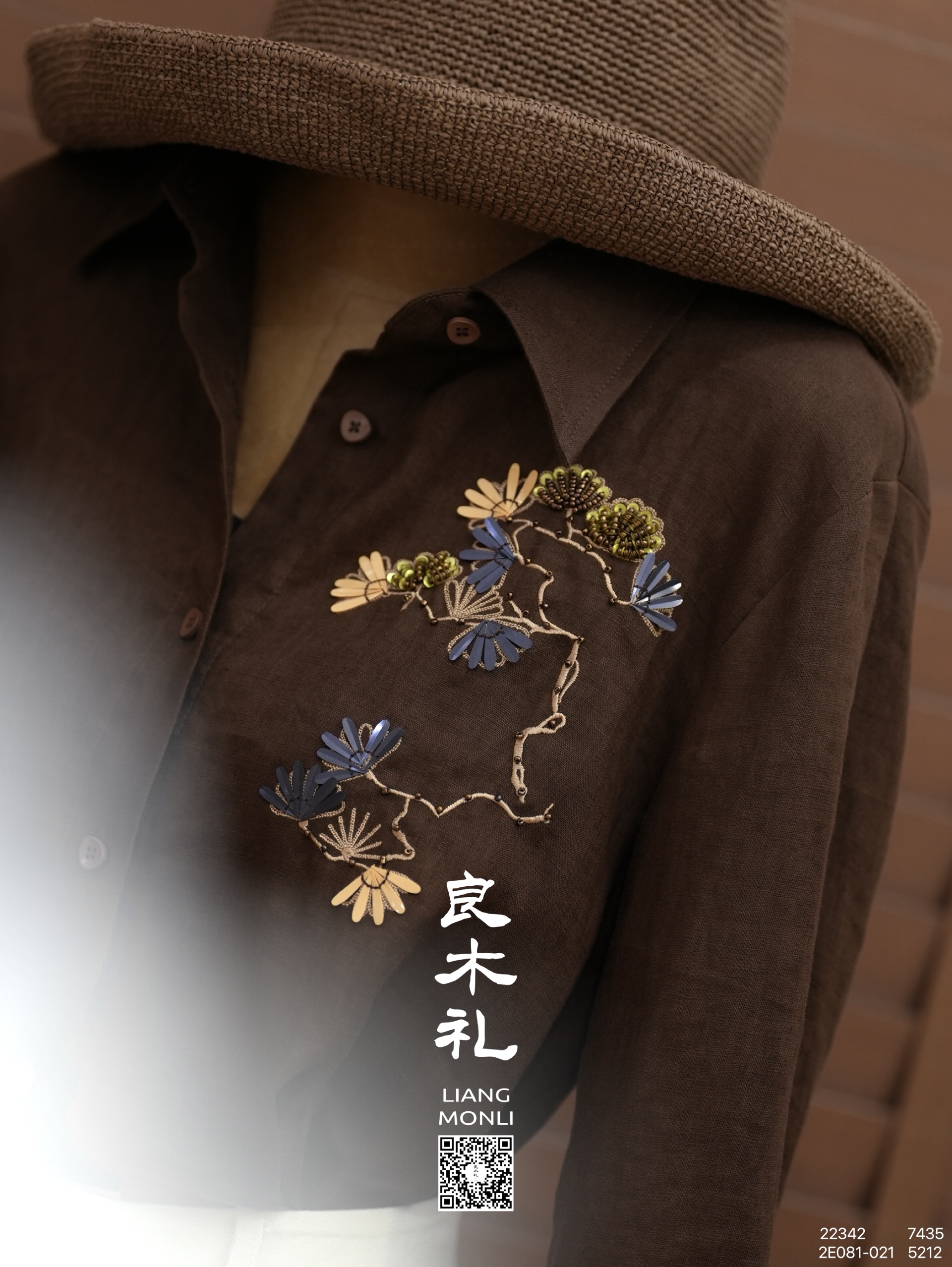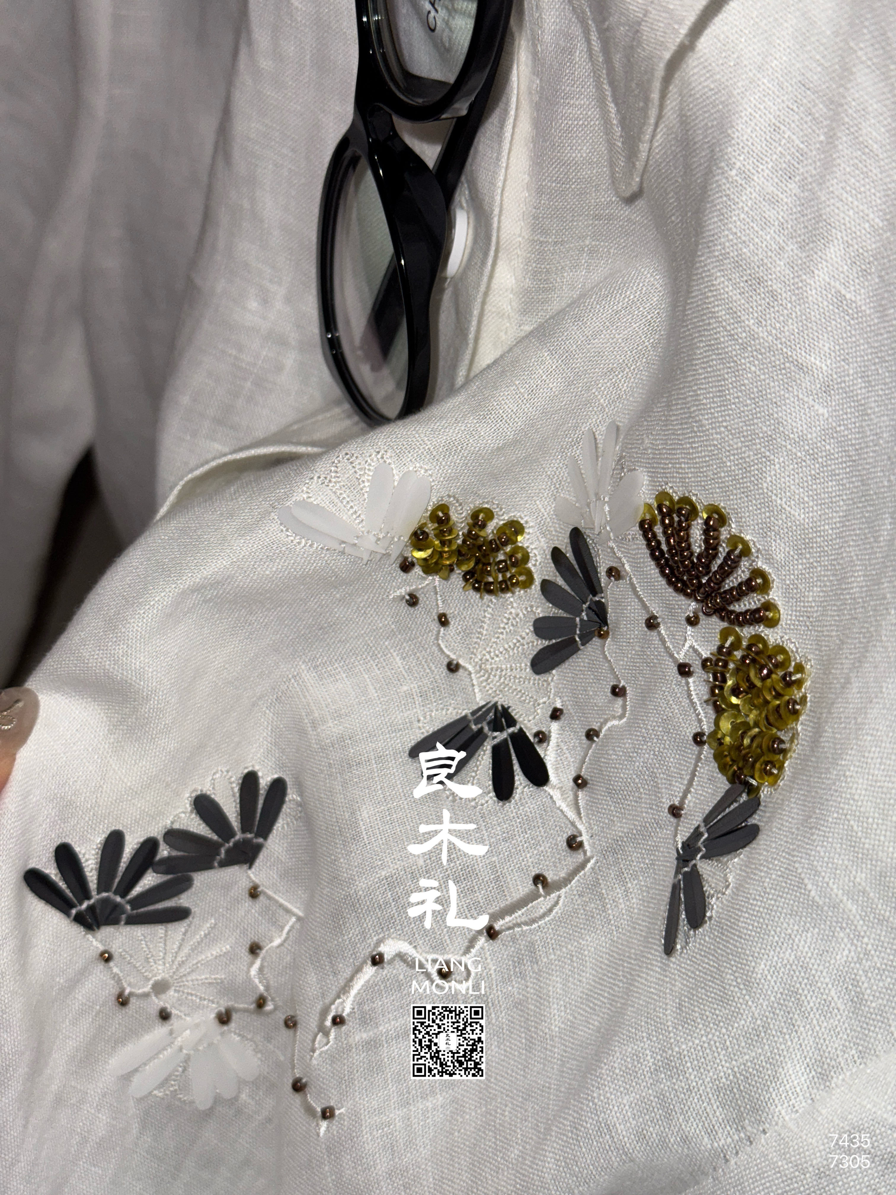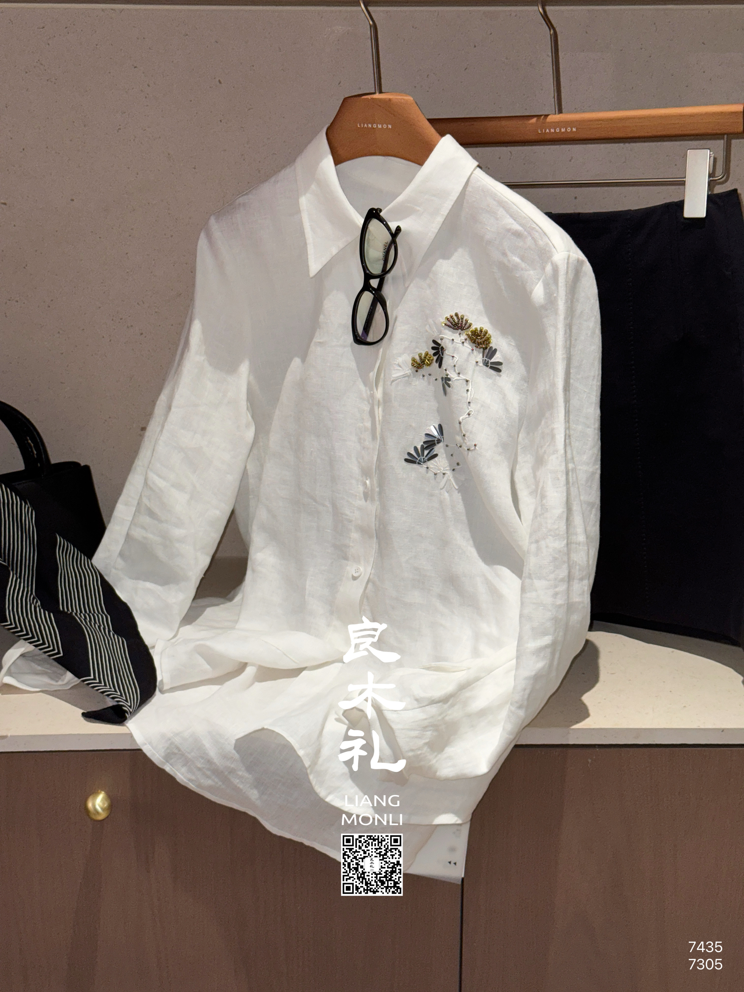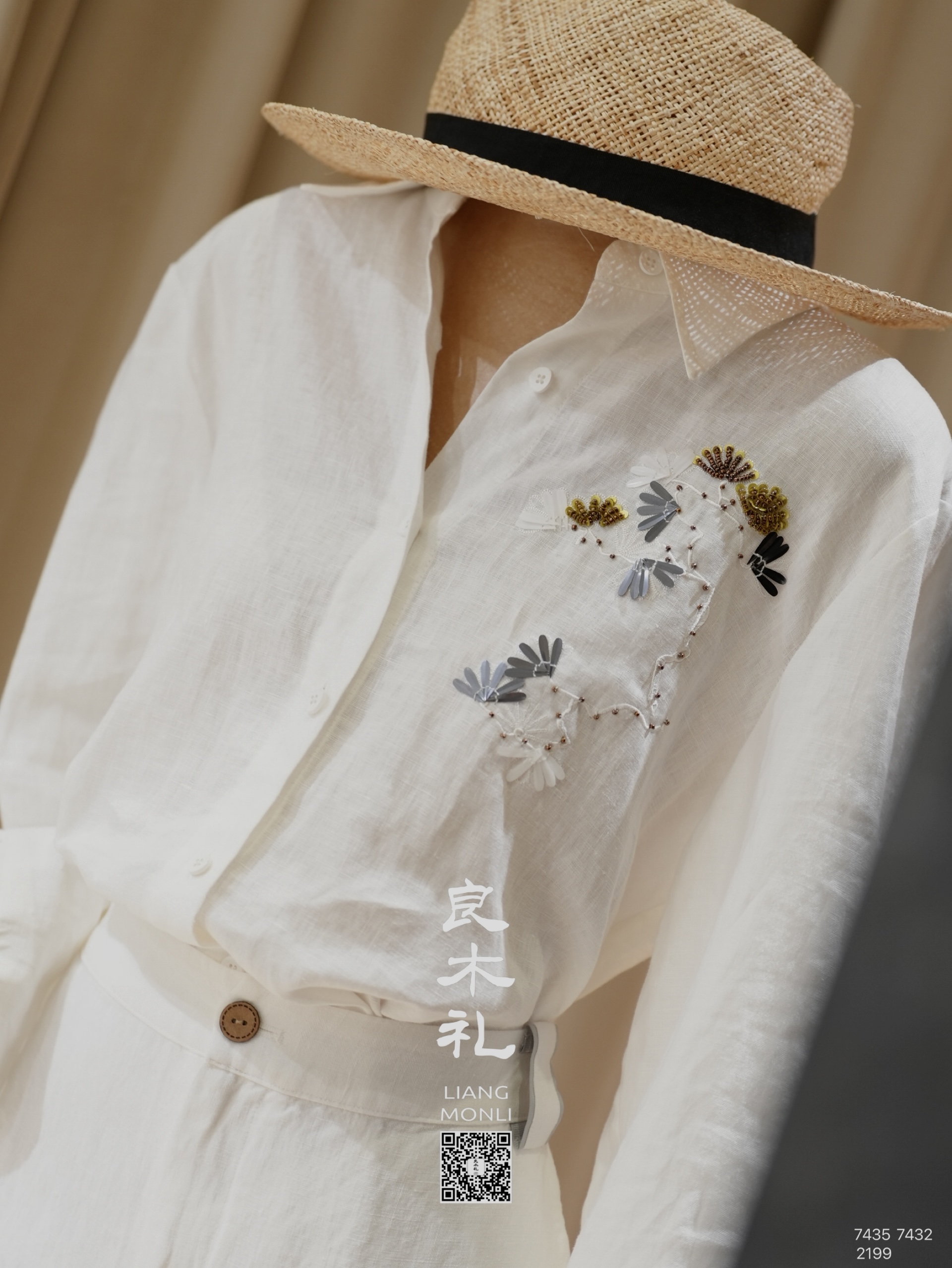 【预售7天】良木礼亚麻钉珠衬衫(X7435)