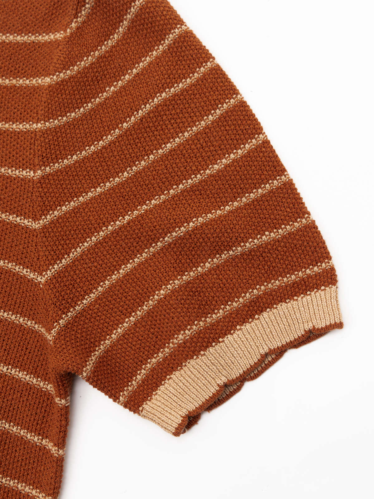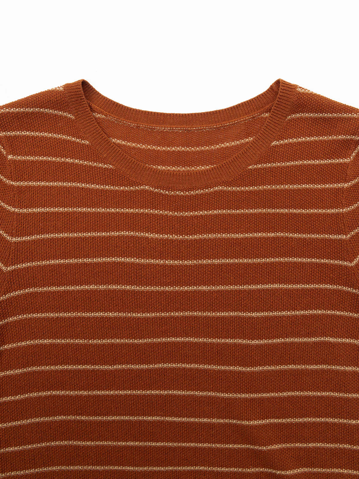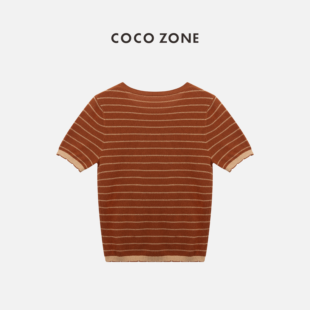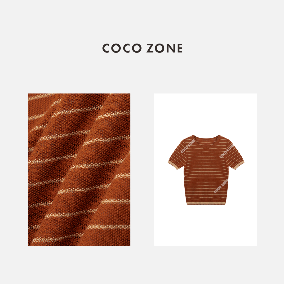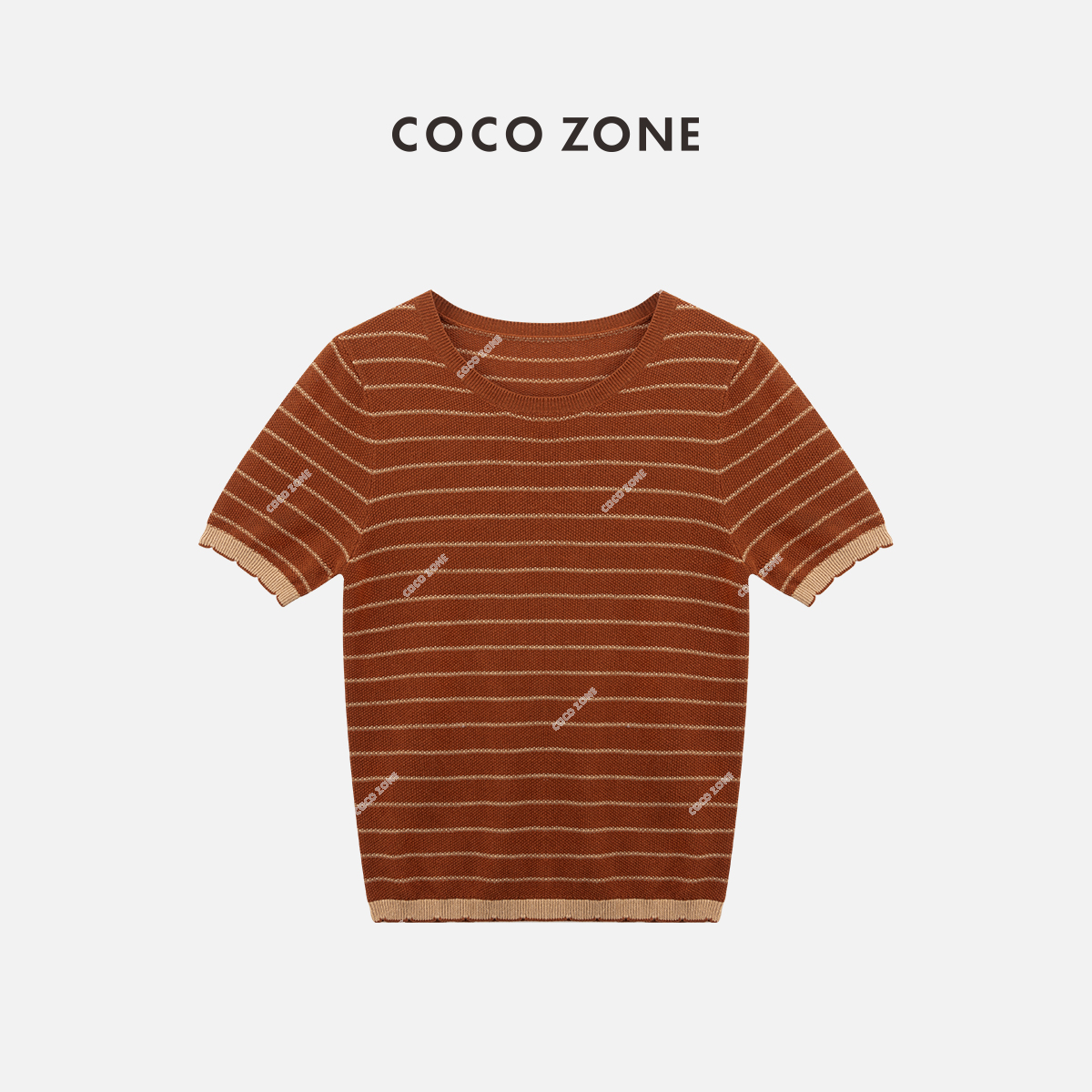 COCO ZONE”大地色“莱塞尔天丝亚麻条纹短袖针织衫休闲百搭圆领上衣CC2B0850