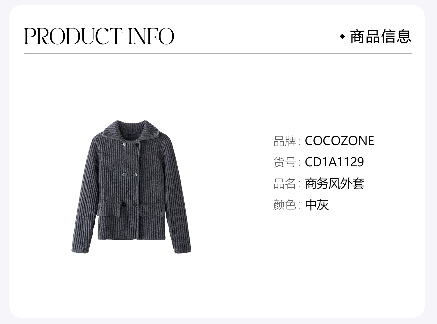 COCO ZONE 刘一一“双排扣”100羊毛竖条纹双排扣毛织上衣 CD2A1931