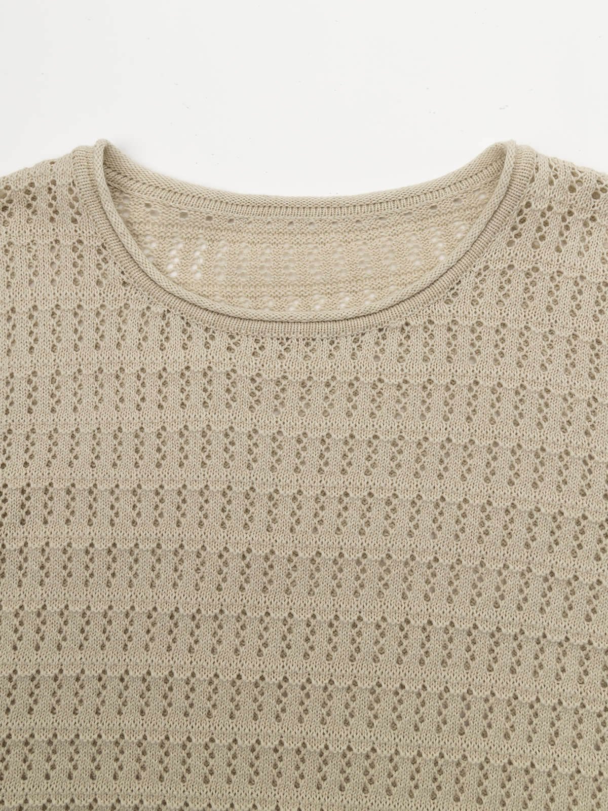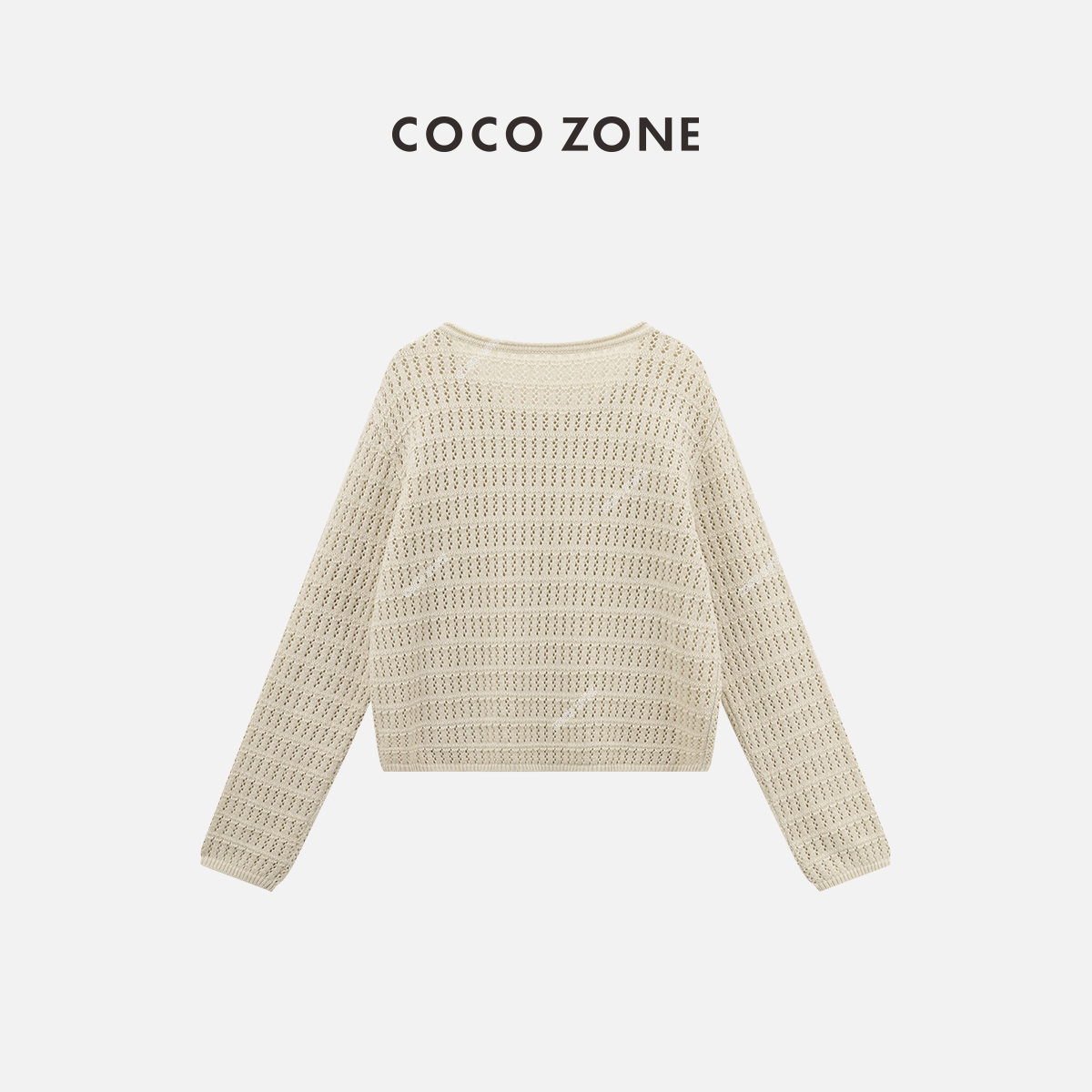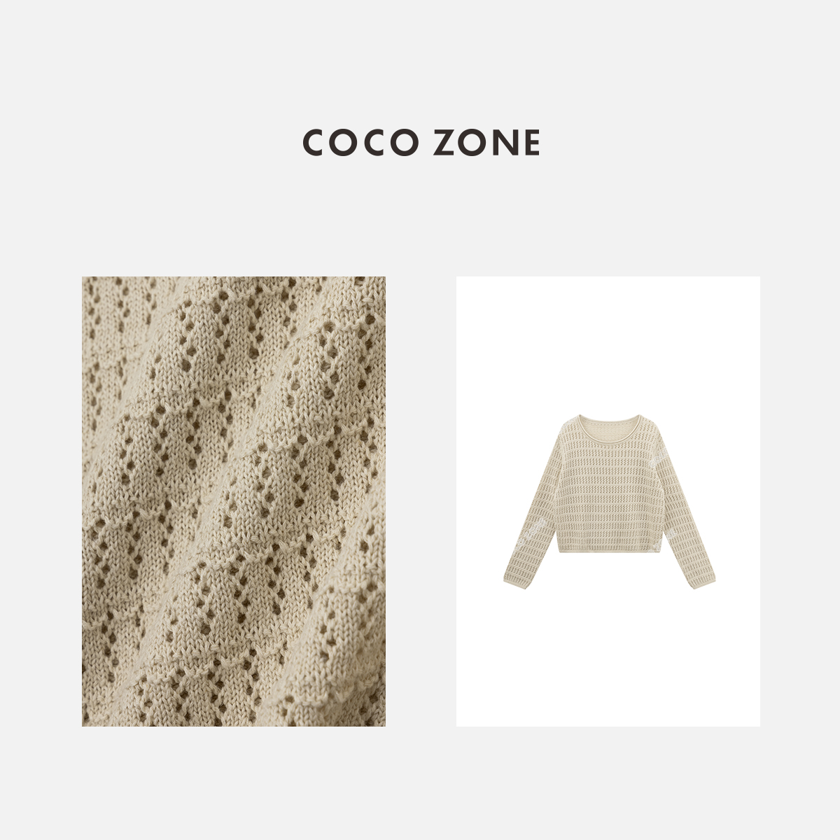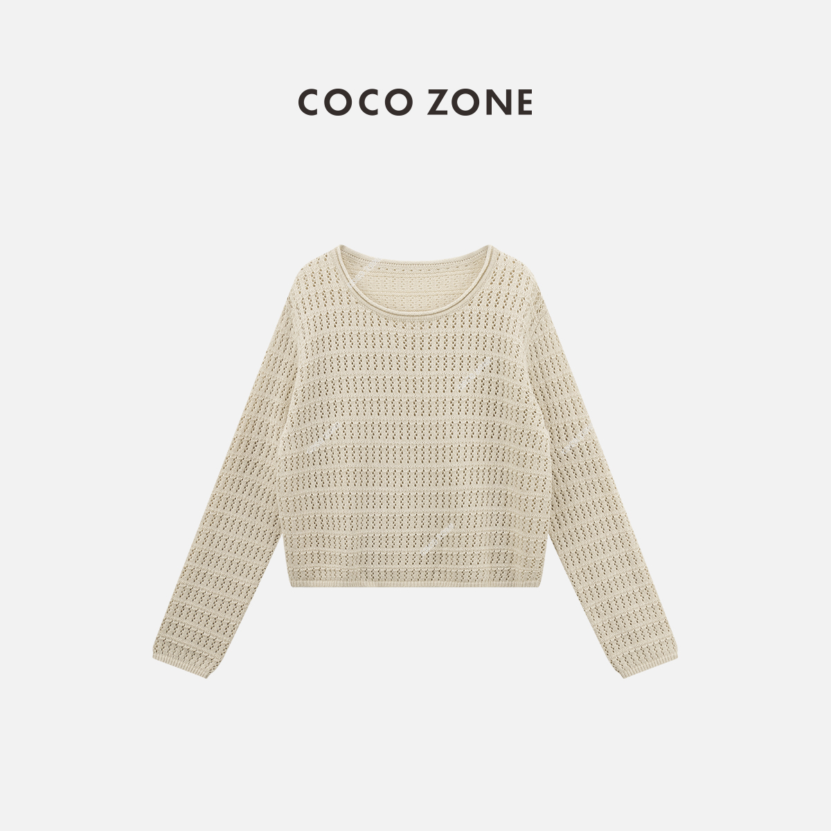 COCO ZONE "杏仁茶”时尚镂空圆领长袖针织衫纯色显瘦上衣CC1B1149