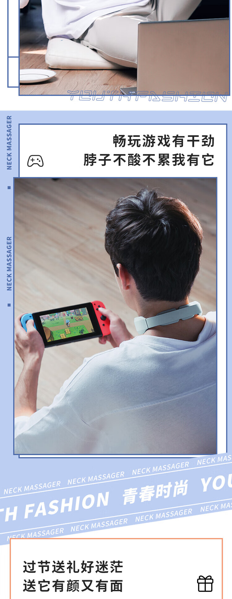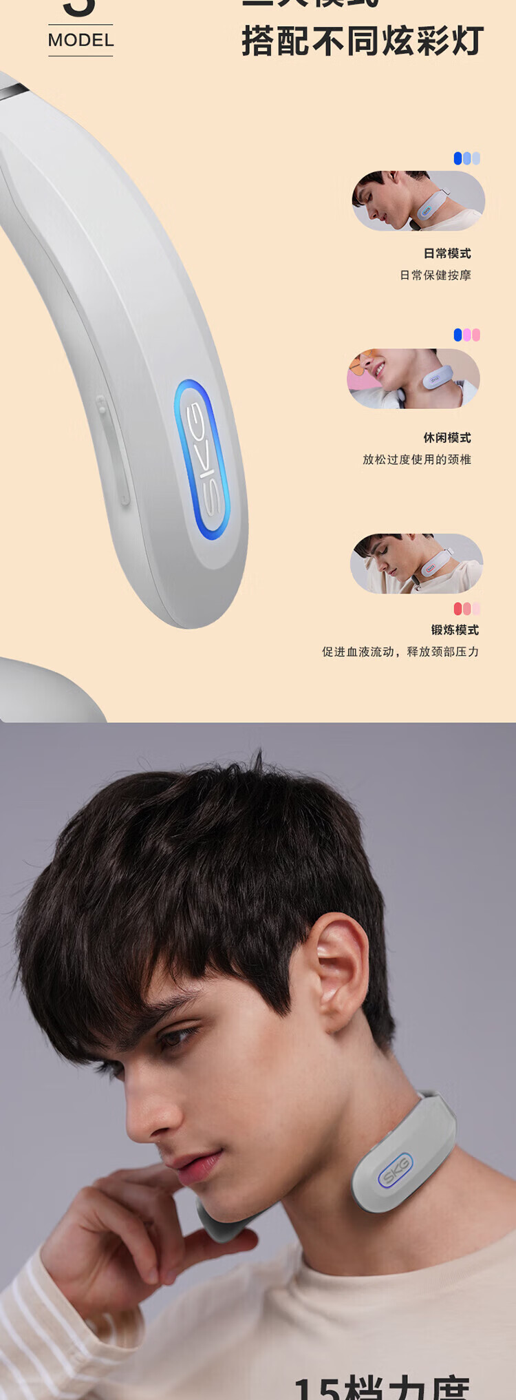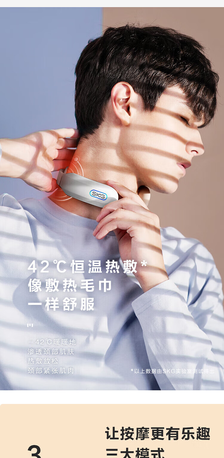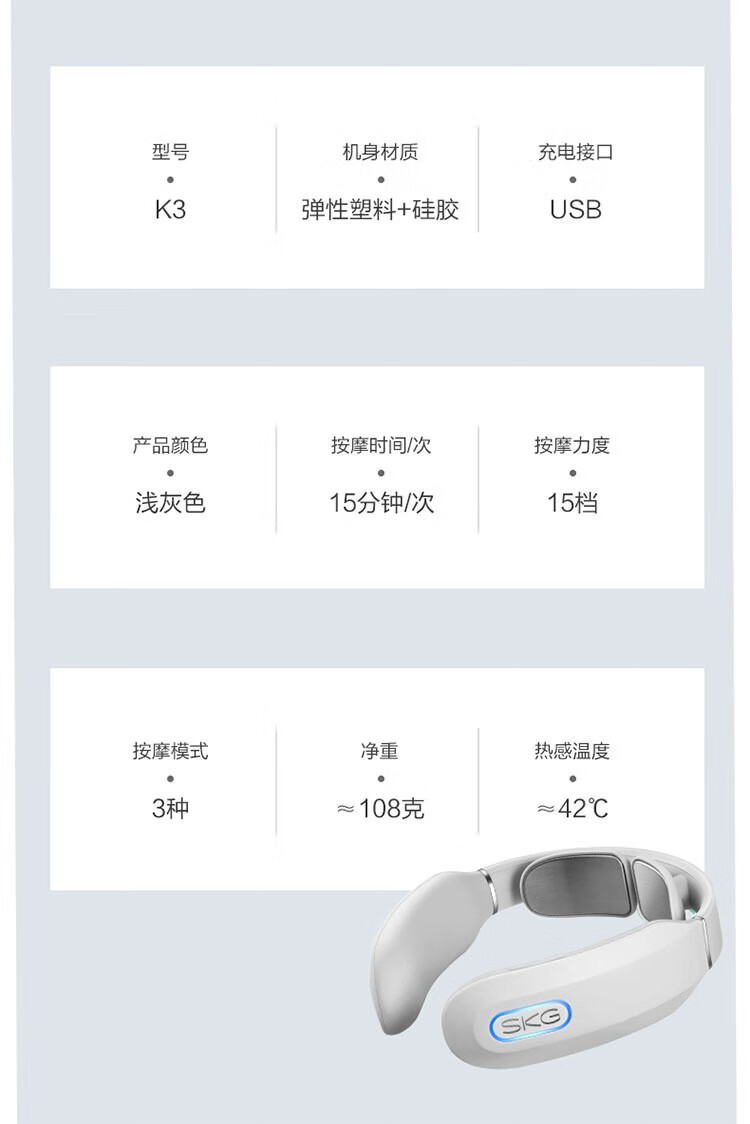 SKG 颈椎按摩器K3 颈部按摩仪富贵包热敷 电磁脉冲U型枕 浅灰色