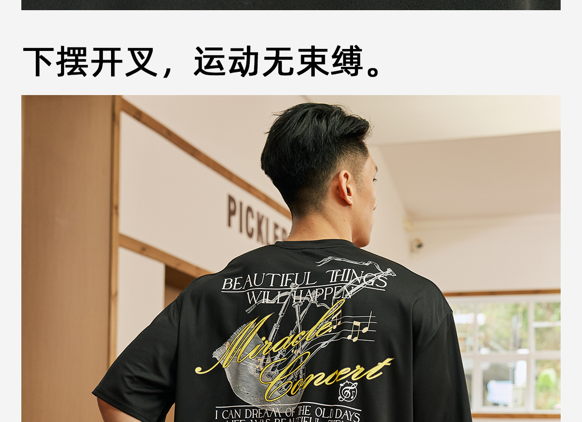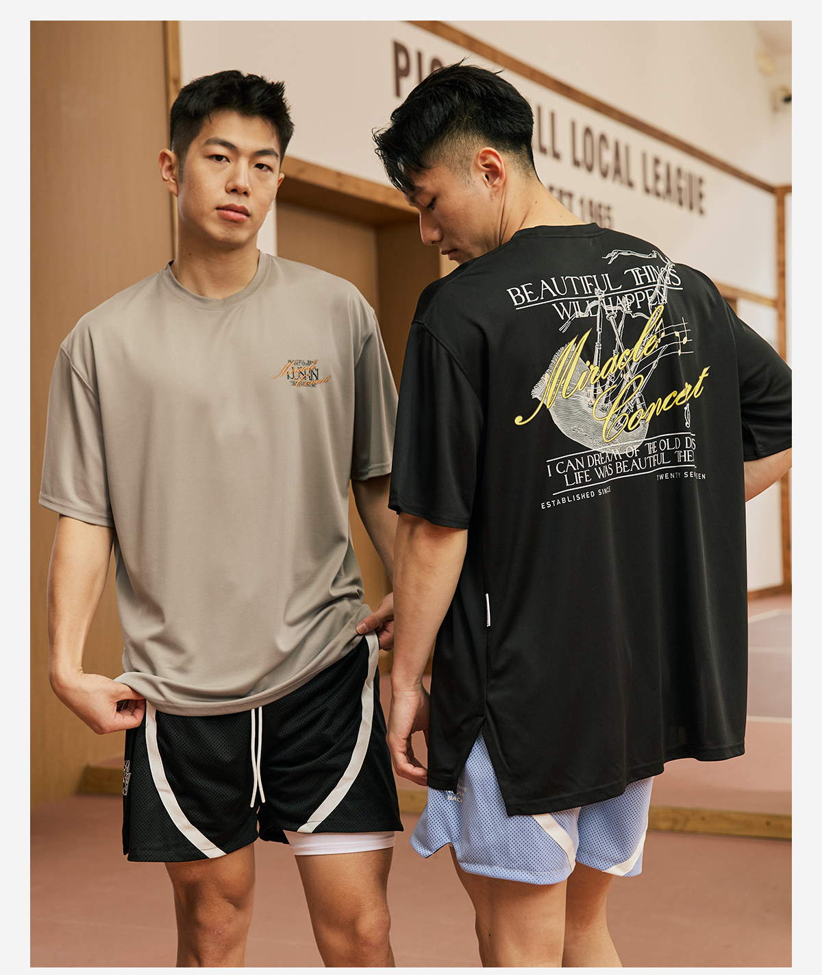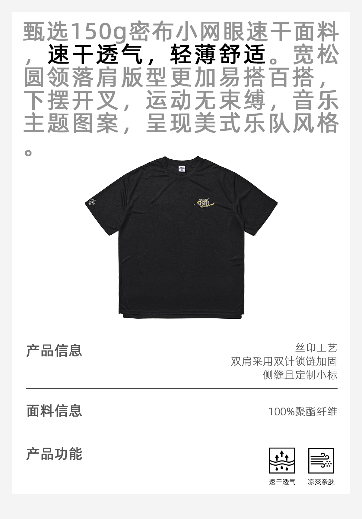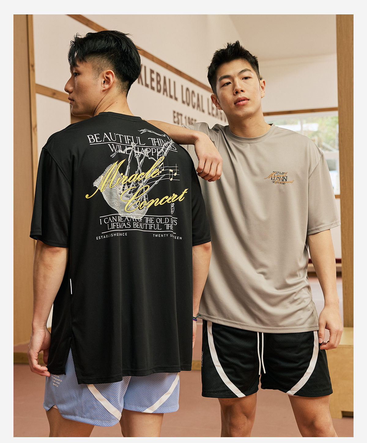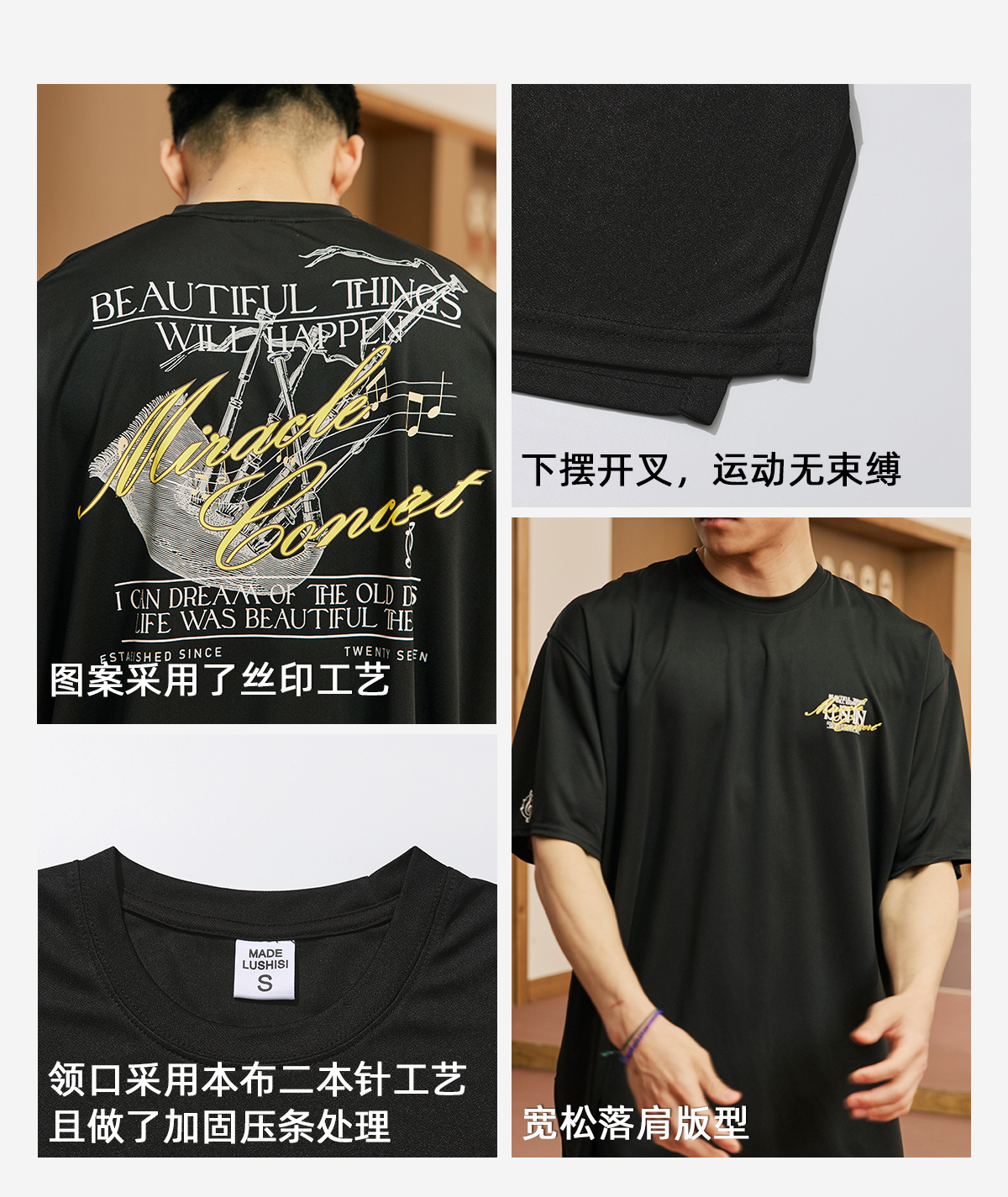 LUSHISI奇迹音乐会主题印花宽松圆领休闲美式街头篮球速干短袖t恤