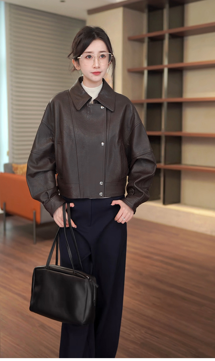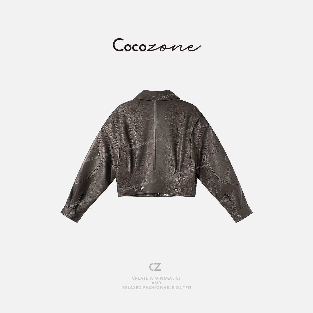 COCO ZONE 刘一一 飞行员皮衣100羊皮革质感美式复古感皮衣外套CD2A1531