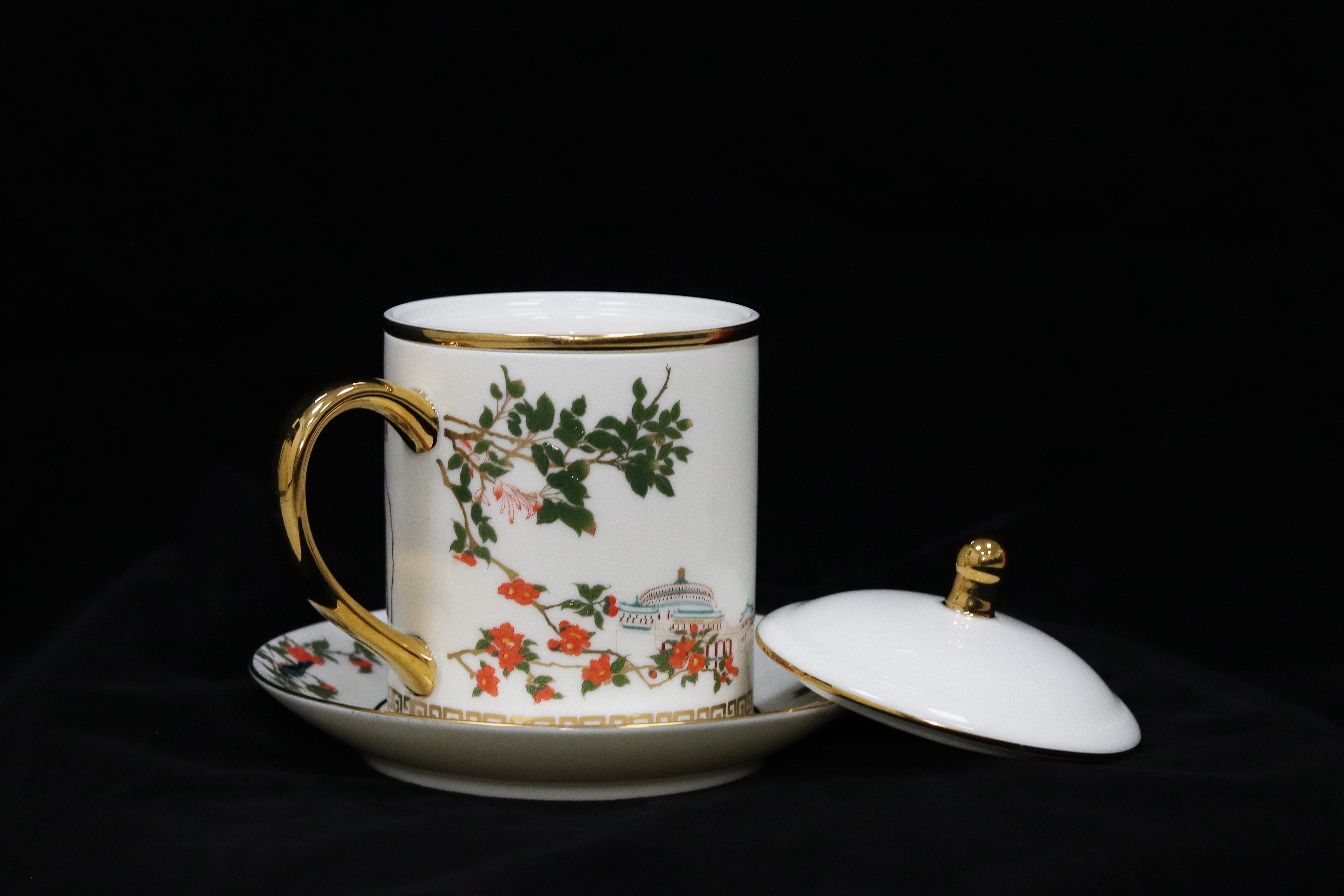 该产品采用精致的陶瓷工艺,通过艺术化的手法,将重庆的标志性建筑和自然景观巧妙地呈现在杯体上。