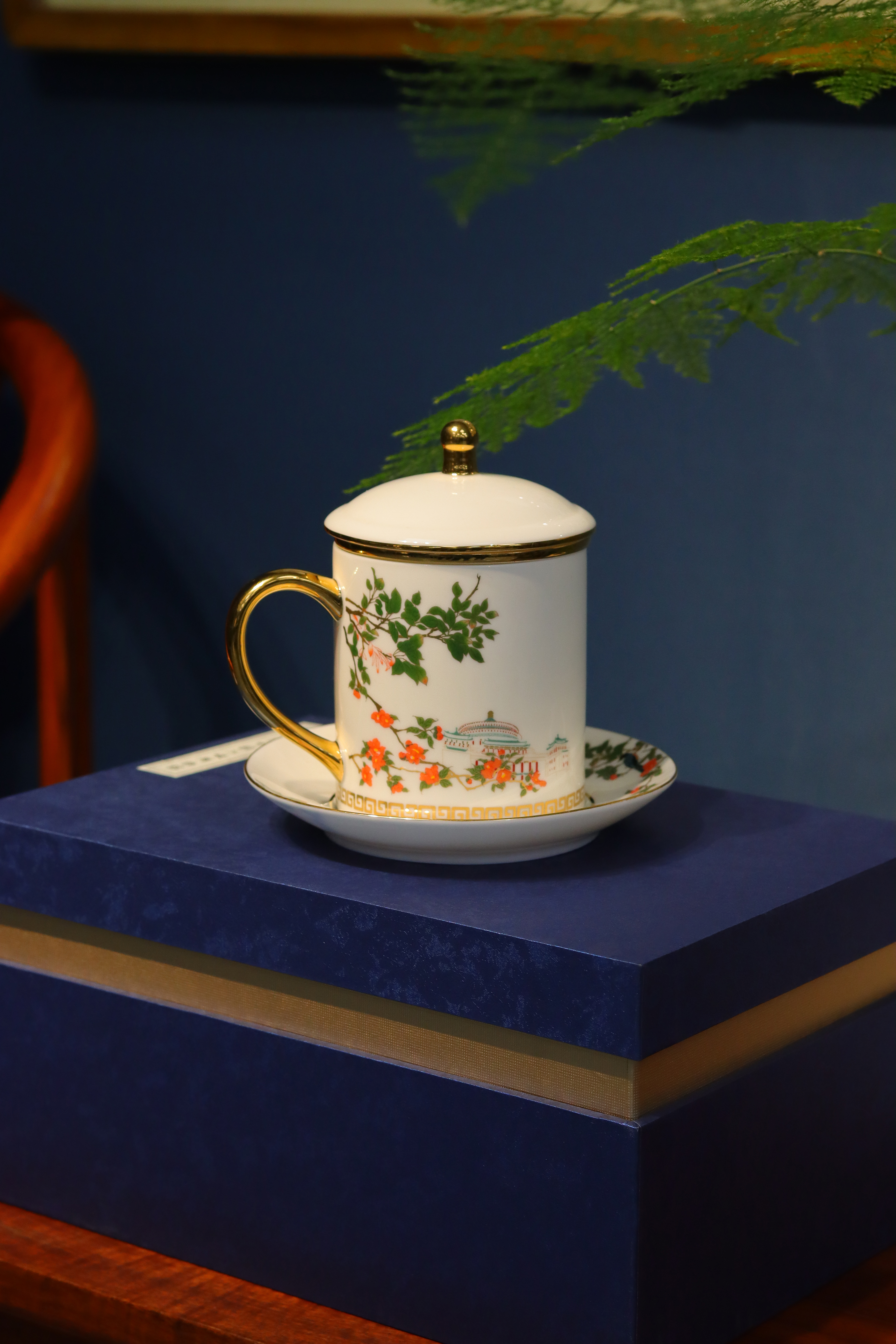 《山城记忆办公杯》设计采用重庆市标志建筑物--重庆市人民大礼堂,以及重庆市市树--黄桷树、重庆市市花--山茶花为元素,融合了重庆城市特色与文化元素的办公杯。
