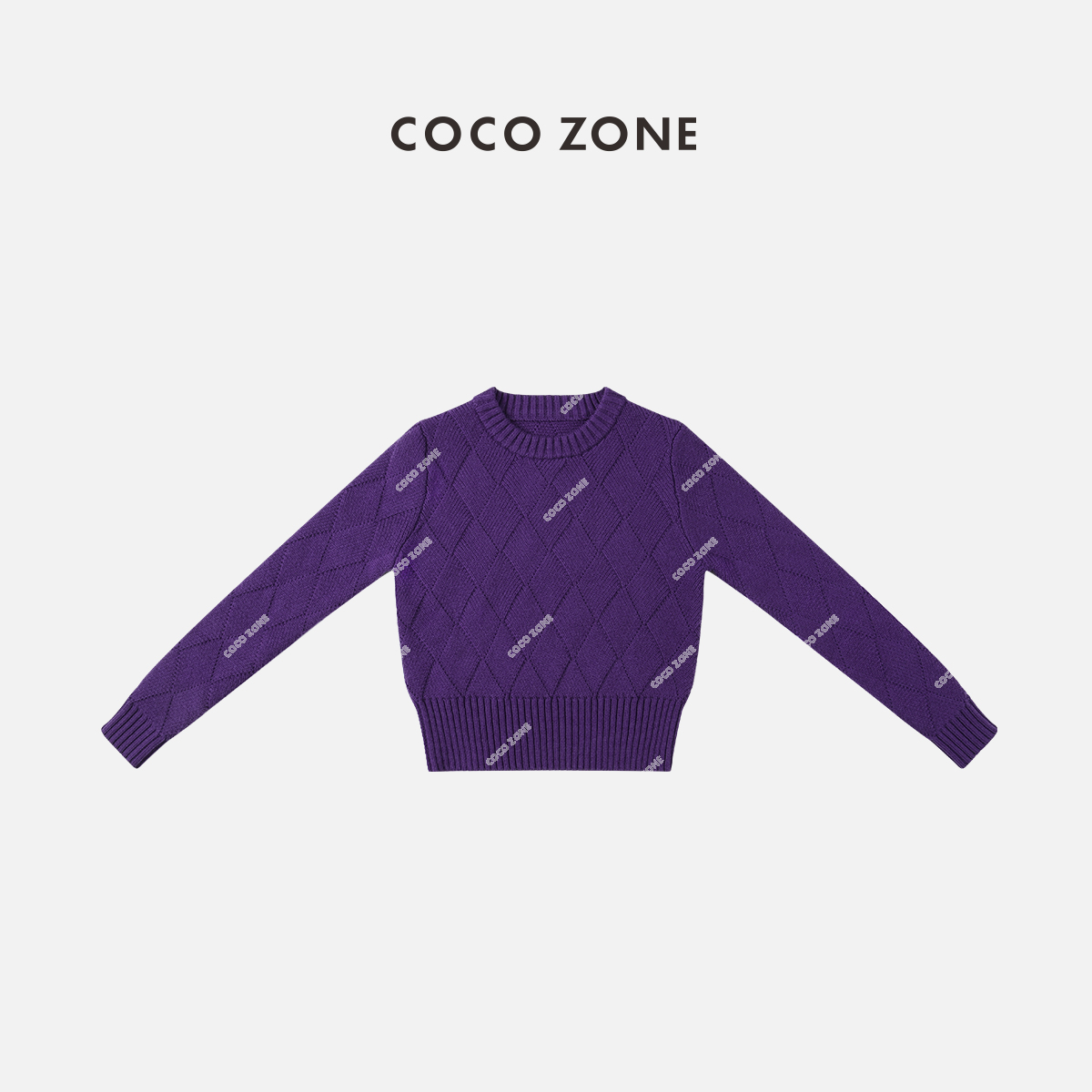 COCO ZONE“紫风铃”100%羊毛冬圆领纹打底针织衫23C30160