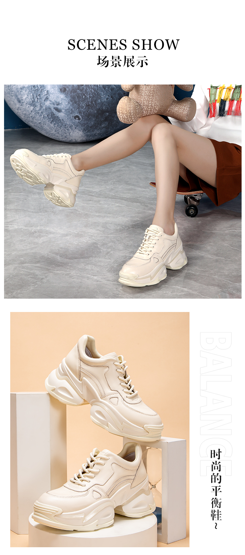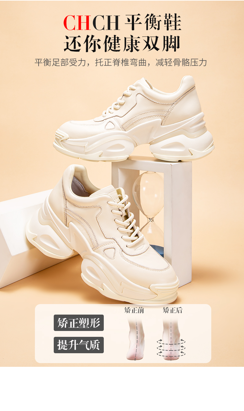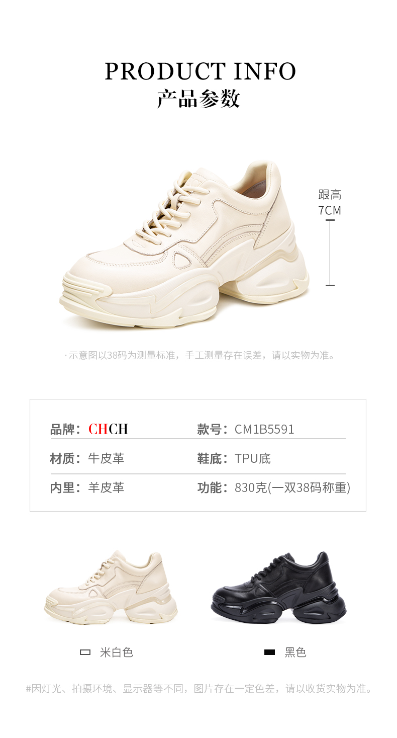 CHCH专柜同款时尚增高系带运动鞋老爹鞋真牛皮女鞋平衡鞋CN2B5091