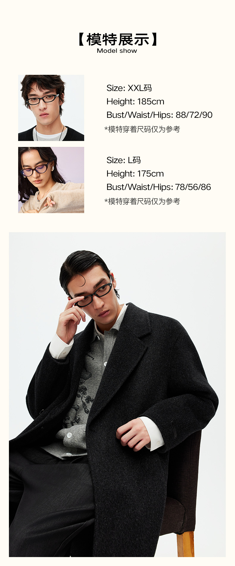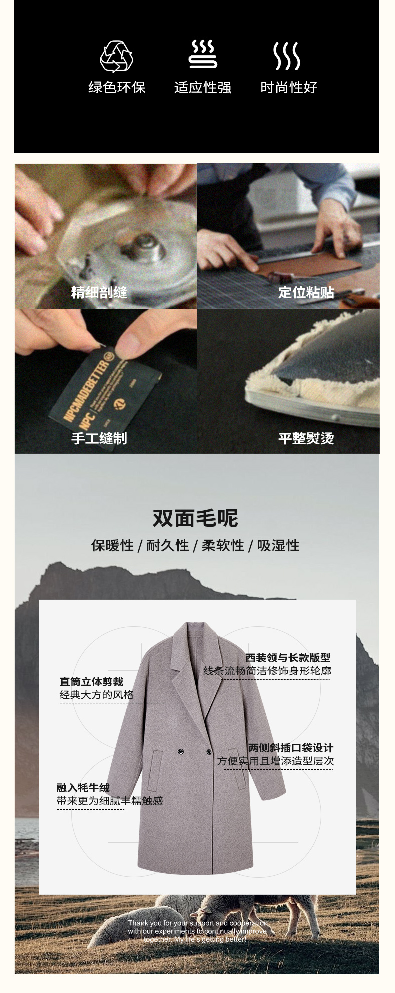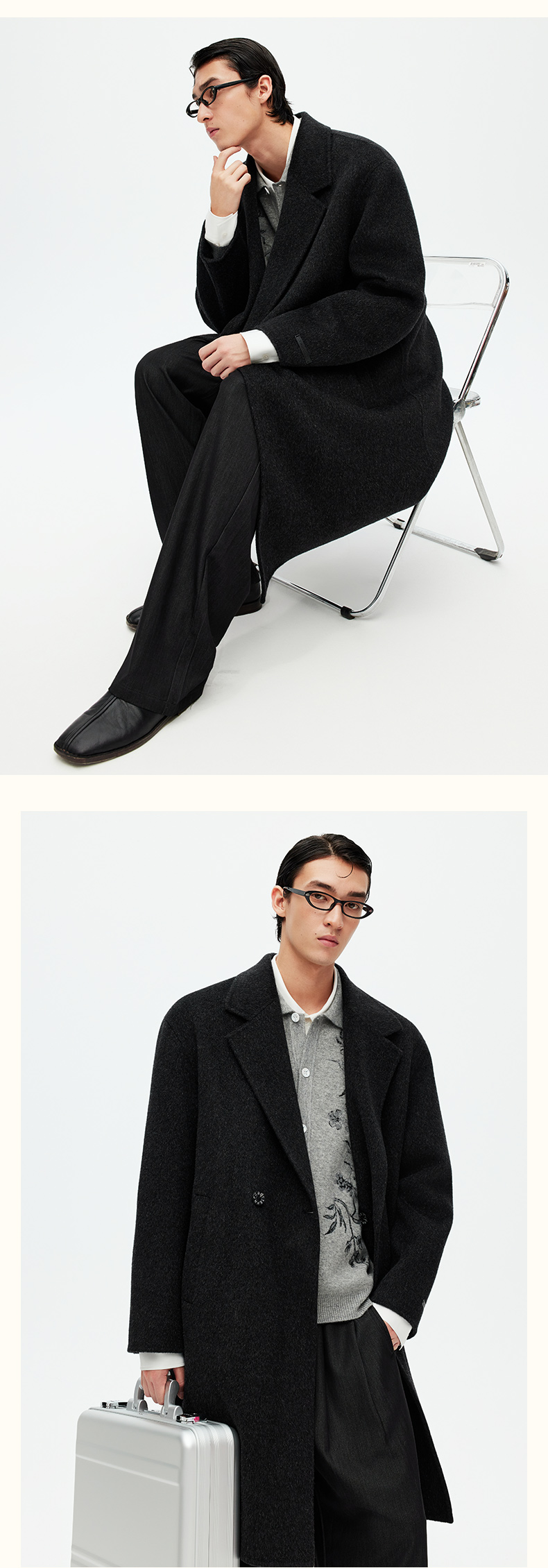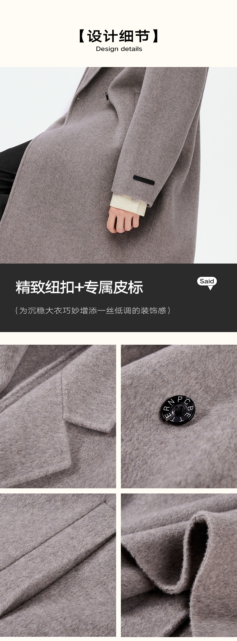 NPC潮牌100%绵羊毛平驳领毛呢长款大衣双排扣男冬上新NP58WC34&35